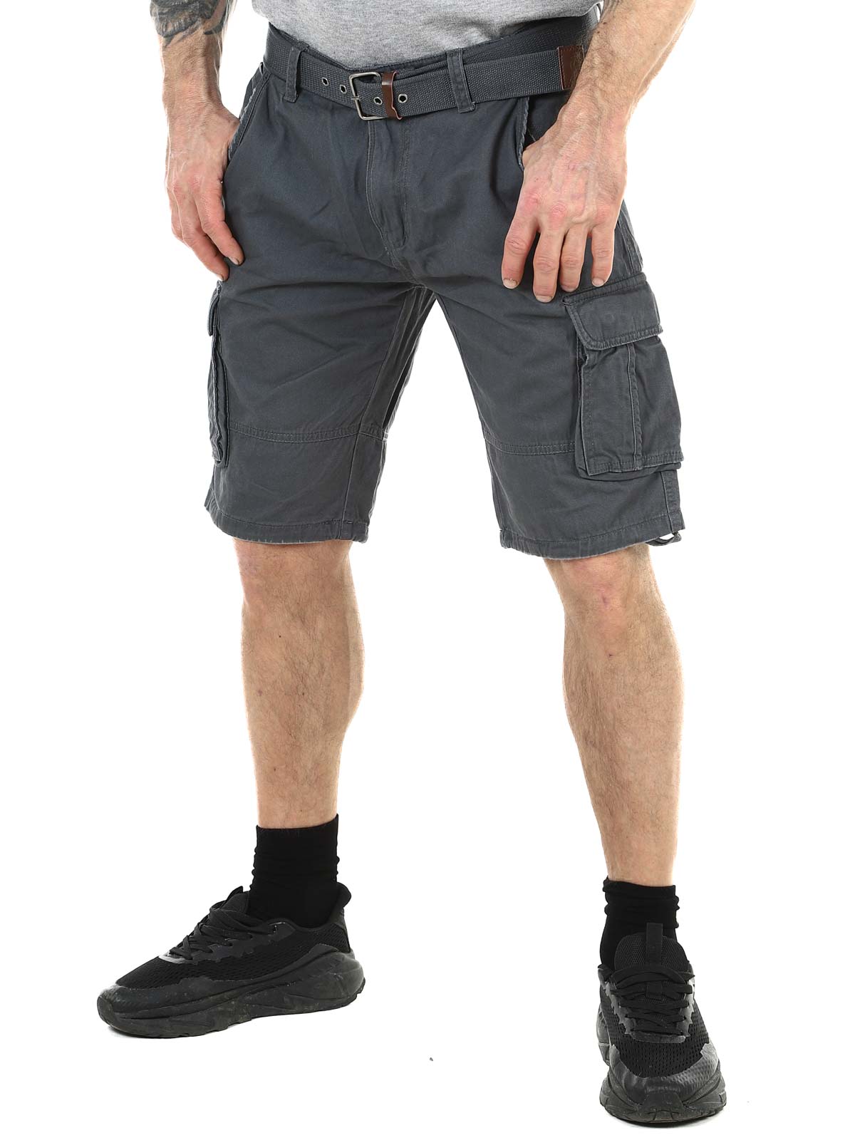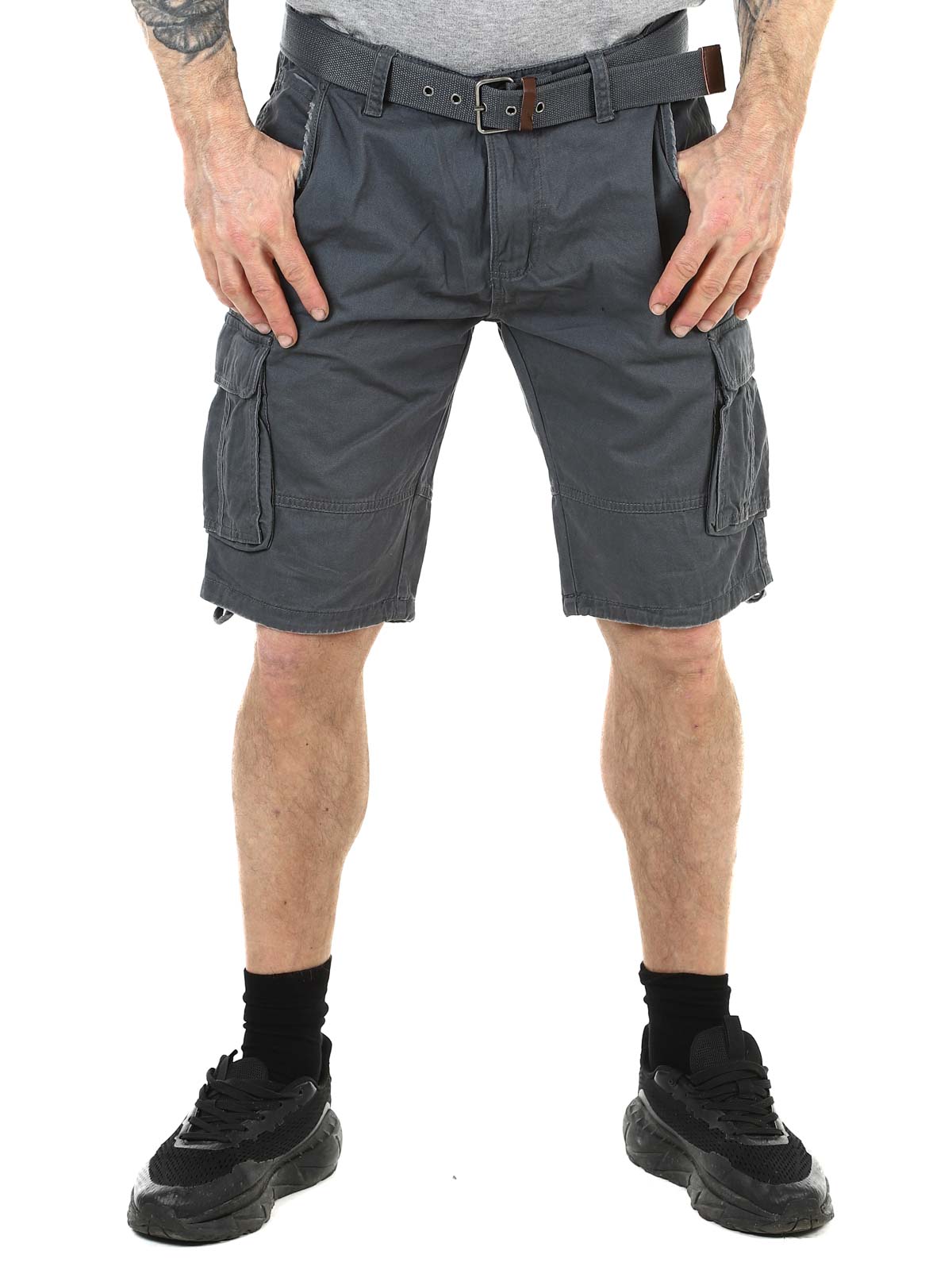 Tyylikkäät shortsit kestävästä puuvillasta. Runsaasti taskuja, joista monet ovat suljettavia. Keskipitkä malli ja mukana tuleva vyö.