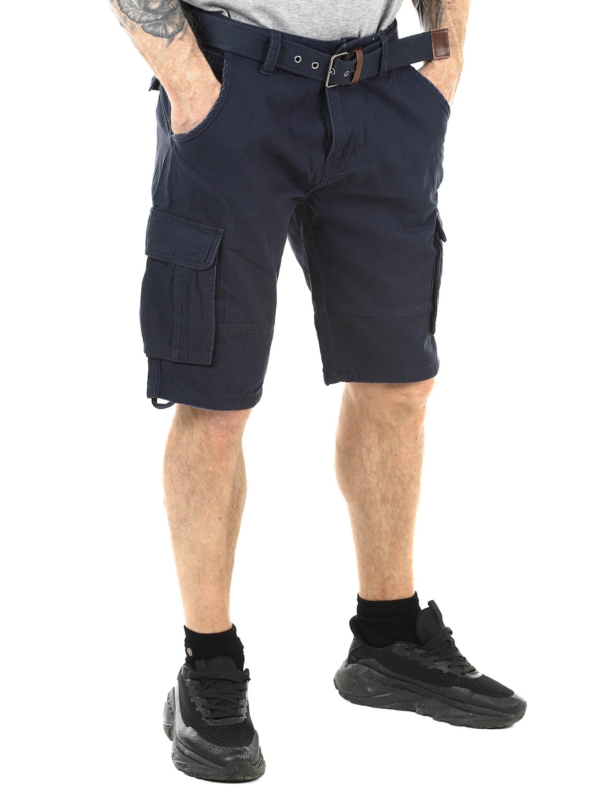 Tyylikkäät shortsit kestävästä puuvillasta. Runsaasti taskuja, joista monet ovat suljettavia. Keskipitkä malli ja mukana tuleva vyö.