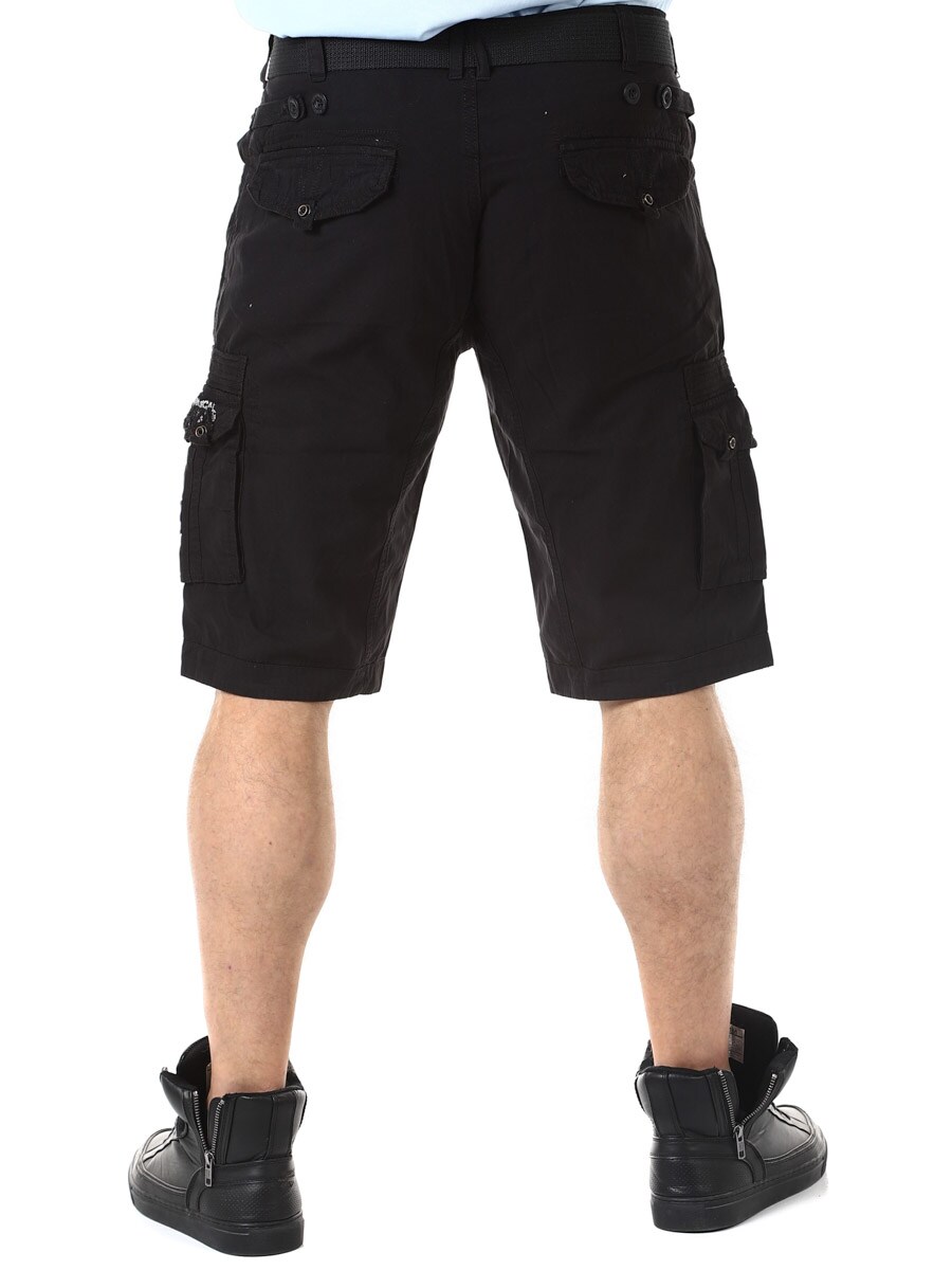Ilmavat ja mukavat shortsit, joissa on säädettävä kangasvyö vyötäröllä. Useita etu- ja takataskuja sekä räätälöity painatus ja paikkalappuja. Valmistettu 100 % puuvillasta.