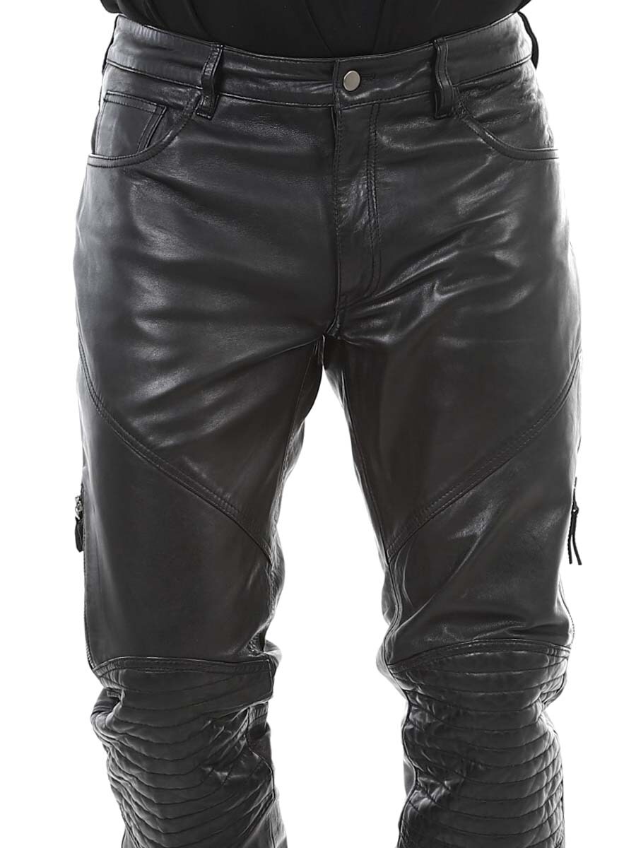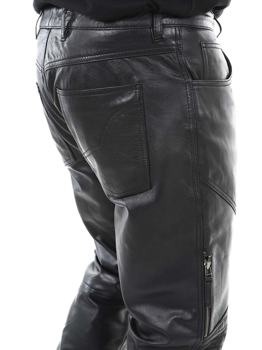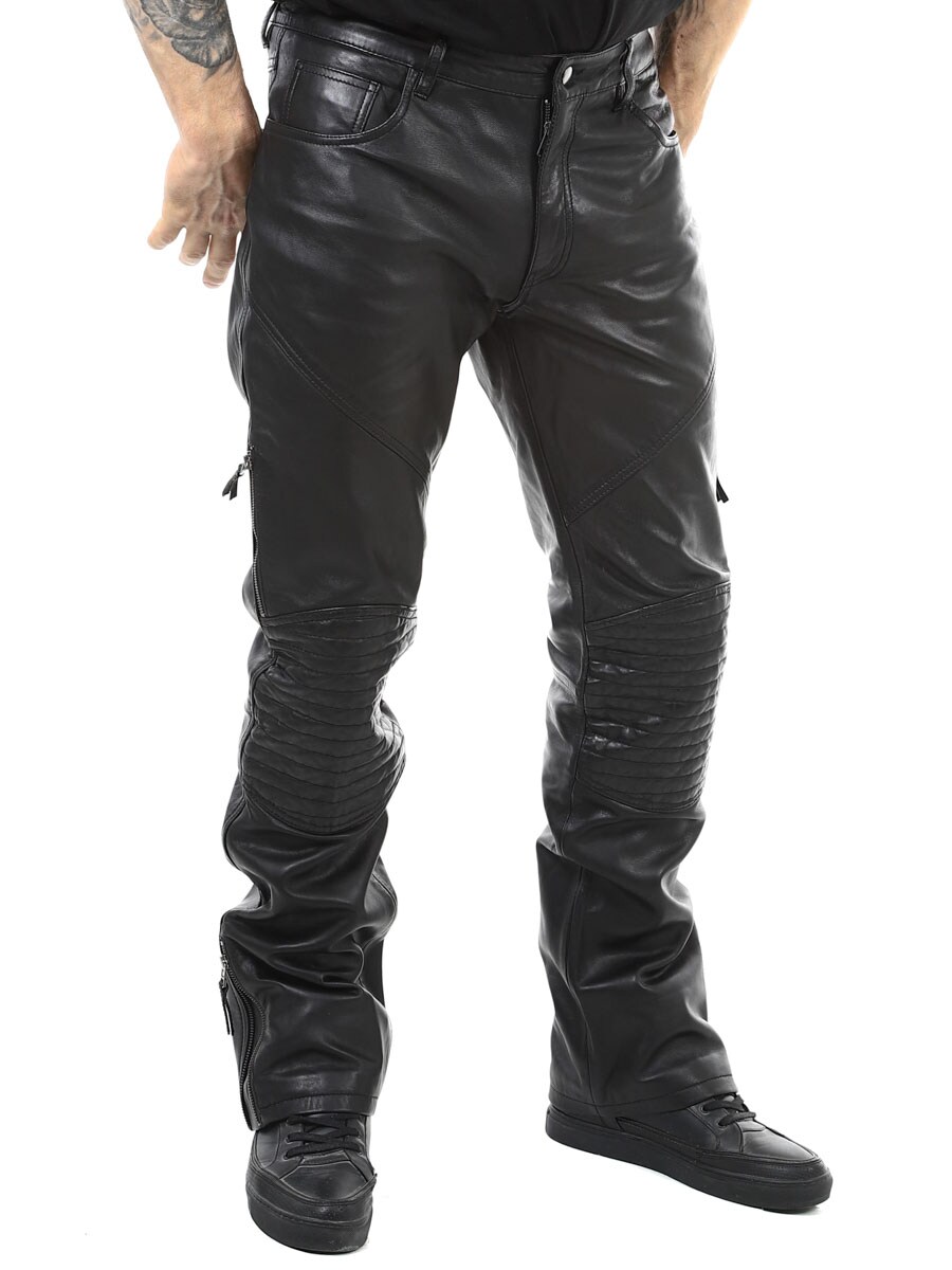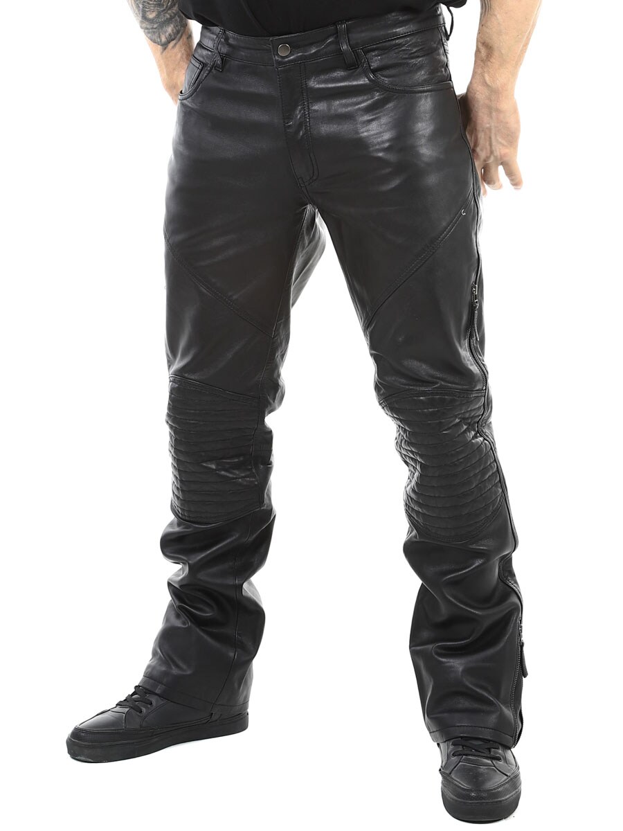 Tyylikkäät housut aidosta lampaannahasta, joka antaa niille pehmeän ja joustavan tuntuman kestävyydestä ja laadusta tinkimättä. Niissä on viisi klassista taskua ja vetoketjut lahkeensuissa, jotka tekevät housujen mallista mukautuvan. Yksityiskohtina vetoketjuja ja pehmustetut polvet. Suunniteltu moottoripyöräharrastajille ja kaikille niille, jotka tavoittelevat särmikästä lookkia!