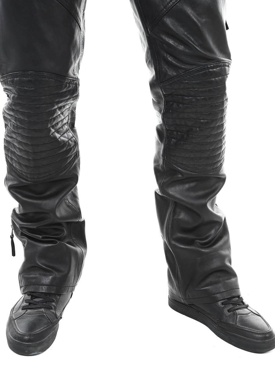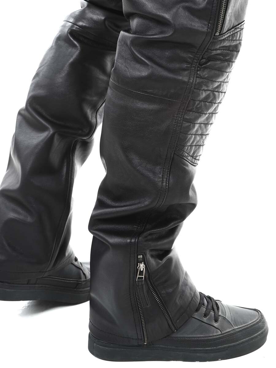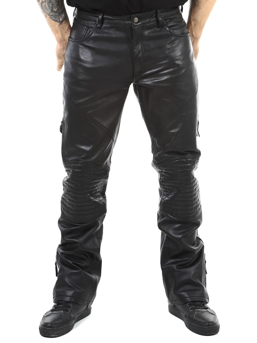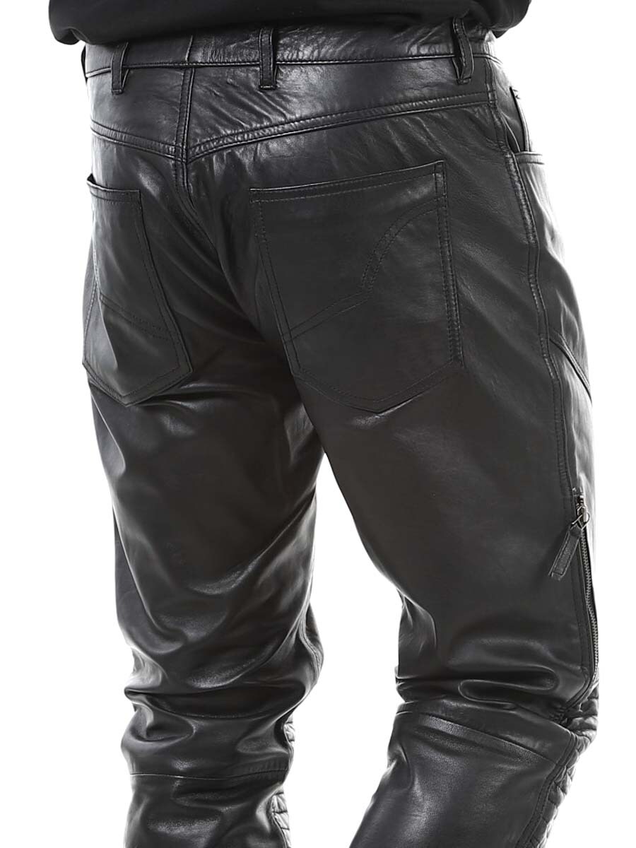 Tyylikkäät housut aidosta lampaannahasta, joka antaa niille pehmeän ja joustavan tuntuman kestävyydestä ja laadusta tinkimättä. Niissä on viisi klassista taskua ja vetoketjut lahkeensuissa, jotka tekevät housujen mallista mukautuvan. Yksityiskohtina vetoketjuja ja pehmustetut polvet. Suunniteltu moottoripyöräharrastajille ja kaikille niille, jotka tavoittelevat särmikästä lookkia!