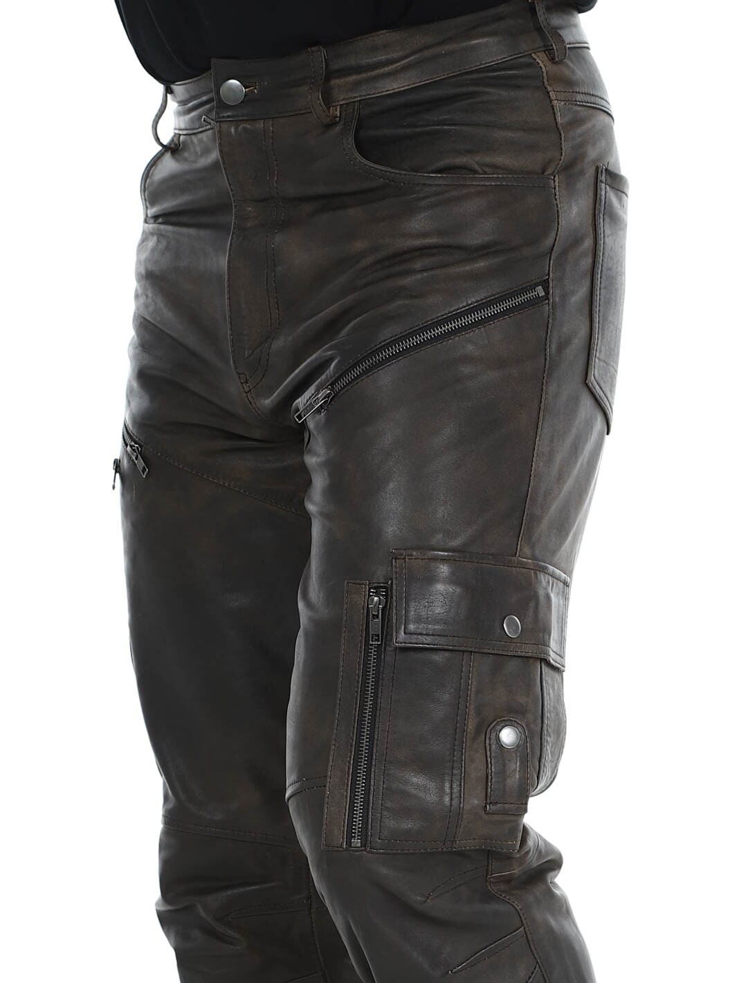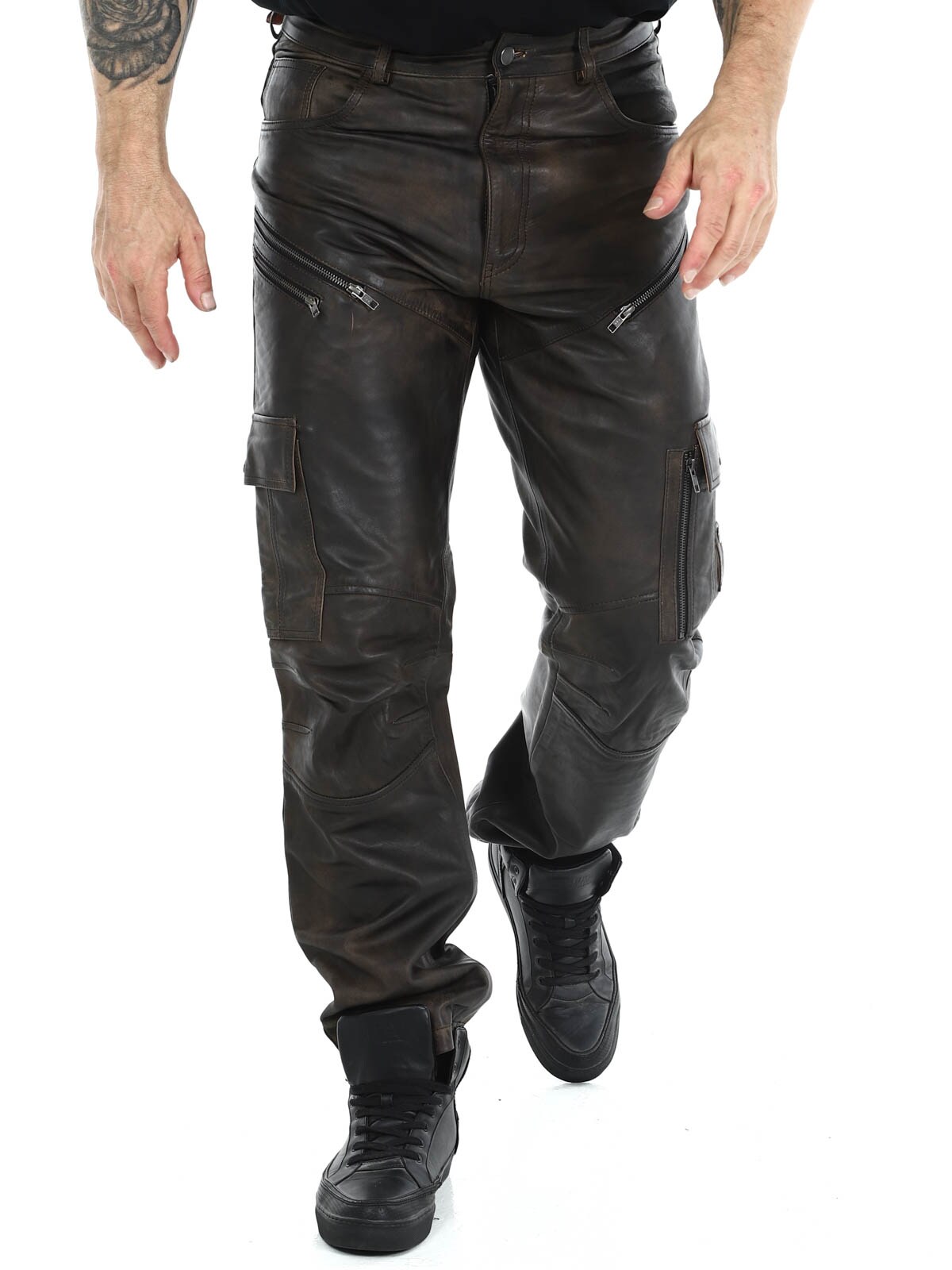 Pehmeät ja miellyttävät nahkaiset housut, joissa on suorat lahkeet. Housuissa on vyötäröllä vyölenkit, vetoketju ja useita taskuja. Nämä housut on valmistettu yksinoikeudella Rockdenimille, ja löydät ne vain meiltä!