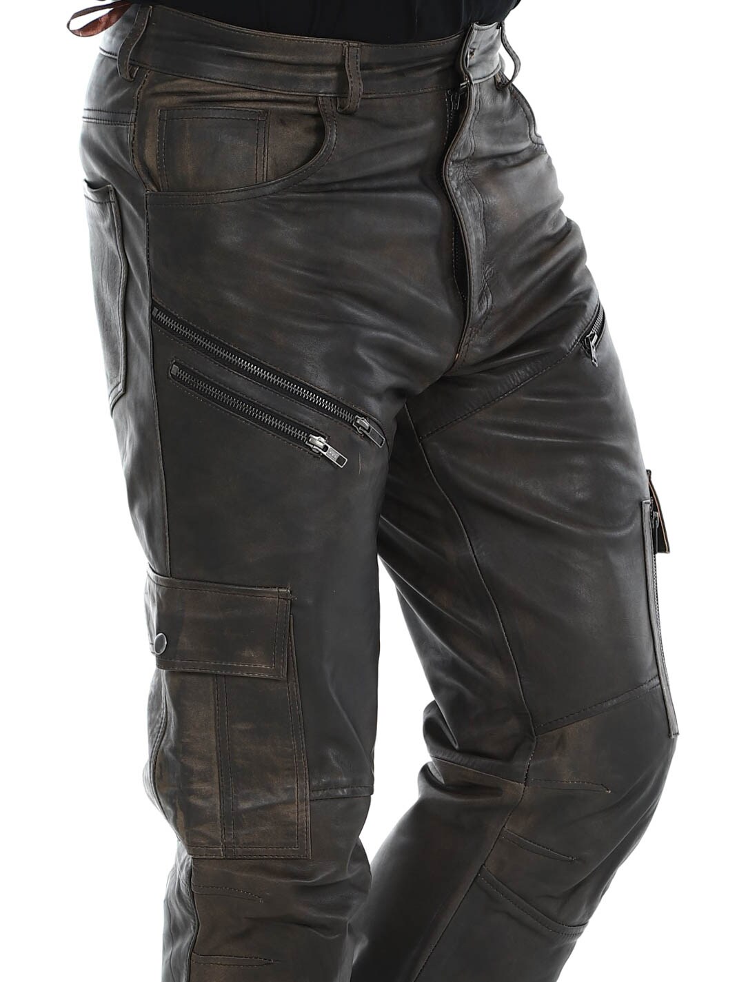 Pehmeät ja miellyttävät nahkaiset housut, joissa on suorat lahkeet. Housuissa on vyötäröllä vyölenkit, vetoketju ja useita taskuja. Nämä housut on valmistettu yksinoikeudella Rockdenimille, ja löydät ne vain meiltä!