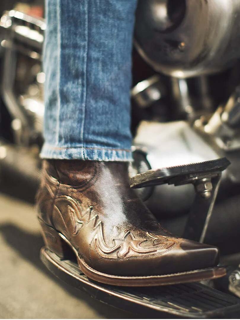 Käsityönä aidosta nahasta valmistetut cowboysaappaat, joiden yksityiskohtaiset ompeleet antavat niille autenttisen ilmeen. Terävä kärki ja kuubalainen korko luovat ajattoman siluetin, joka huokuu asennetta. Täydellinen valinta niille, jotka arvostavat aitoa käsityötaitoa ja ajatonta länkkärityyliä!