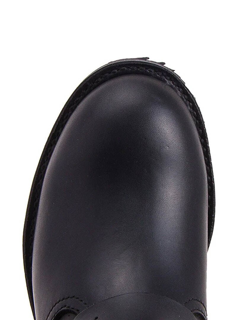 Ajaton muotoilu kohtaa vankan toiminnallisuuden näissä mustissa biker-saappaissa, jotka sopivat täydellisesti sekä moottoripyöräilyyn että arkilookkiin. Aidosta nahasta valmistetuissa saappaissa on jykevät soljet, jotka parantavat niiden istuvuutta. Nämä käsityönä valmistetut kengät tarjoavat sekä kestävyyttä että karkeaa, maskuliinista tyyliä.