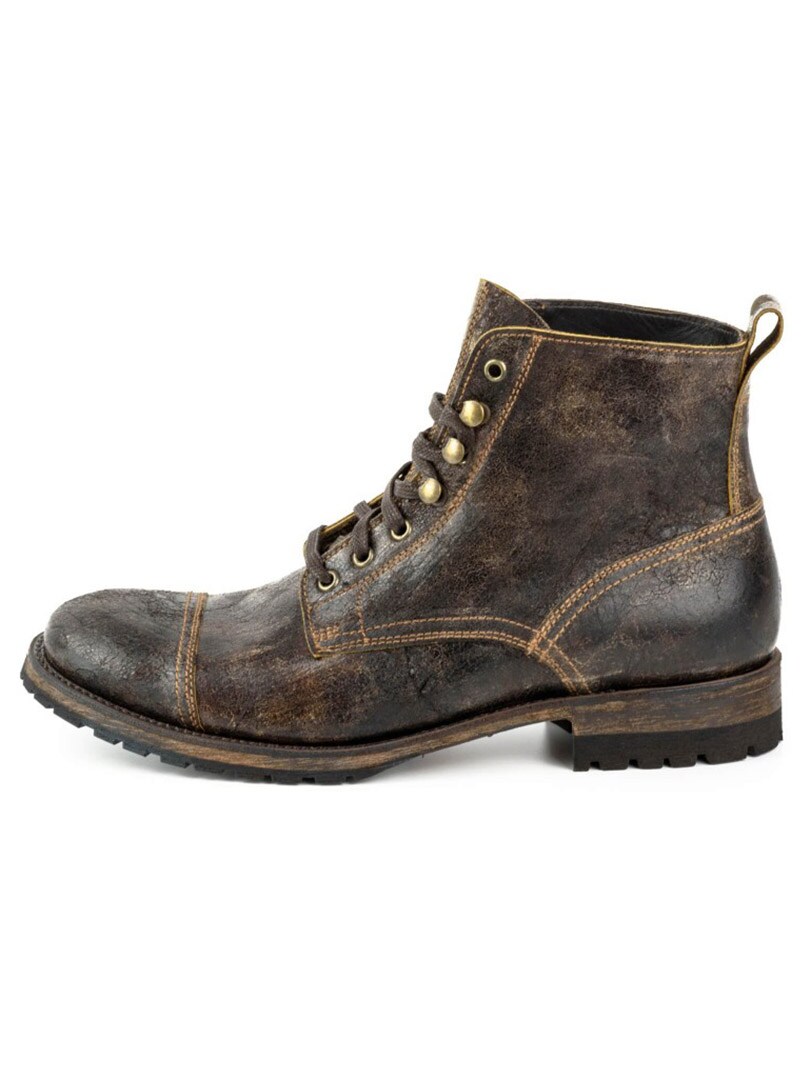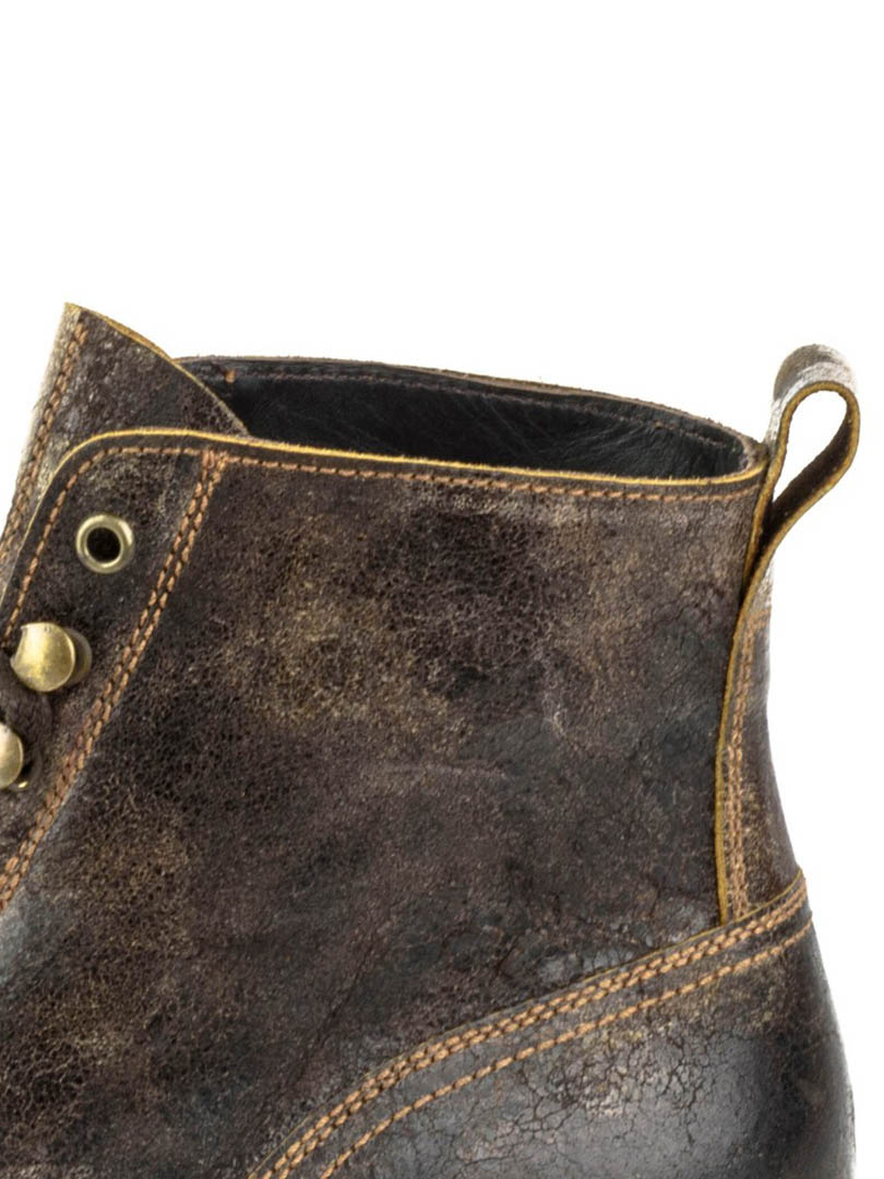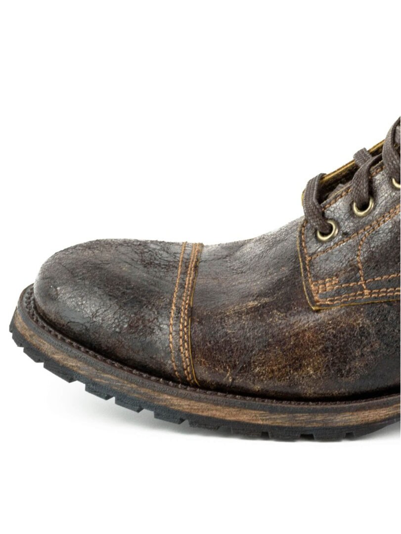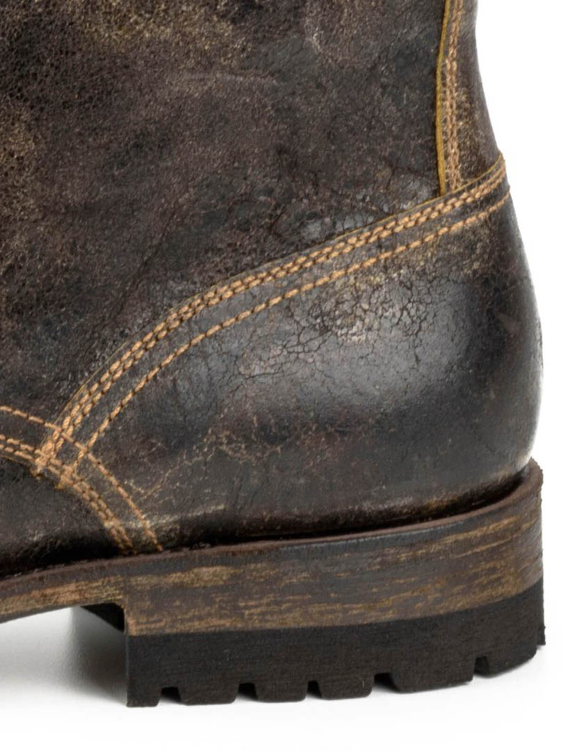 Voimakkaat ja luonteikkaat kengät käsin ikäännytetystä nahasta, joka antaa aidon, kuluneen ilmeen. Malli yhdistää klassisen vintage-henkisyyden moderneihin, armeijasta inspiroituneisiin yksityiskohtiin. Kengät on rakennettu kestämään: nahka–kumikomposiittipohja on ommeltu arvostetulla Goodyear Welt -menetelmällä, mikä takaa ylivoimaisen kestävyyden ja vakauden. Ajaton kenkämalli – yhtä tyylikäs farkkujen kuin siistimpien asujen kanssa.