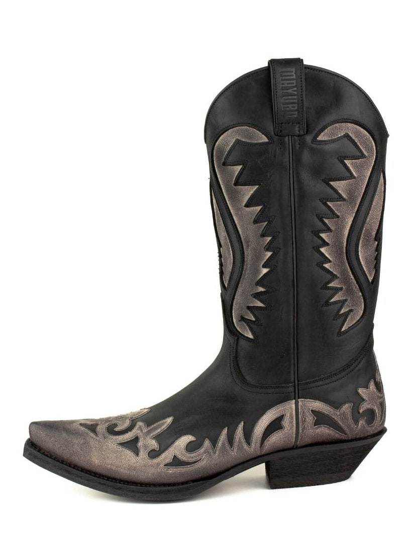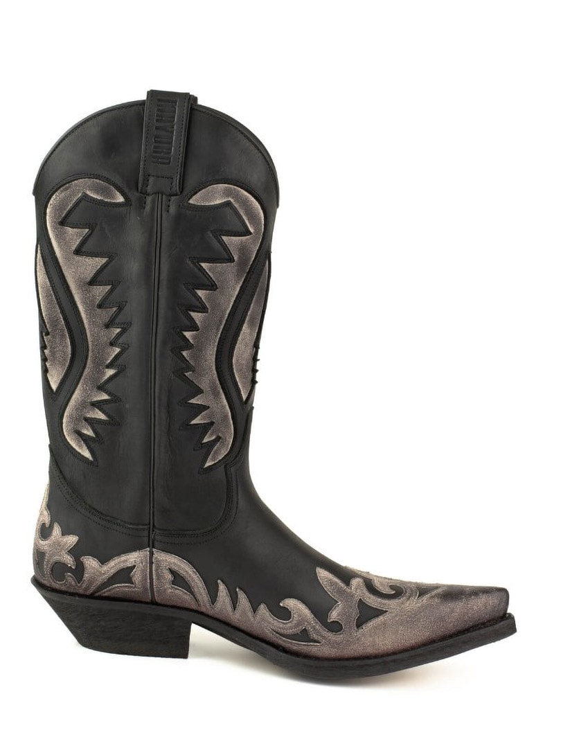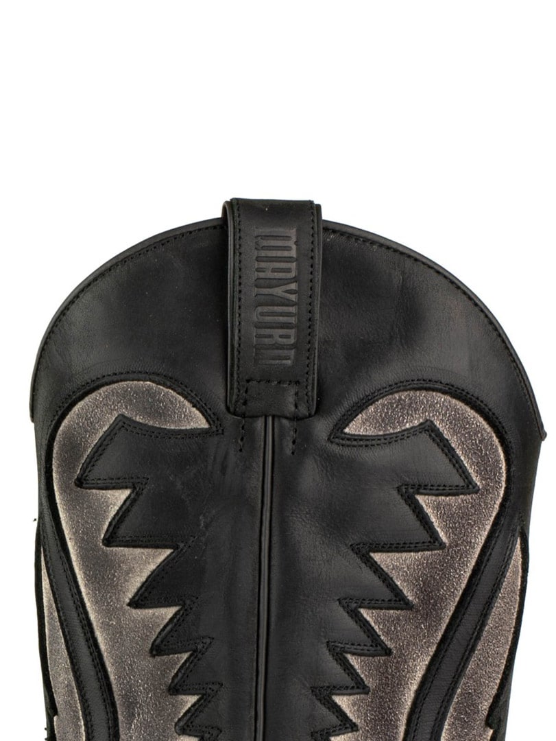 Käsintehdyt cowboy-saappaat rustiikkisesta nahasta.