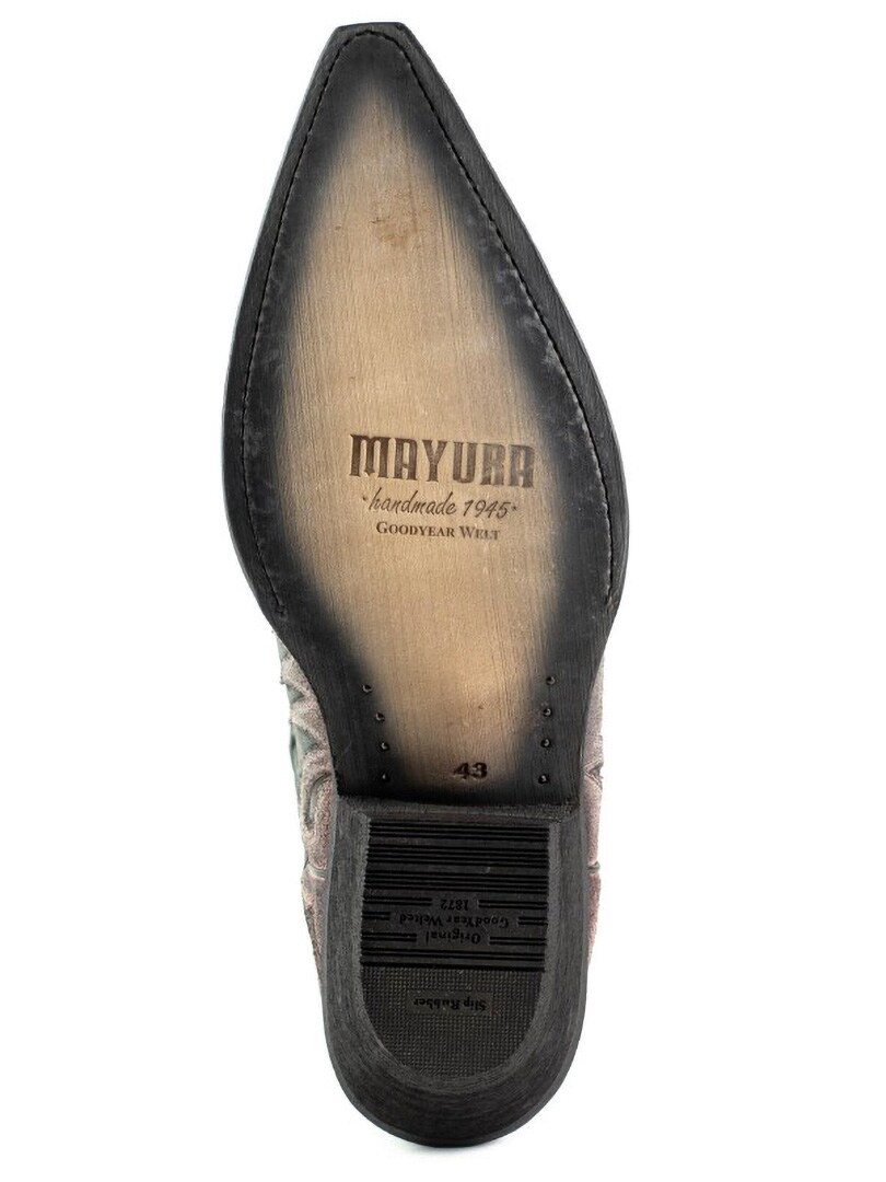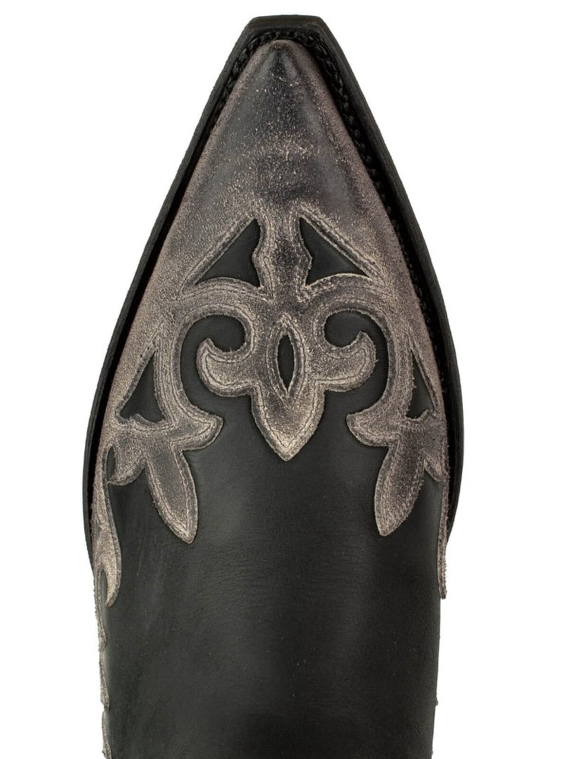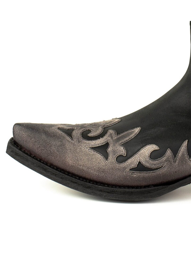 Nämä saappaat on valmistettu aidosta, ikäännytetystä naudannahasta, joka on öljytty käsin ainutlaatuisen värikontrastin ja autenttisen vintage-ilmeen luomiseksi. Saappaita koristavat klassiset western-kirjailut, ja niissä on elegantti, kapea kärki. Espanjalaisesta vasikannahasta valmistettu pohja ja Goodyear Welt -rakenne takaavat erinomaisen kestävyyden, vakauden ja huippuluokan mukavuuden.