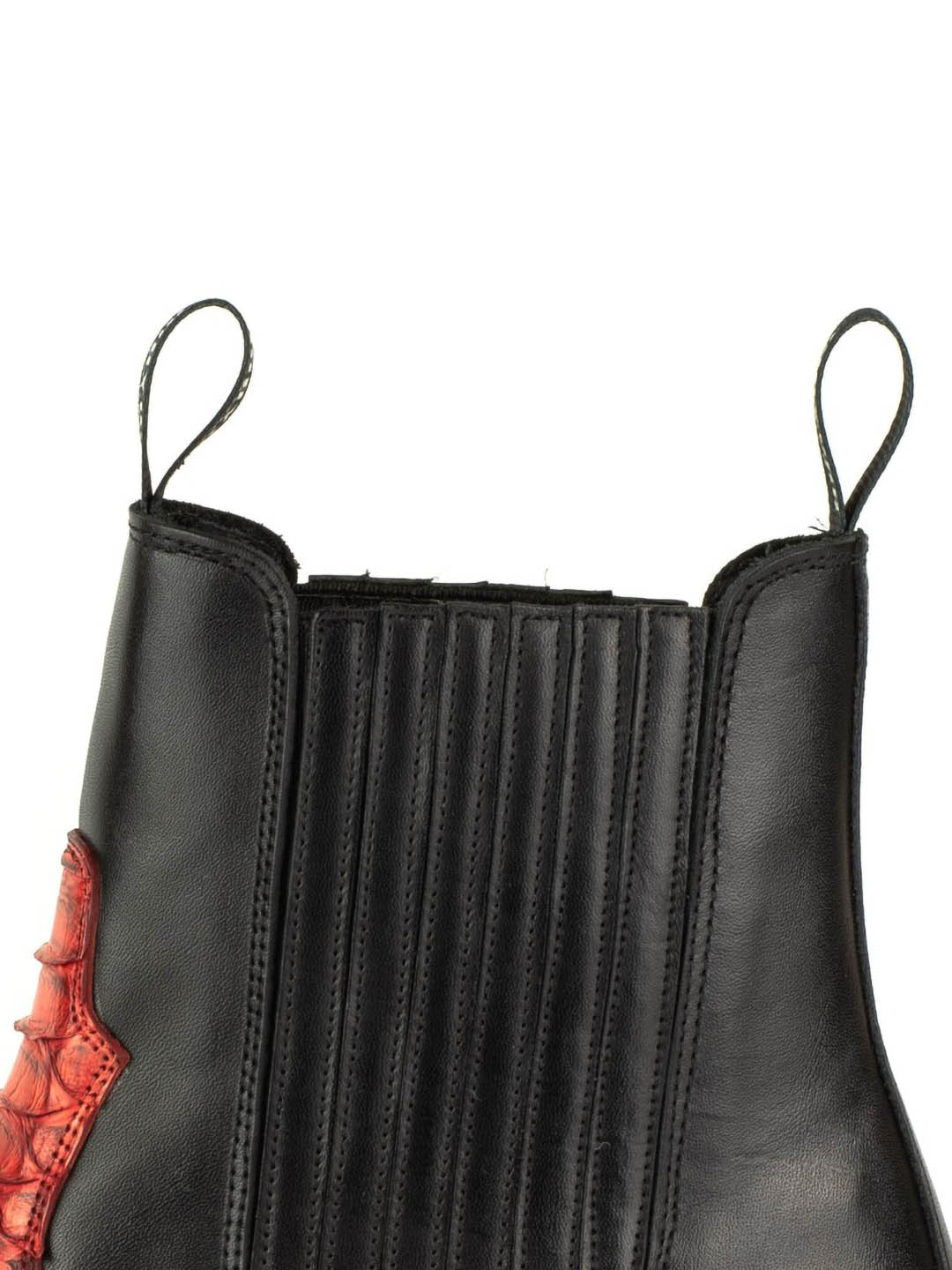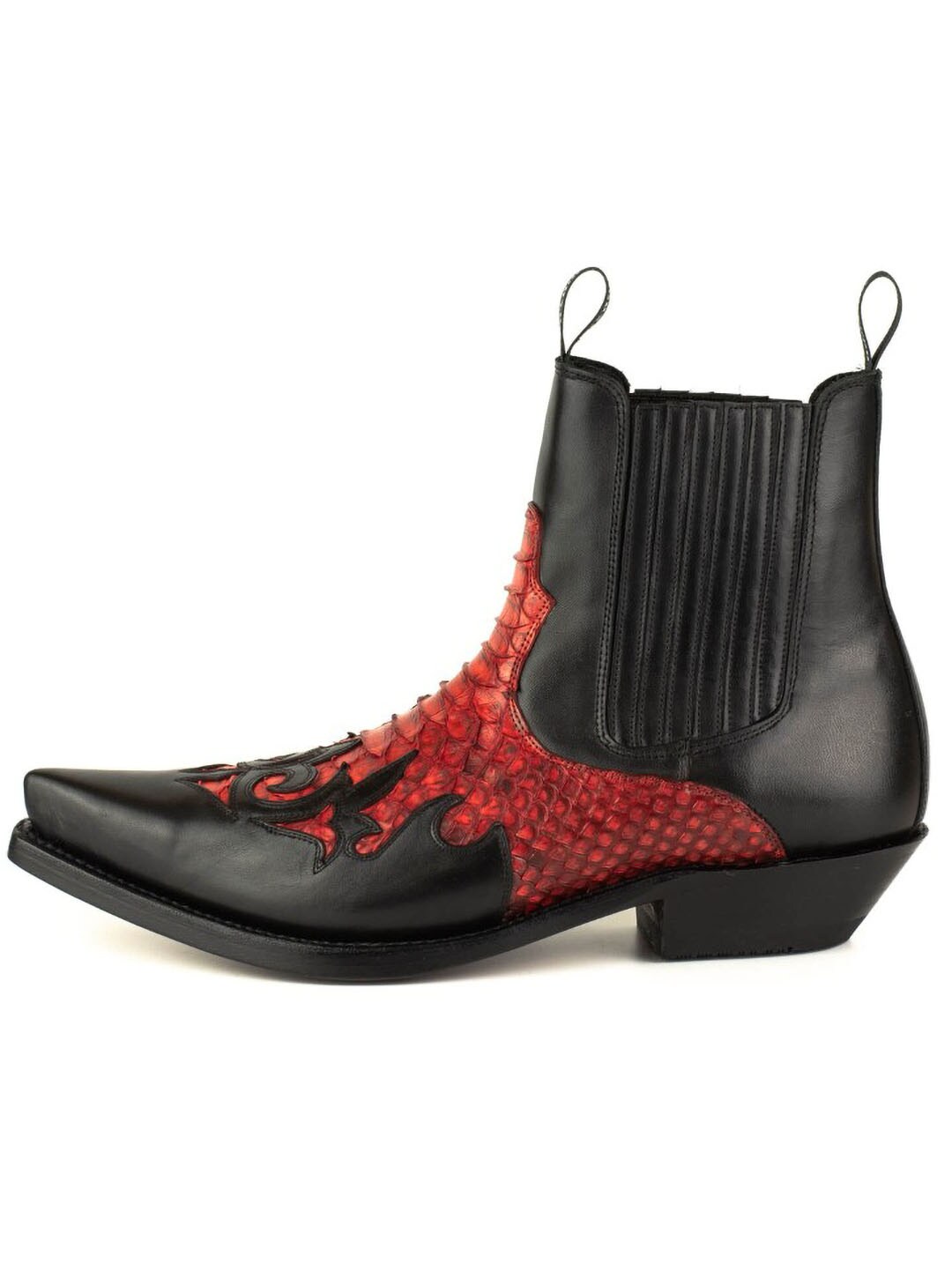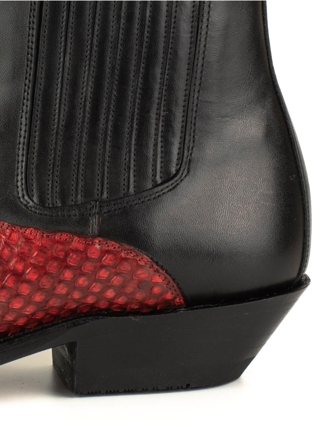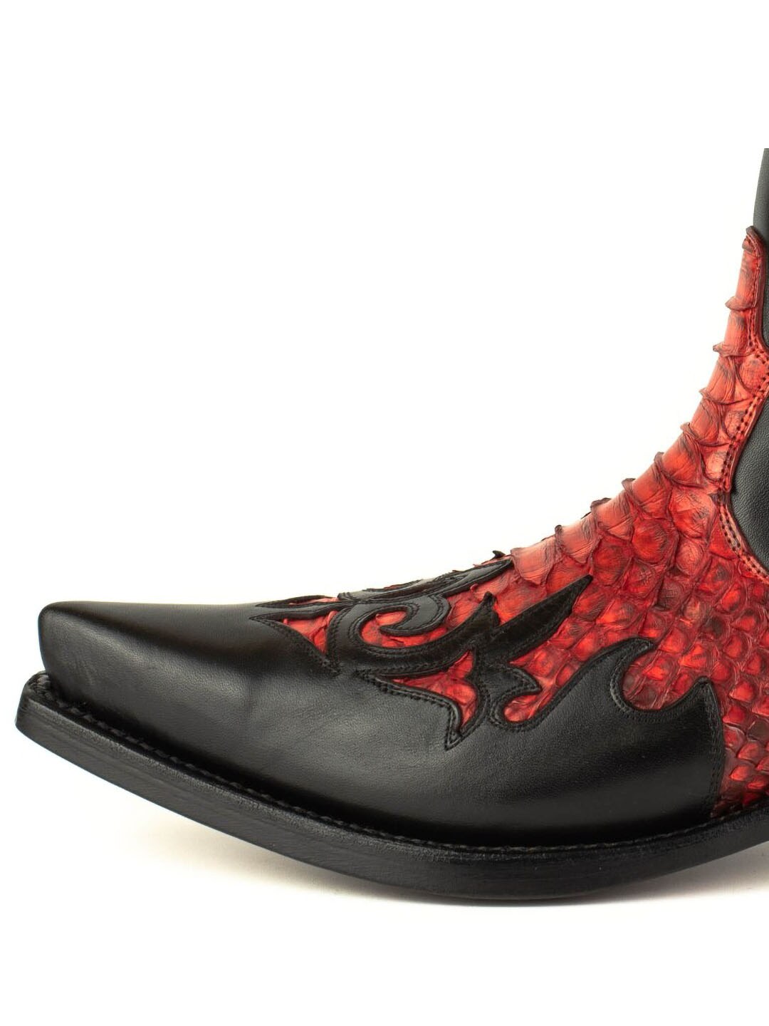 Näyttävät bootsit naudannahasta ja pytonnahasta, joissa vintage-henkinen ilme ja käsintehty viimeistely antavat jokaiselle parille uniikin ilmeen. Mallissa on kaksinkertaiset nahkapohjat, ja se on valmistettu käsin Goodyear Welt -menetelmällä, mikä takaa korkean kulutuskestävyyden, pitkän käyttöiän ja erittäin hyvän mukavuuden. Eksklusiivinen bootsipari sinulle, joka haluat mallin, joka todella erottuu edukseen.
