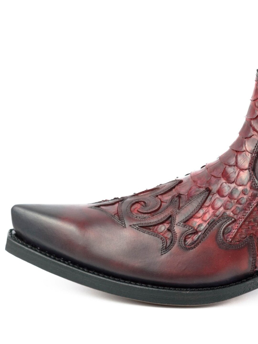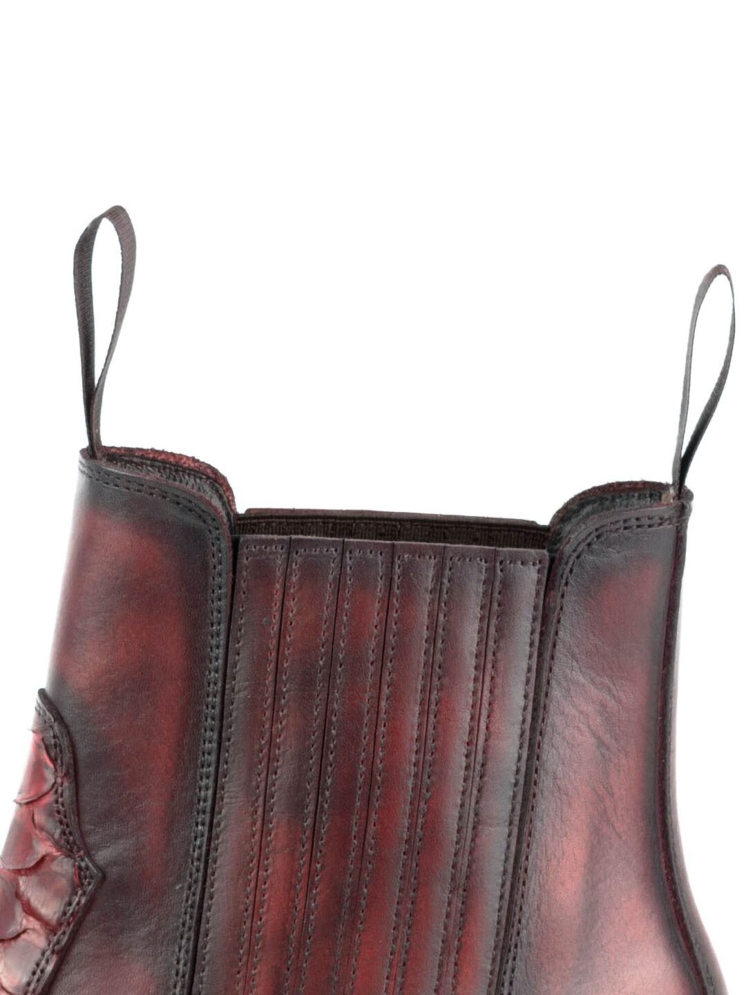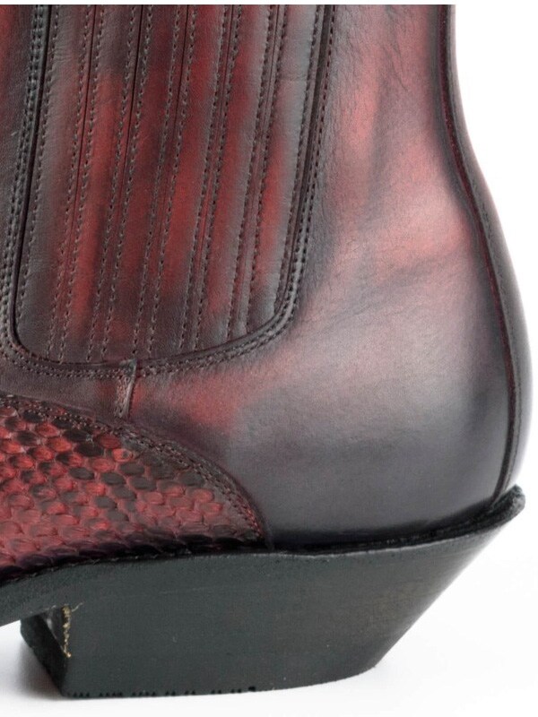 Näyttävät bootsit naudannahasta ja pytonnahasta, joissa vintage-henkinen ilme ja käsintehty viimeistely antavat jokaiselle parille uniikin ilmeen. Mallissa on kaksinkertaiset nahkapohjat, ja se on valmistettu käsin Goodyear Welt -menetelmällä, mikä takaa korkean kulutuskestävyyden, pitkän käyttöiän ja erittäin hyvän mukavuuden. Eksklusiivinen bootsipari sinulle, joka haluat mallin, joka todella erottuu edukseen.