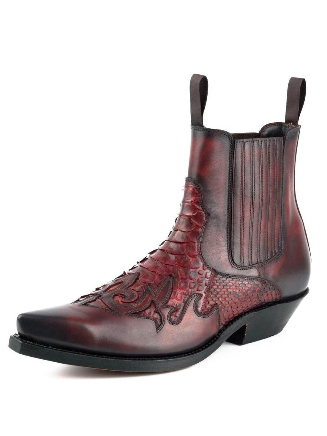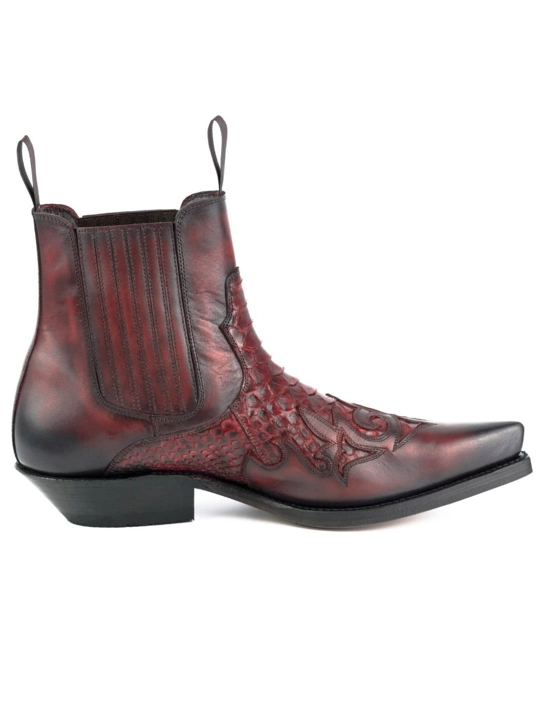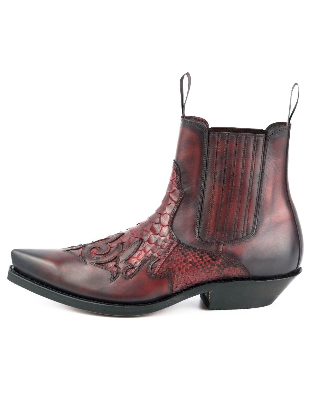 Näyttävät bootsit naudannahasta ja pytonnahasta, joissa vintage-henkinen ilme ja käsintehty viimeistely antavat jokaiselle parille uniikin ilmeen. Mallissa on kaksinkertaiset nahkapohjat, ja se on valmistettu käsin Goodyear Welt -menetelmällä, mikä takaa korkean kulutuskestävyyden, pitkän käyttöiän ja erittäin hyvän mukavuuden. Eksklusiivinen bootsipari sinulle, joka haluat mallin, joka todella erottuu edukseen.