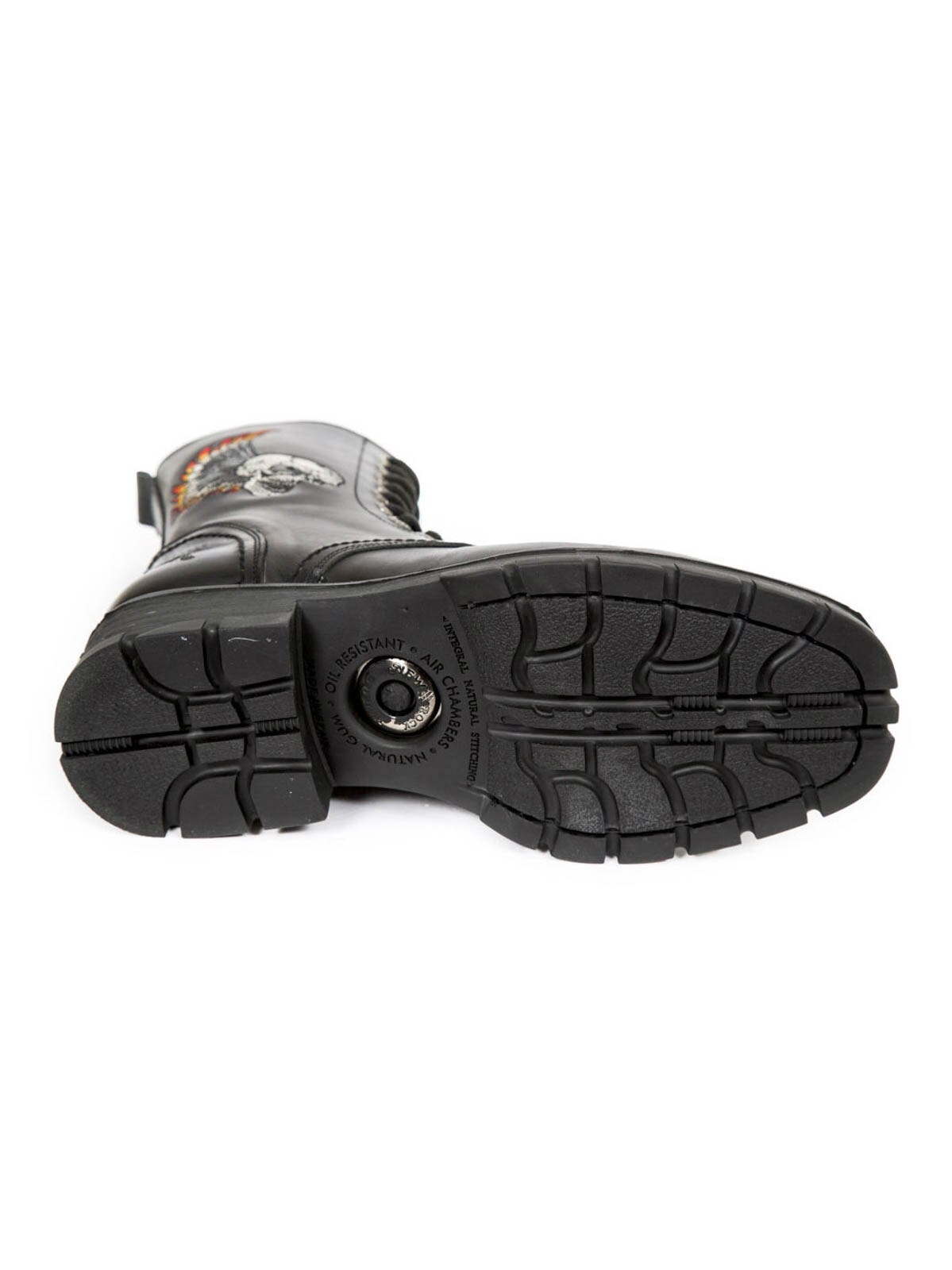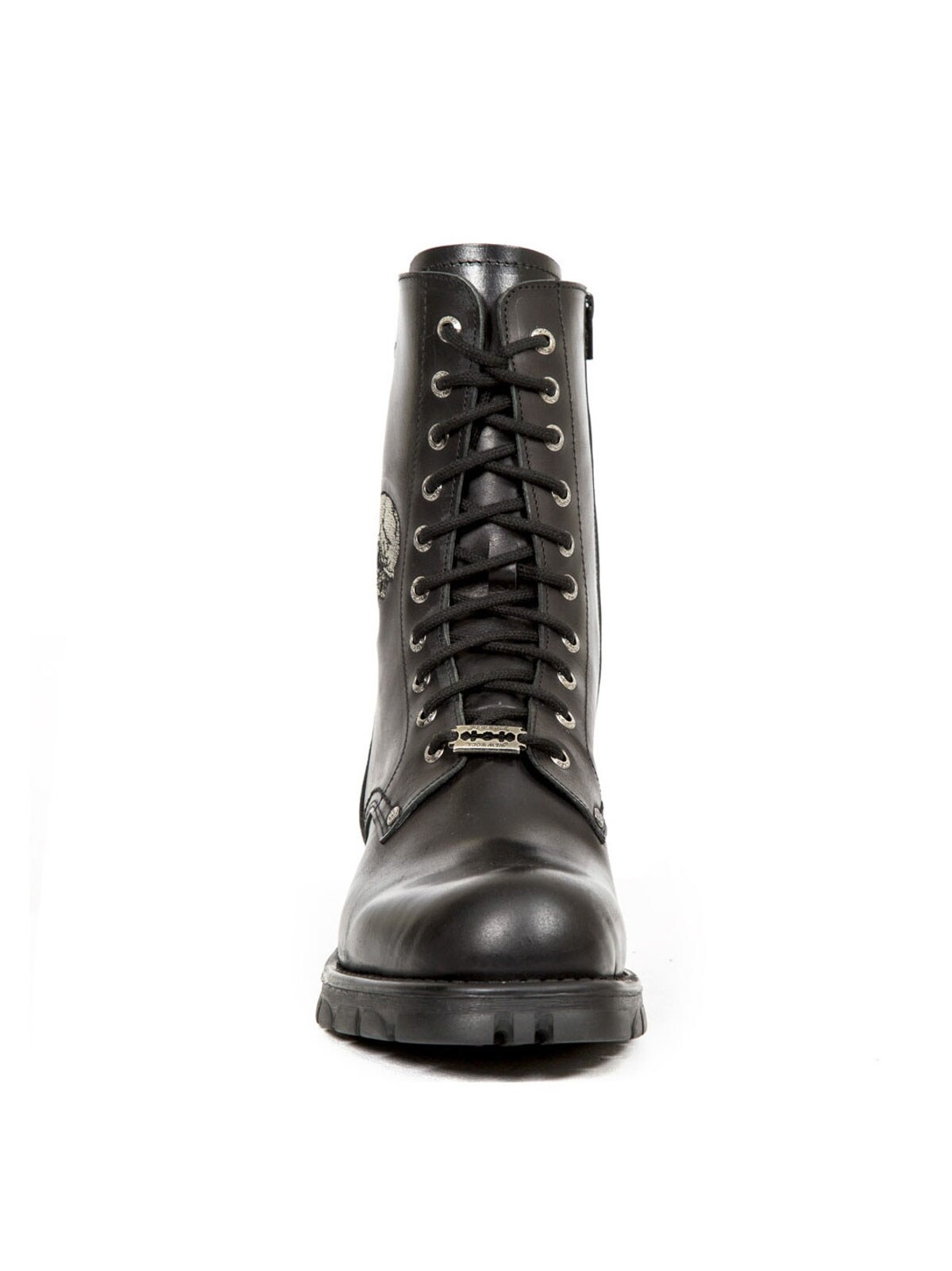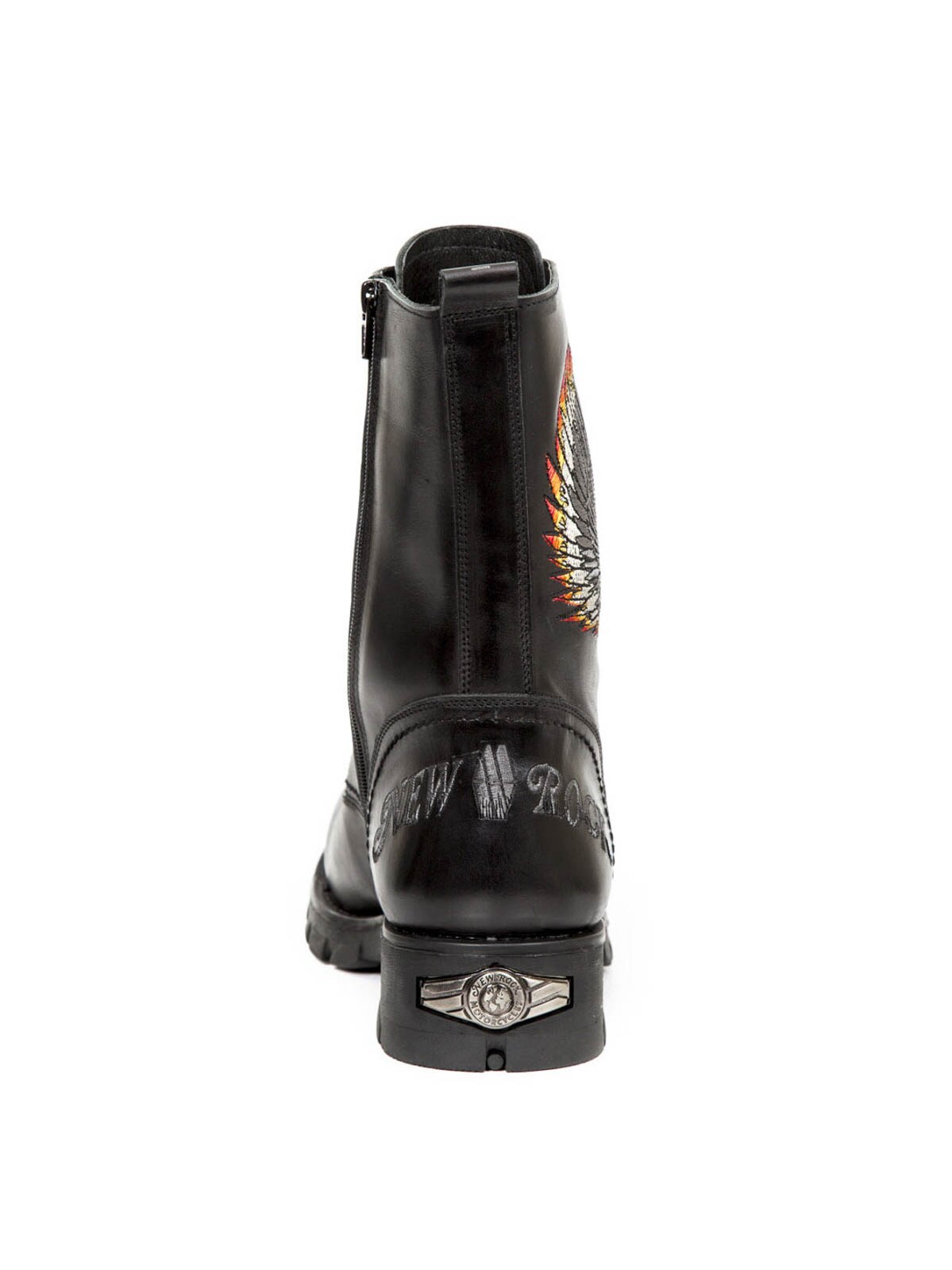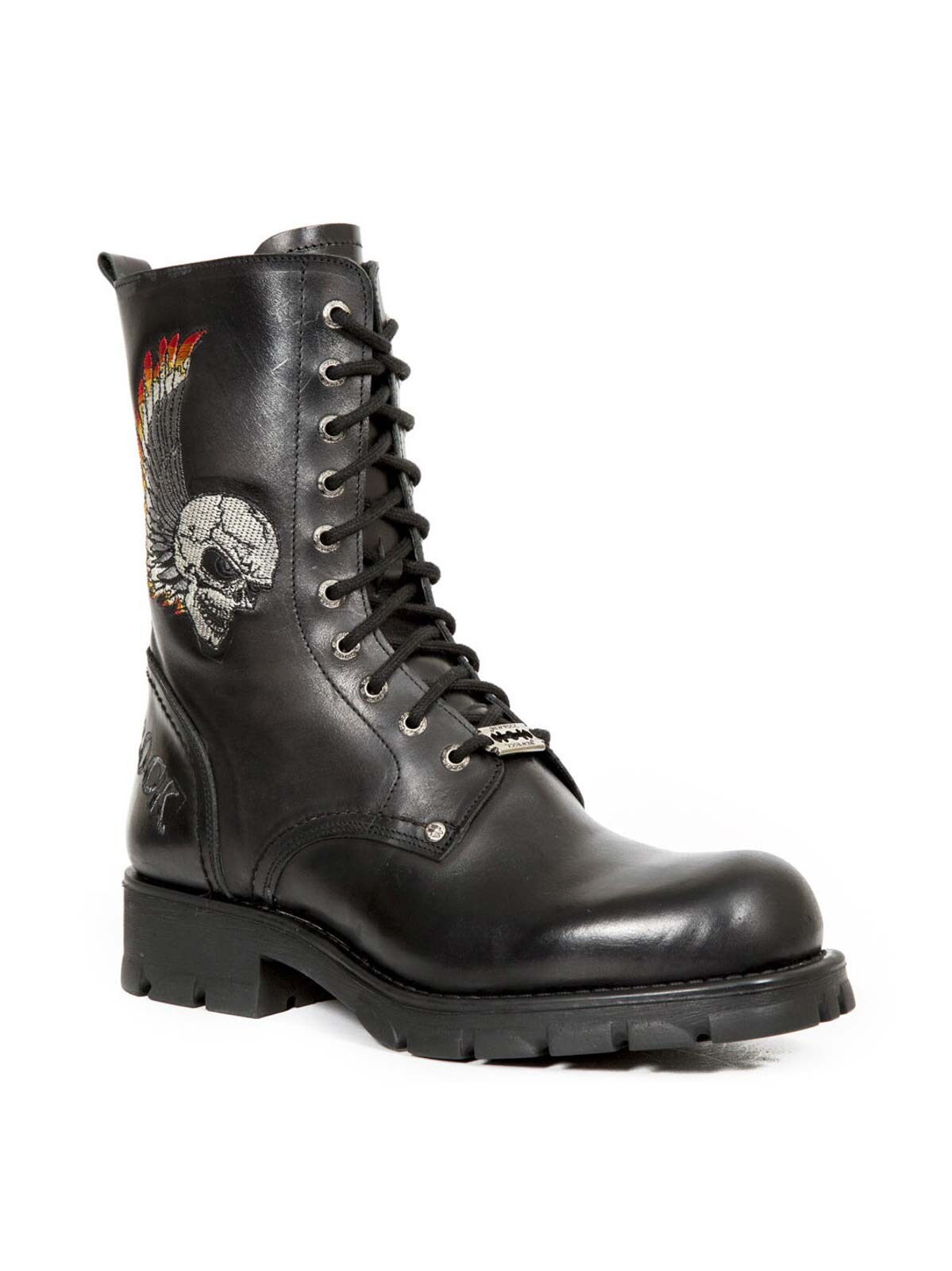 Mustat kengät kuviobrodeerauksella. Kengissä on korkea varsi, jossa on nauhat ja sisäpuolella vetoketju, jonka ansiosta ne on helppo pukea jalkaan ja myös riisua. Käsintehty aidosta nahasta ja saatavilla rajoitettu erä, joka tekee jokaisesta kengästä ainutlaatuisen.