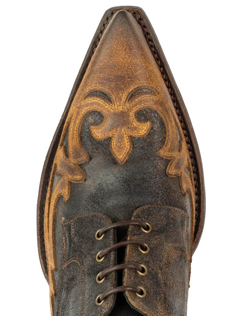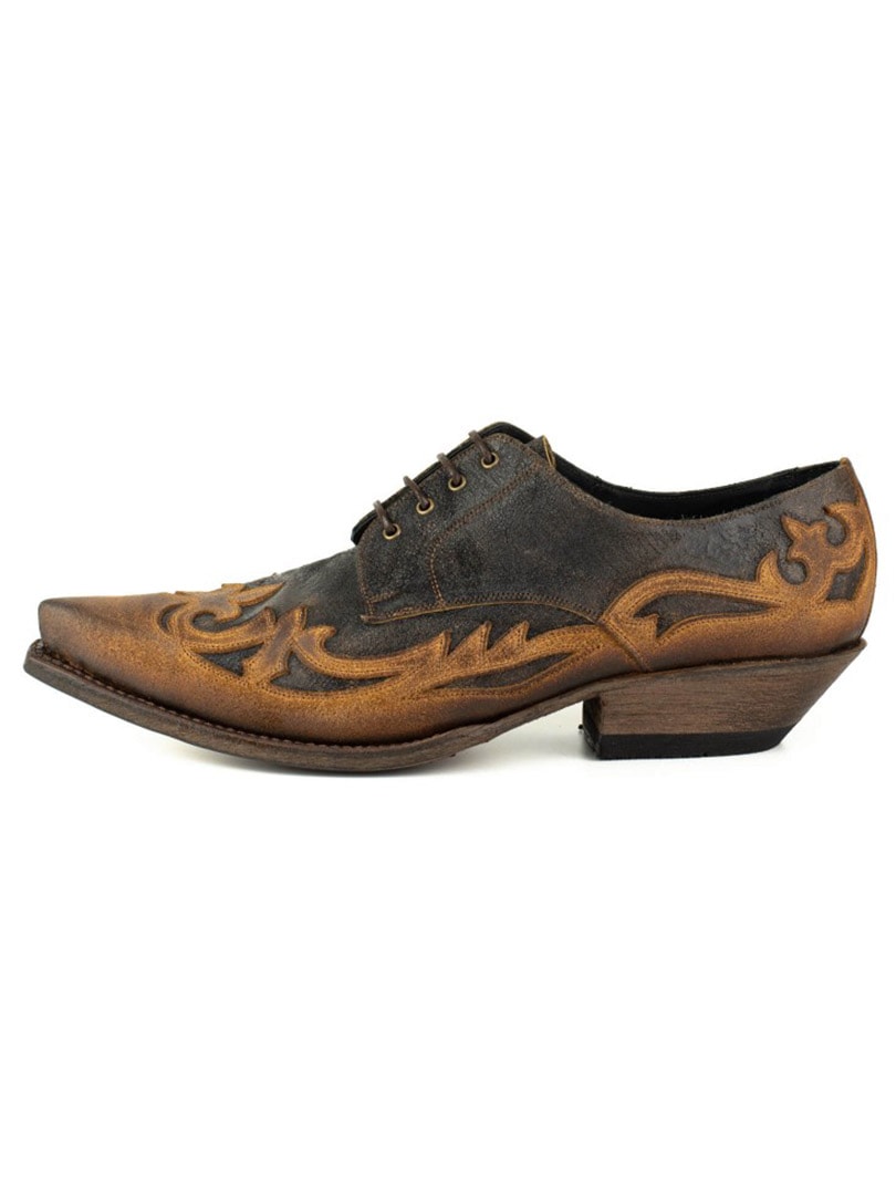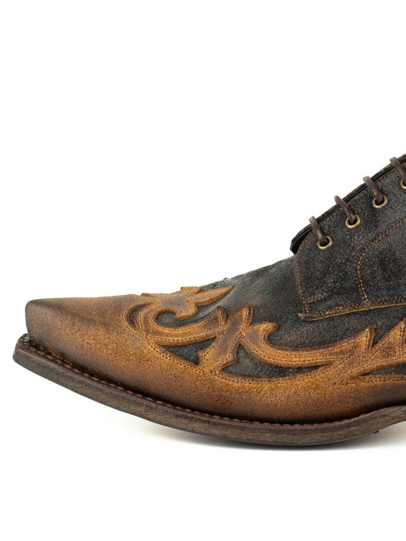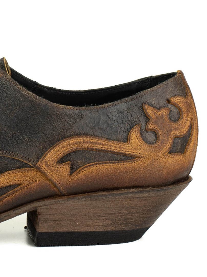 Ainutlaatuiset kengät rustiikkisesta, ikääntyneen näköisestä nahasta, jossa on kaksi ruskean sävyä luonnollisen vintage-ilmeen luomiseksi. Profiilimainen design ja leikatut yksityiskohdat antavat kengille erottuvan western-henkisen ilmeen. Pohja on valmistettu espanjalaisesta vasikannahasta, ja kengät on valmistettu käsin perinteisellä Goodyear Welt -menetelmällä – yhdellä kengänvalmistuksen kestävimmistä ja arvostetuimmista rakenteista. Tuloksena on kenkä, joka tarjoaa erinomaisen kestävyyden, vakauden ja mukavuuden, muotoutuen ajan myötä käyttäjän jalan mukaan. Täydellinen sinulle, joka haluat jalkineet, joissa yhdistyvät kestävyys, eleganssi ja luonne!