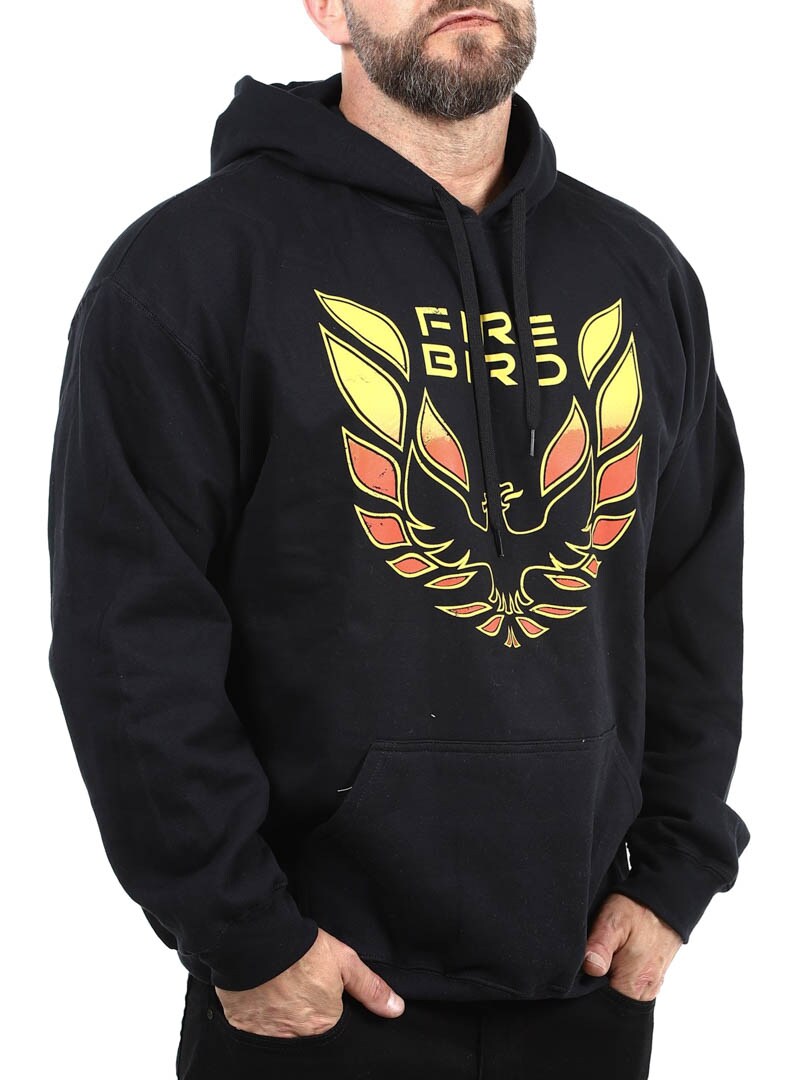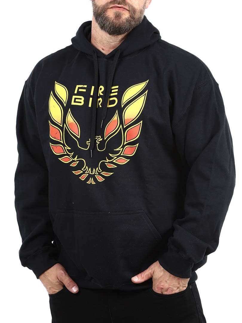 Musta huppari, jossa on ikoninen ‘Firebird’ -logo. Punakeltaisessa painatuksessa on kulunut vintage-look, joka tuo heti mieleen 70-luvun muskeliautot. Täydellinen yhdistelmä mukavuutta ja siistiä retrotyyliä!