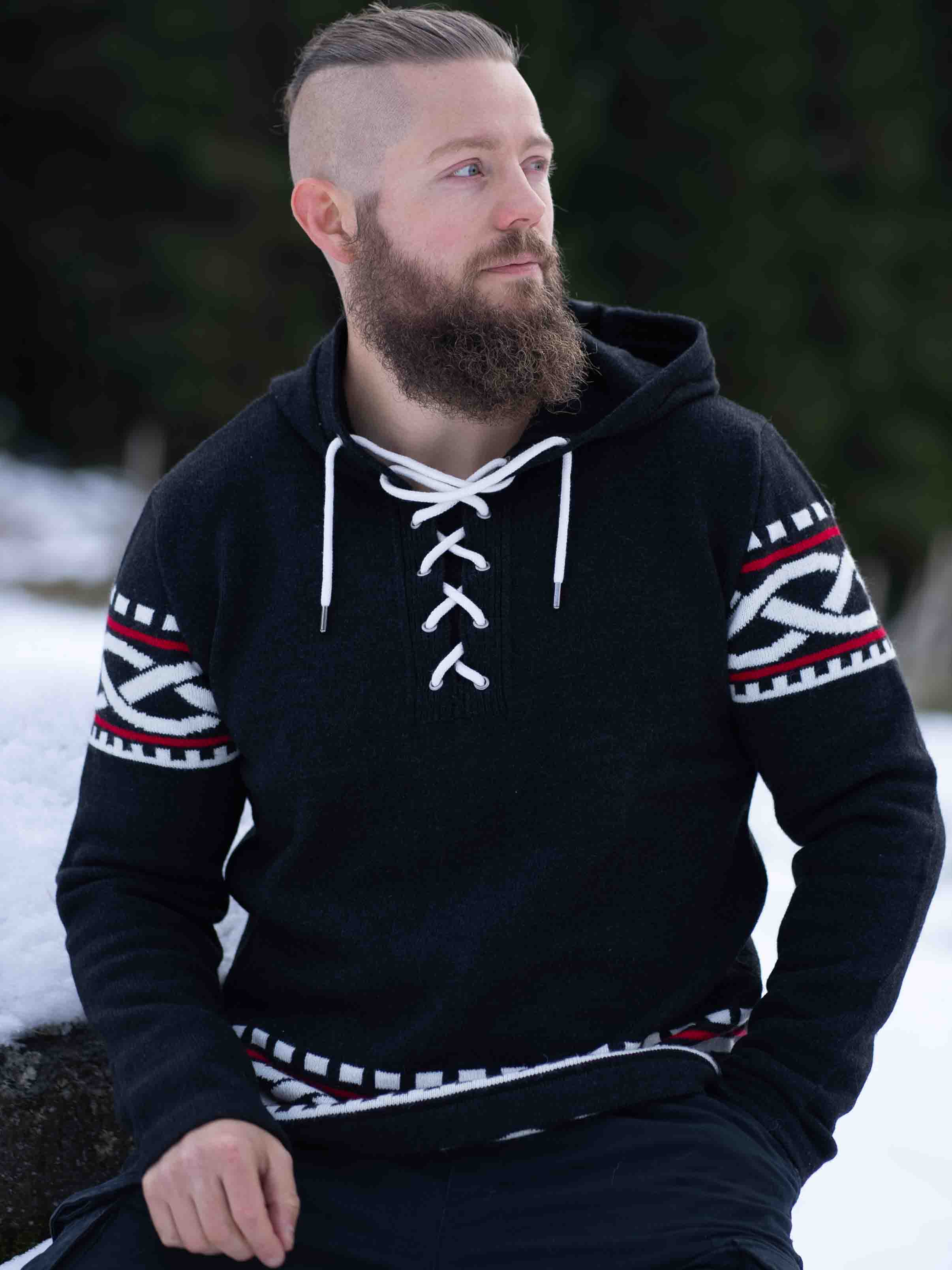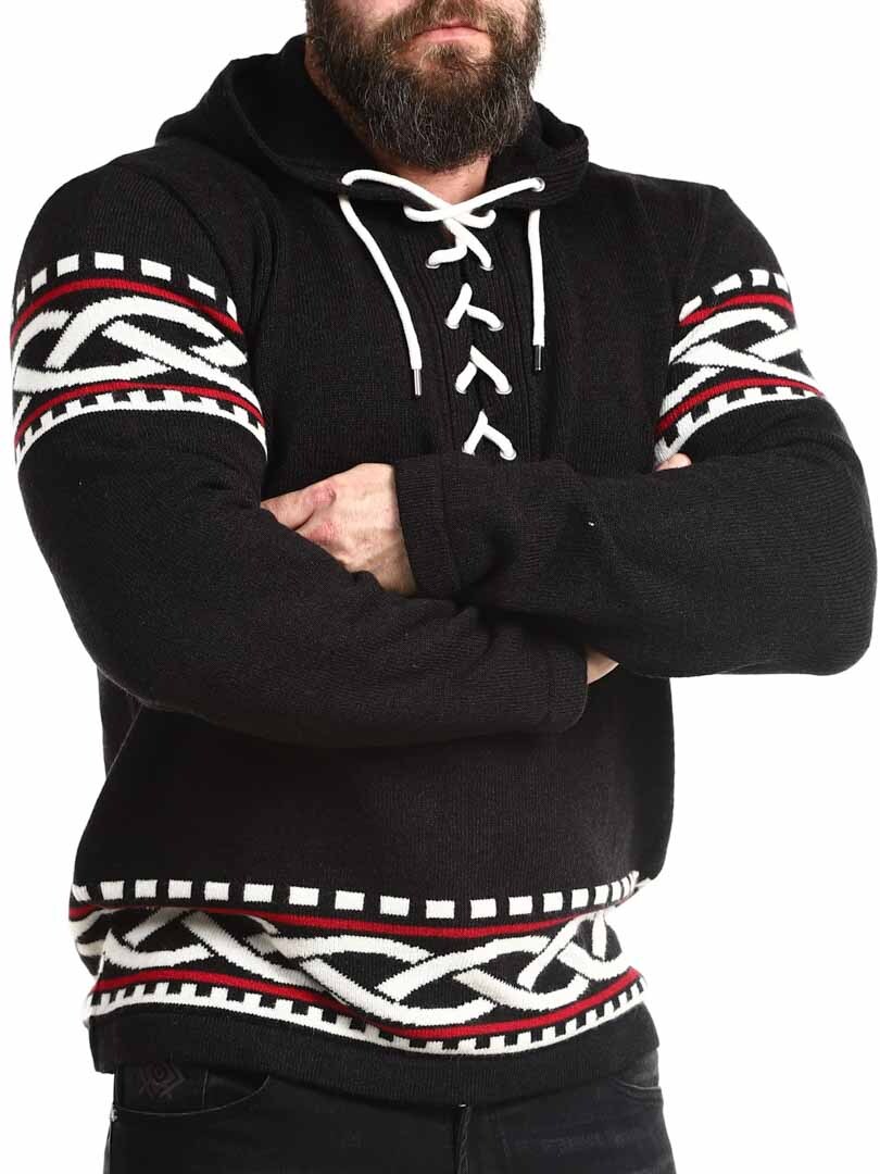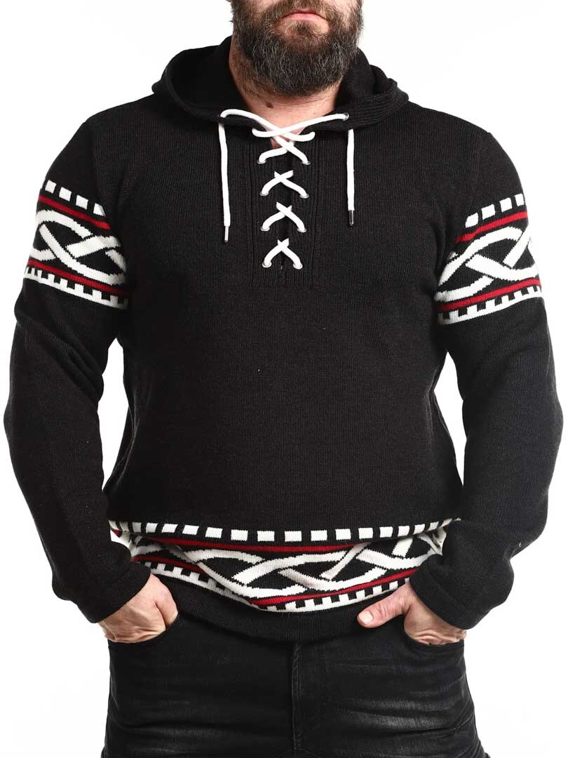 Tunne pohjoisen voima tämän viikinkihenkisen hupparin avulla – täydellinen yhdistelmä rouheaa tyyliä ja modernia mukavuutta. Hupparissa on aito, pohjoismainen kuviointi, jossa on selkeät viikinkiyksityiskohdat hihoissa ja helmassa, sekä nyöritys kaula-aukossa, joka tuo perinteisen ja voimakkaan ilmeen. Valmistettu pehmeästä ja lämpimästä materiaalista, joka tuntuu mukavalta koko päivän – olitpa sitten luonnossa tai haluat vain erottua arjessa.