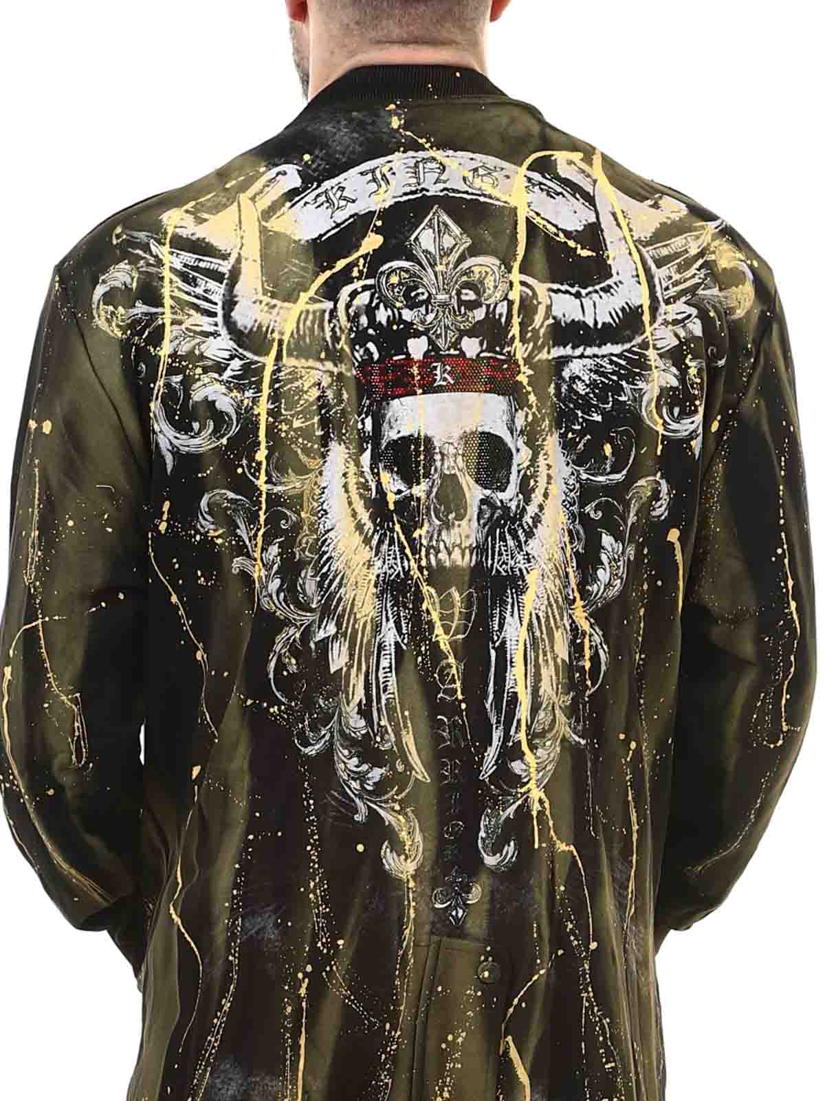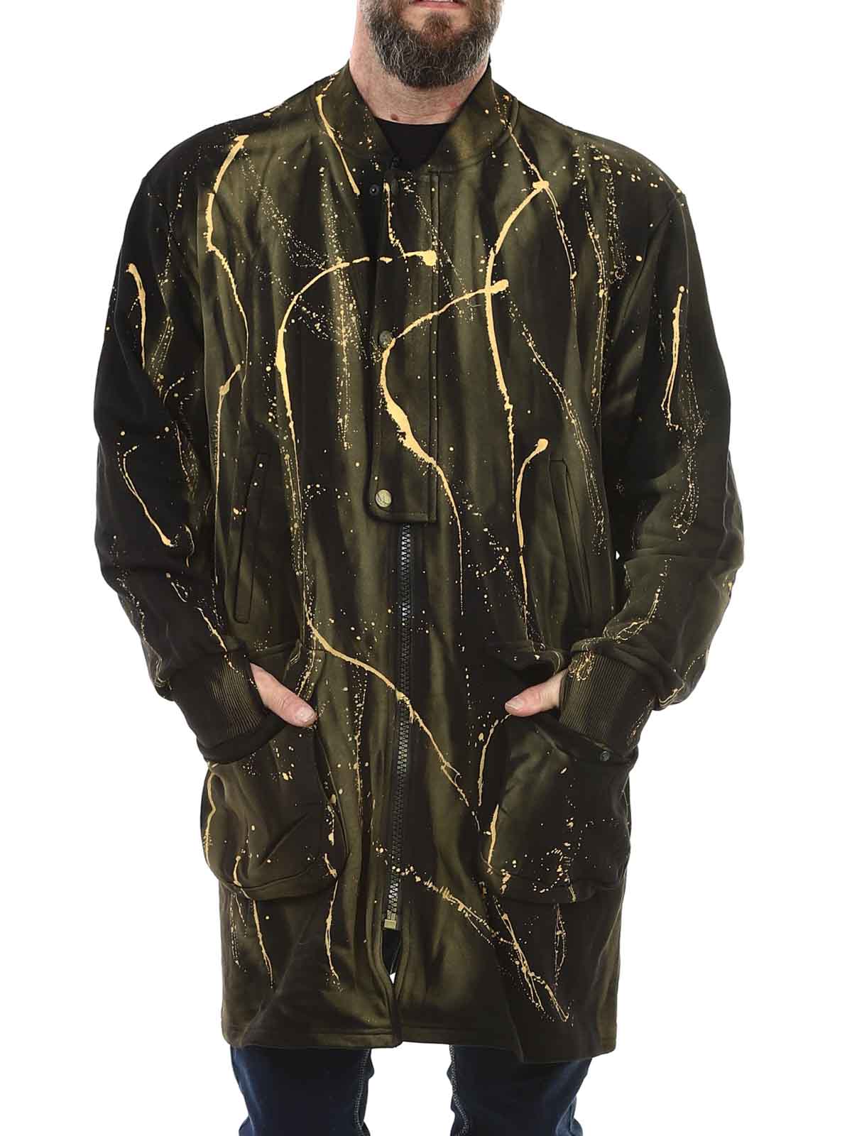 Pitkä pusero asenteella ja designilla, joka todella erottuu. Koristeltu maalatuilla väritehosteilla ja roiskeilla, jotka luovat raa’an ja taiteellisen ilmeen, kun taas selkää koristaa pääkallokuvio strassikivillä näyttävänä yksityiskohtana. Puserossa on neljä etutaskua ja se suljetaan sekä vetoketjulla että napeilla.