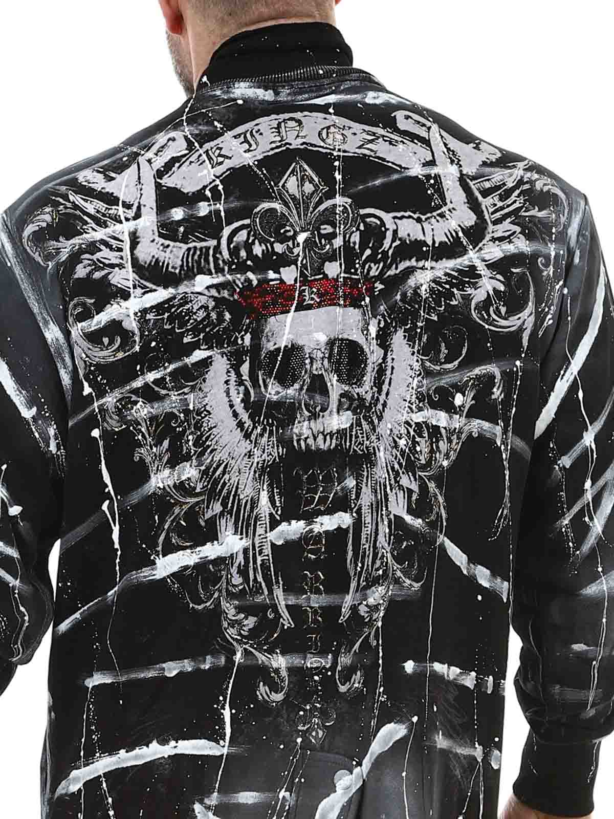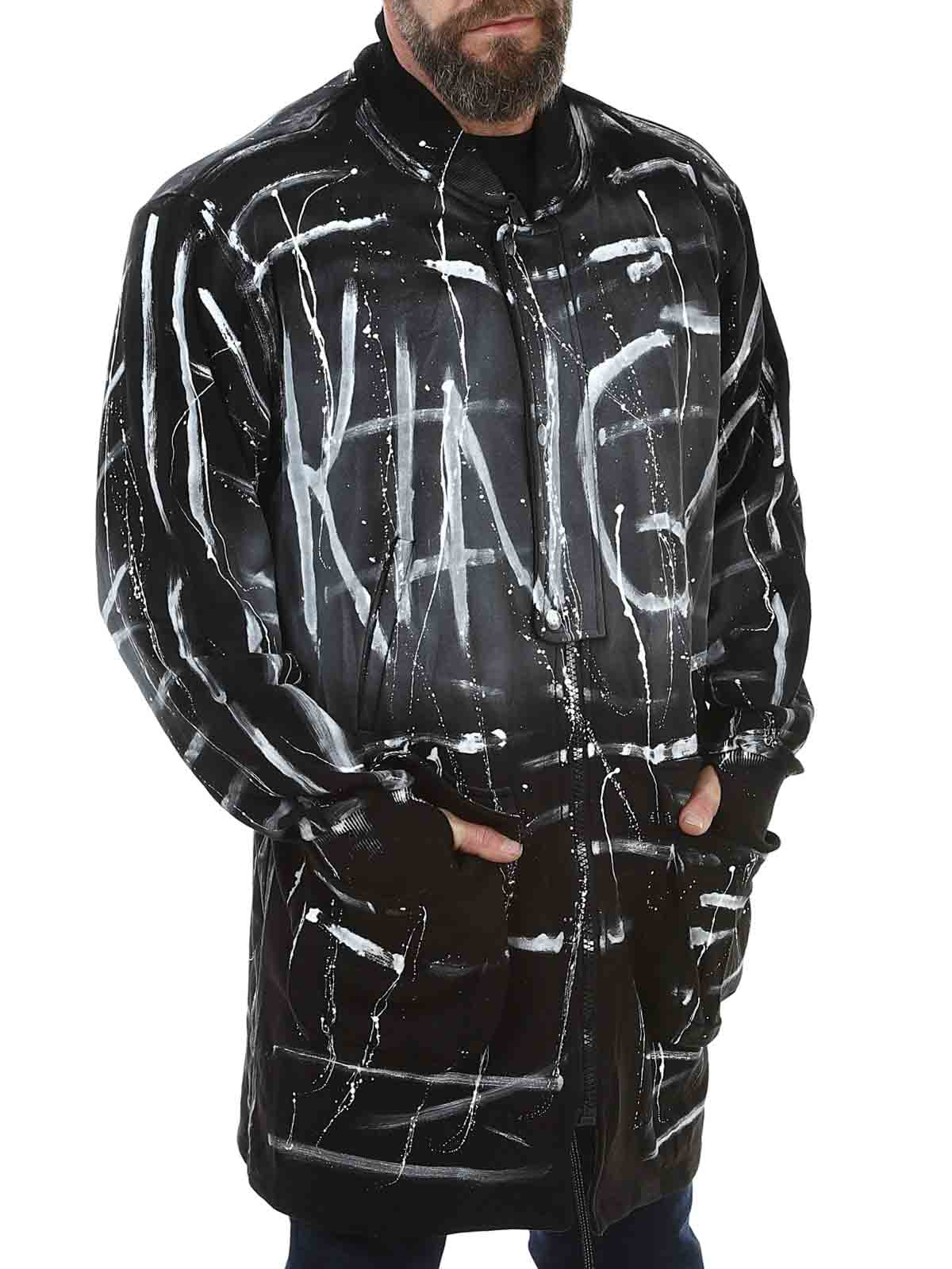 Pitkä pusero asenteella ja designilla, joka todella erottuu. Koristeltu maalatuilla väritehosteilla ja roiskeilla, jotka luovat raa’an ja taiteellisen ilmeen, kun taas selkää koristaa pääkallokuvio strassikivillä näyttävänä yksityiskohtana. Puserossa on neljä etutaskua ja se suljetaan sekä vetoketjulla että napeilla.
