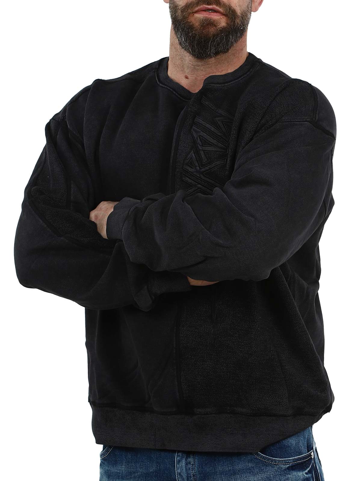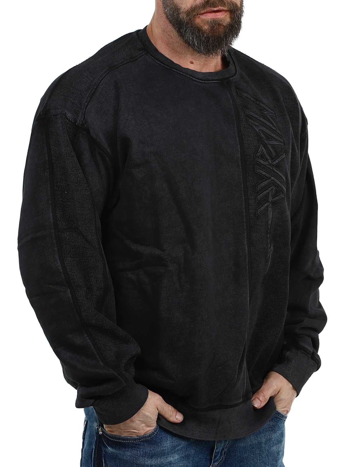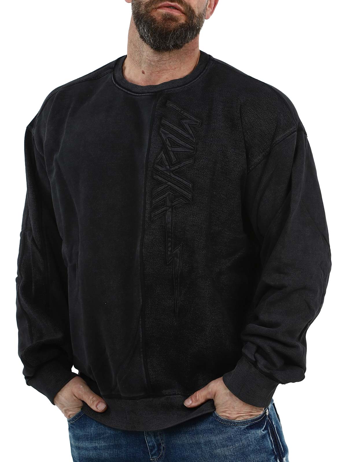 Musta collegepaita, jossa on kulutettu ilme, suunniteltu Hyraw-logolla edessä ja suurella pääkallomotiivilla selässä. Mallissa on oversized-istuvuus, joka antaa rennon ja modernin ilmeen – täydellinen sinulle, joka haluat sekä tyyliä että liikkumisvapautta. Paidassa on myös resorit hihansuissa ja helmassa mukavaa istuvuutta varten.