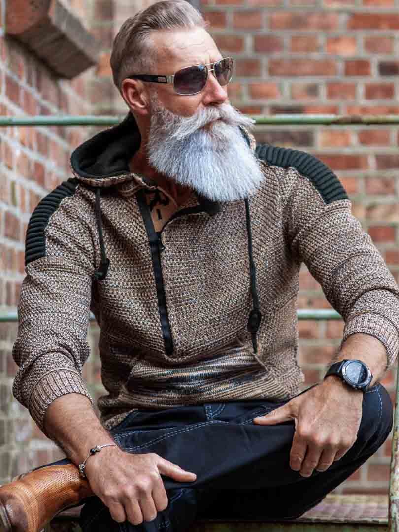 Neulotusta stretchistä valmistettu huppari, jossa raidat sivuilla tuovat maskuliinista vaikutelmaa. Uniikki vetoketju edessä kulkee rinnan päältä Piilotetut neulotut kirjaimet paljastuvat vetoketjun ollessa auki. Paksu, mukava naruin kiristettävä huppu ja läpimenevä tasku edessä. Saatavilla useissa eri väreissä!