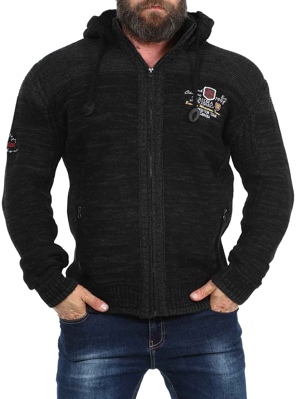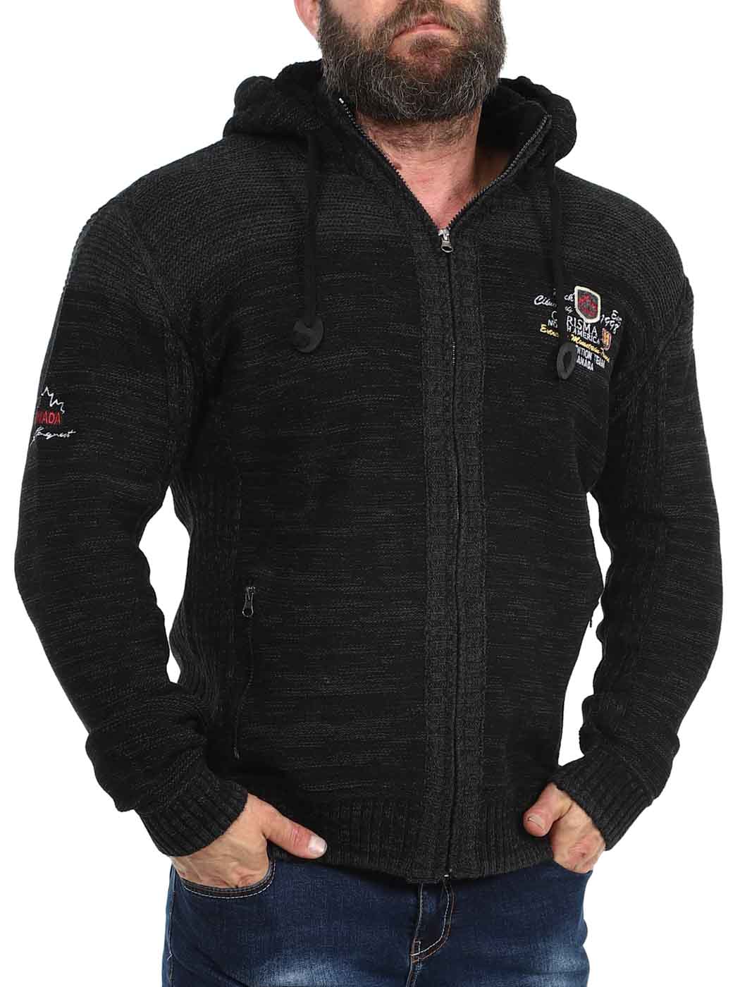 Kuvioneulepusero, jossa on vetoketju ja huppu. Yksityiskohtina ommeltu logo ja ribbihihansuut. Käytännöllinen malli, jossa kaksi vetoketjullista taskua ja lämmin teddyvuori hupun sisäpuolella.