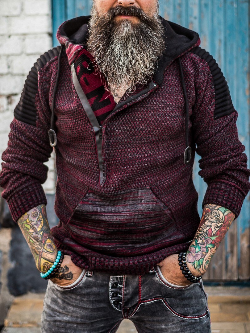 Neulotusta stretchistä valmistettu huppari, jossa raidat sivuilla tuovat maskuliinista vaikutelmaa. Uniikki vetoketju edessä kulkee rinnan päältä Piilotetut neulotut kirjaimet paljastuvat vetoketjun ollessa auki. Paksu, mukava naruin kiristettävä huppu ja läpimenevä tasku edessä. Saatavilla useissa eri väreissä!