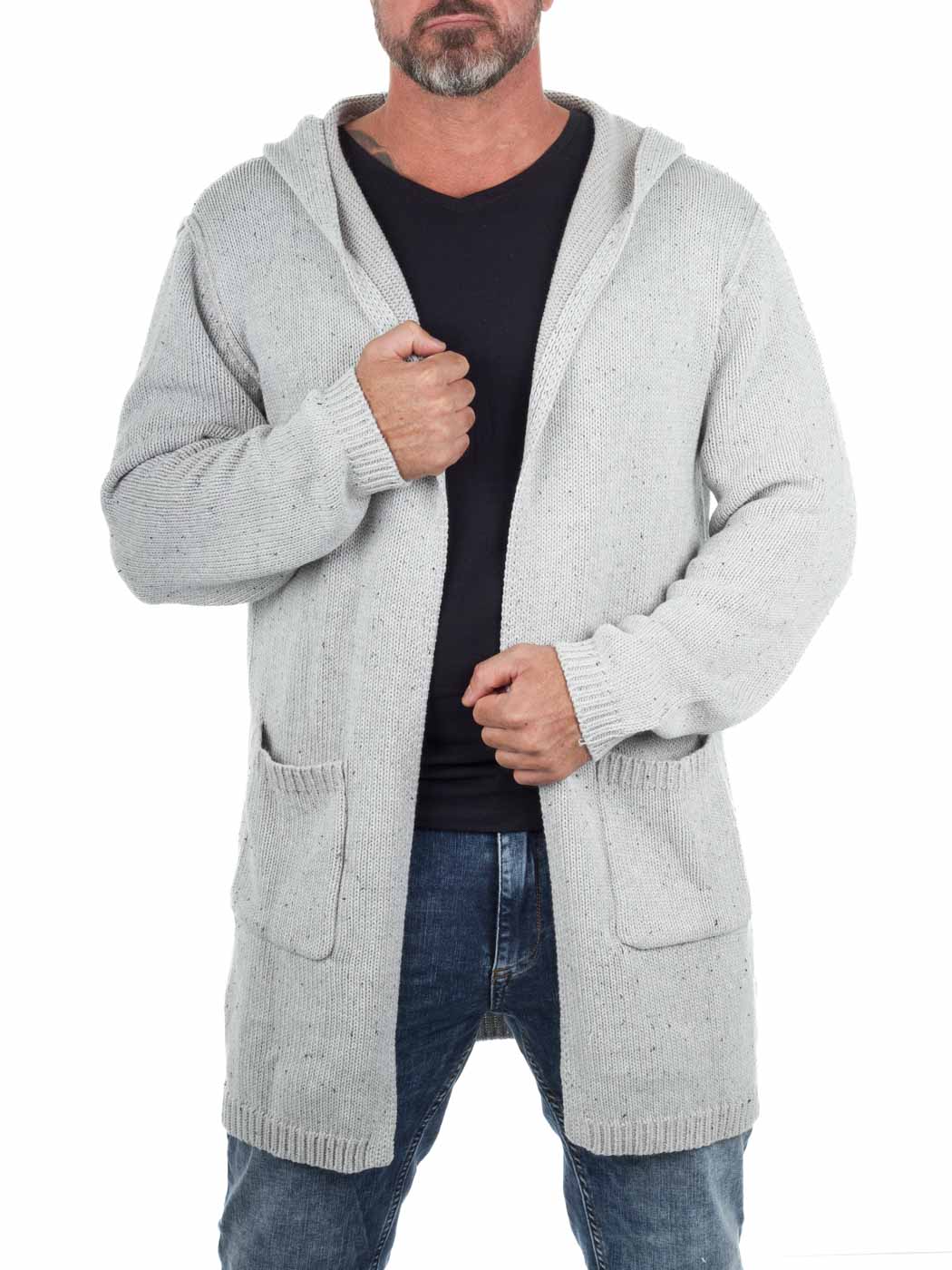 Pidempi hupullinen neuletakki, jossa on avoin etuosa. Pitkä, suora malli ja kaksi etutaskua. Tyylikäs valinta, joka on helppo yhdistää erilaisiin t-paitoihin ja sisällyttää kerrospukeutumiseen.