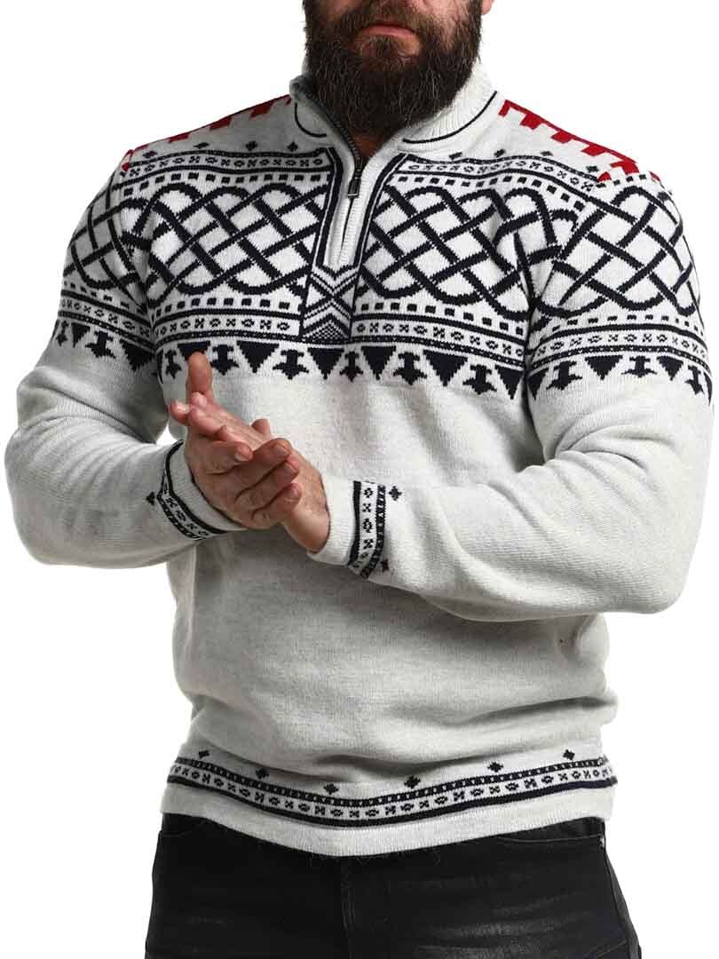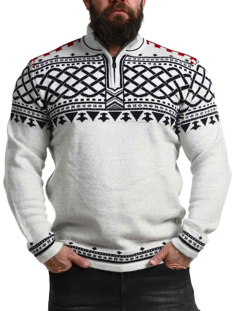 Vankka ja tyylikäs neule, joka on saanut inspiraationsa pohjoismaisista perinteistä ja viikinkien hengestä! Neule on valmistettu ainutlaatuisesta lankasekoituksesta, joka tarjoaa lämpöä ja mukavuutta koko päivän ajan. Klassinen kaulus ja vetoketju pääntiessä tekevät siitä helpon säätää tyylin ja lämmön mukaan.
