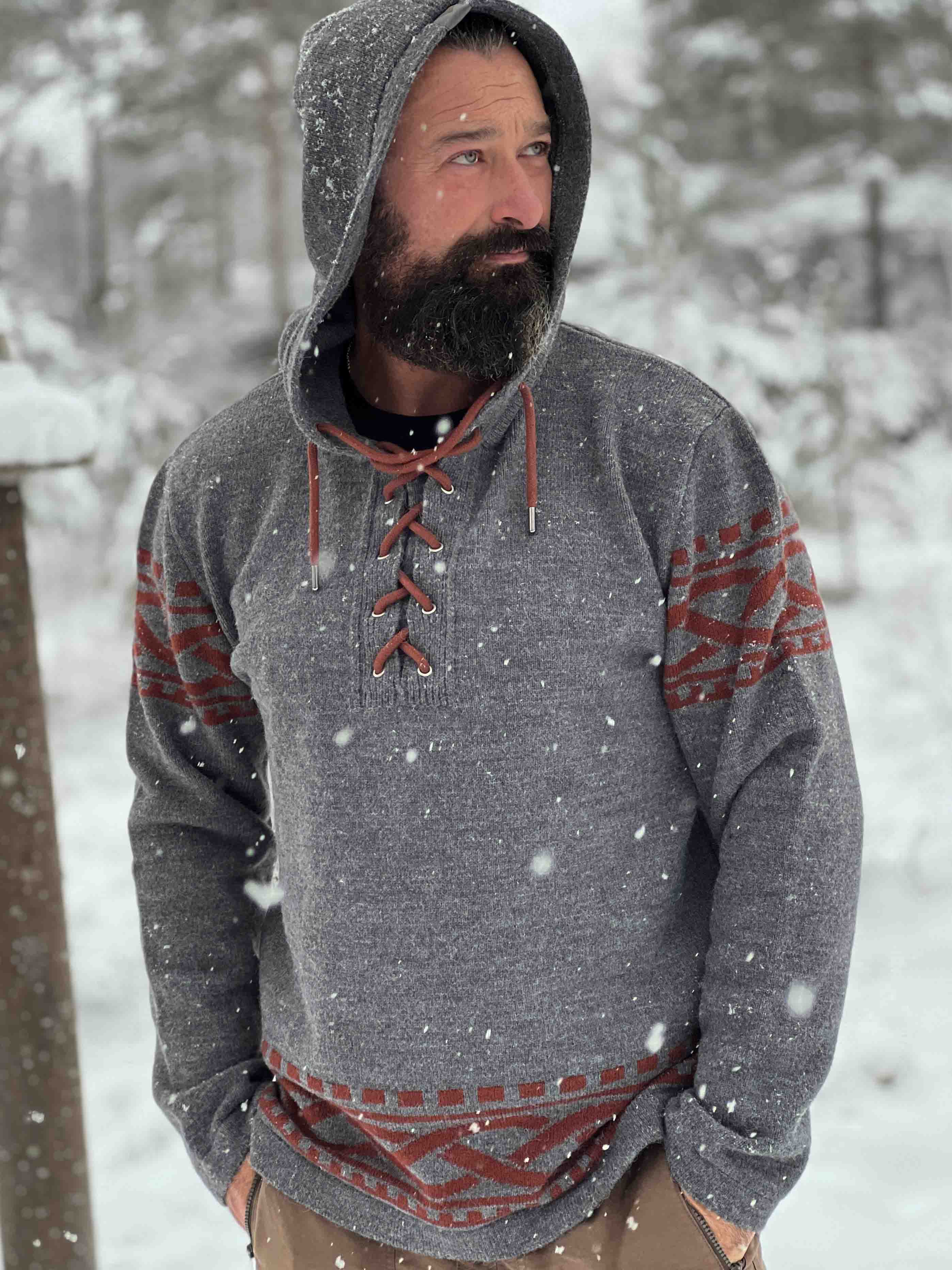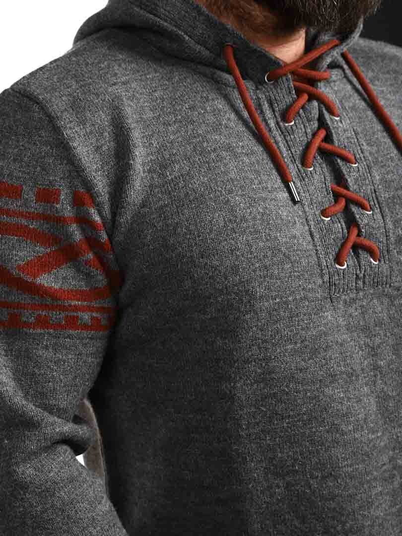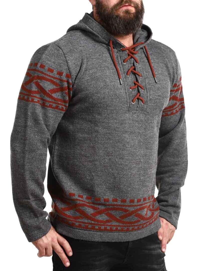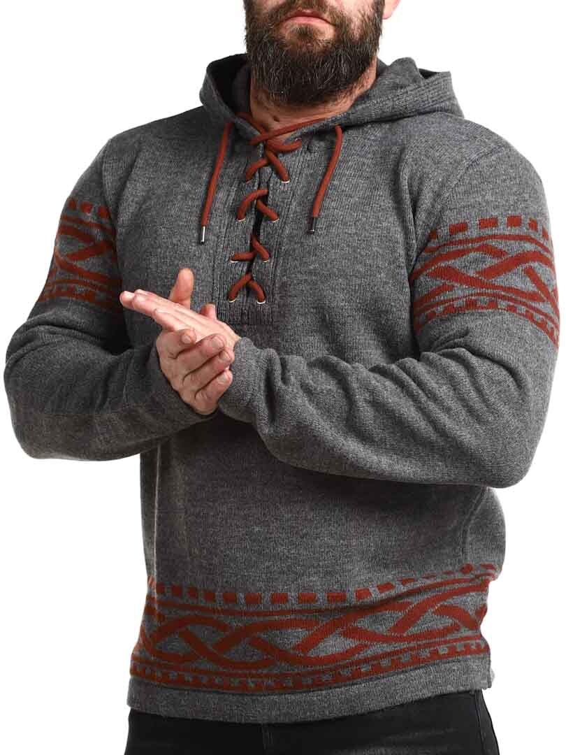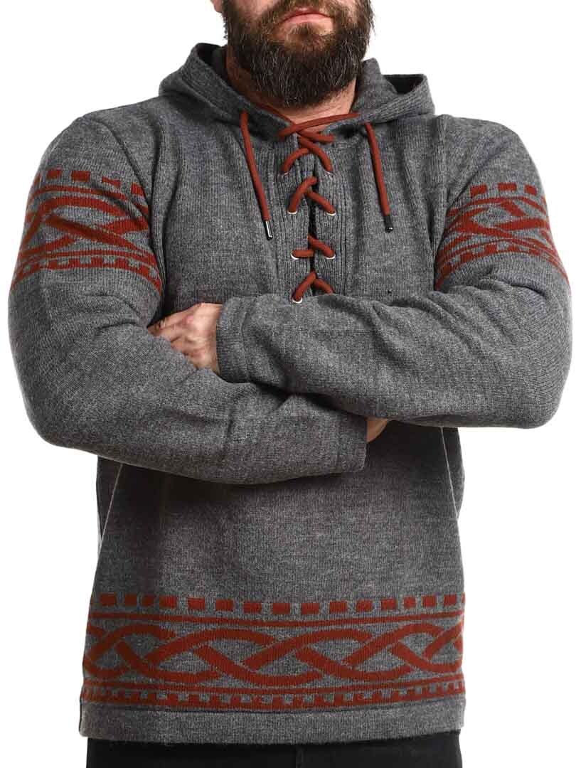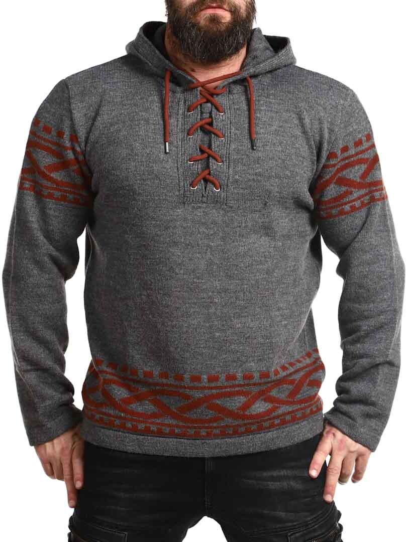 Tunne pohjoisen voima tämän viikinkihenkisen hupparin avulla – täydellinen yhdistelmä rouheaa tyyliä ja modernia mukavuutta. Hupparissa on aito, pohjoismainen kuviointi, jossa on selkeät viikinkiyksityiskohdat hihoissa ja helmassa, sekä nyöritys kaula-aukossa, joka tuo perinteisen ja voimakkaan ilmeen. Valmistettu pehmeästä ja lämpimästä materiaalista, joka tuntuu mukavalta koko päivän – olitpa sitten luonnossa tai haluat vain erottua arjessa.