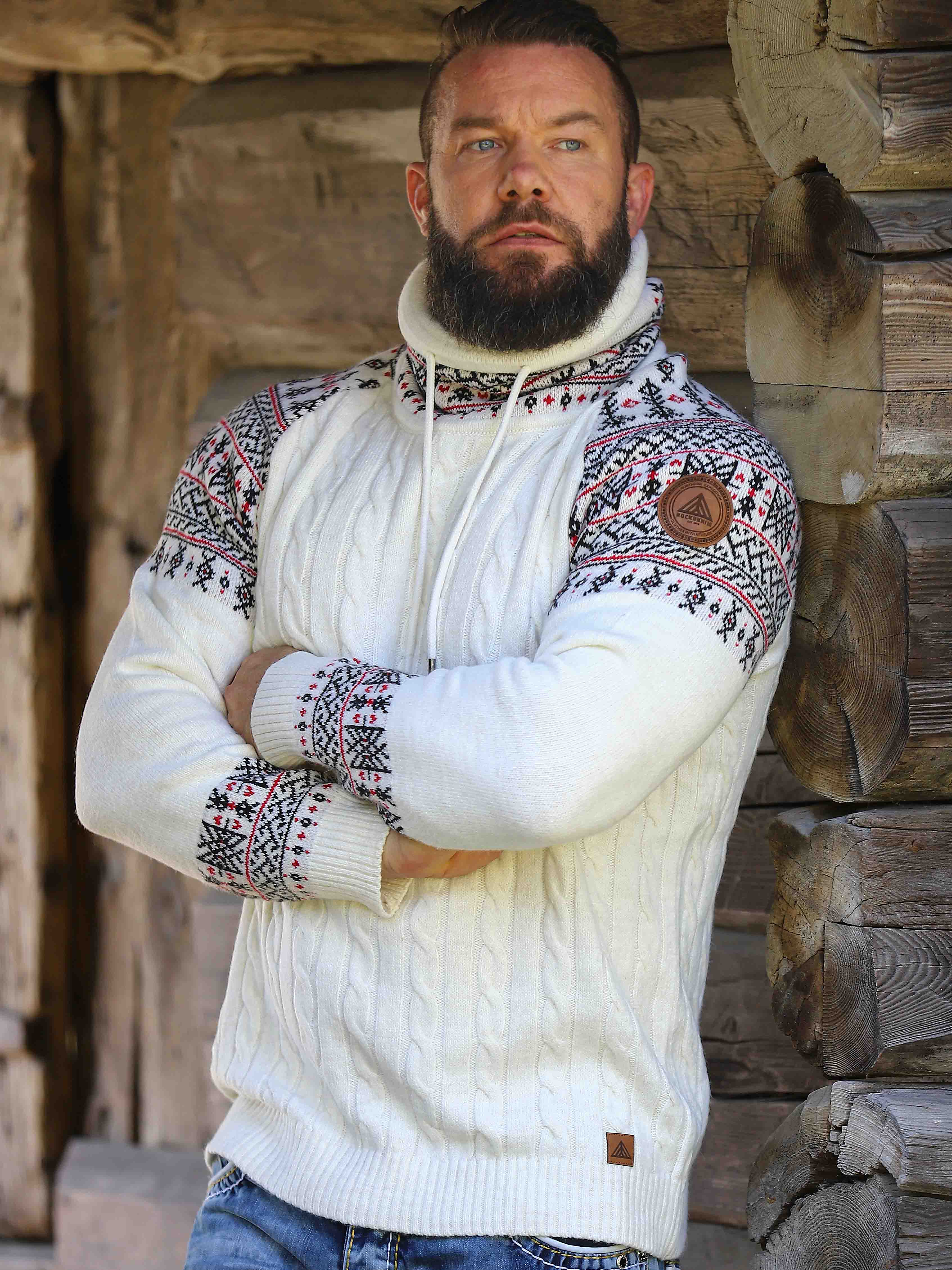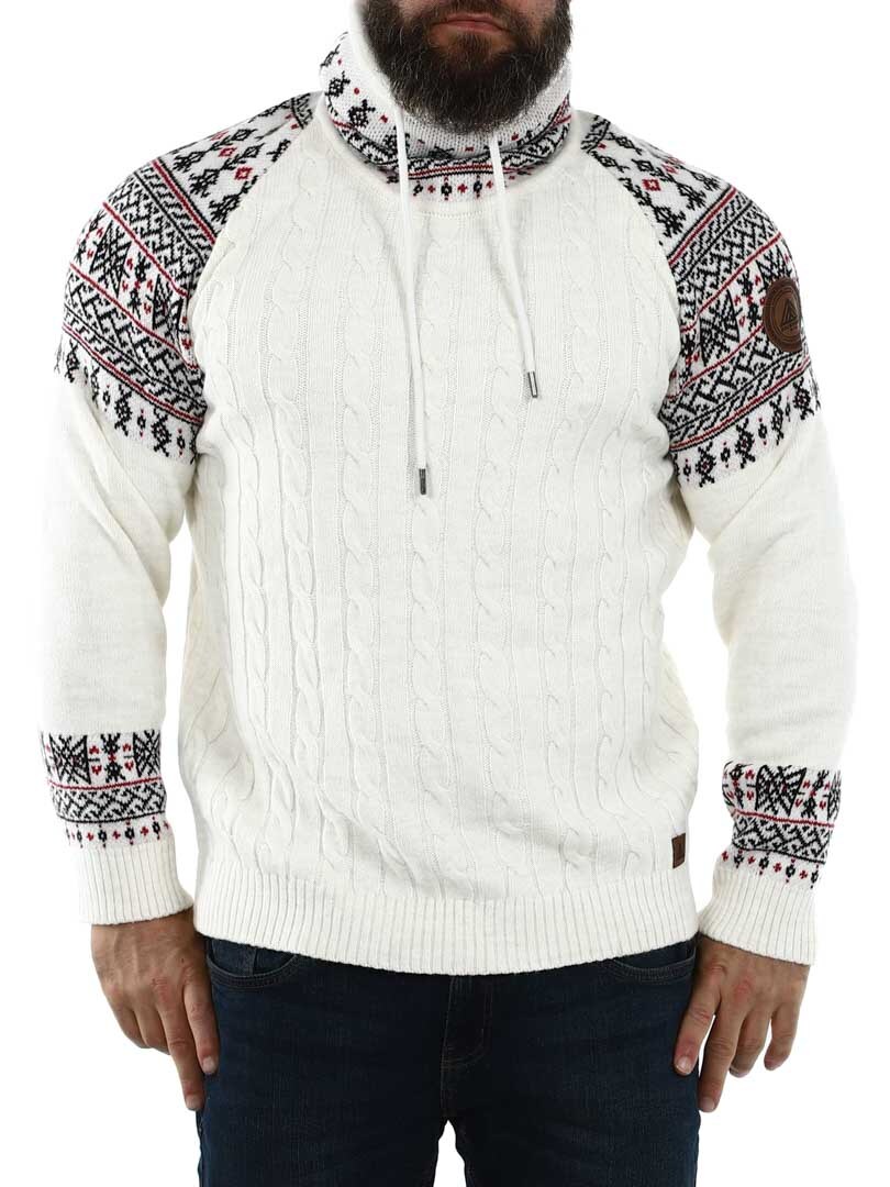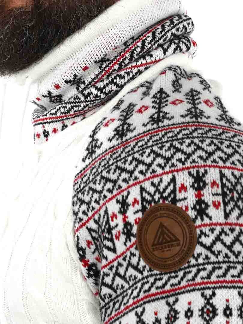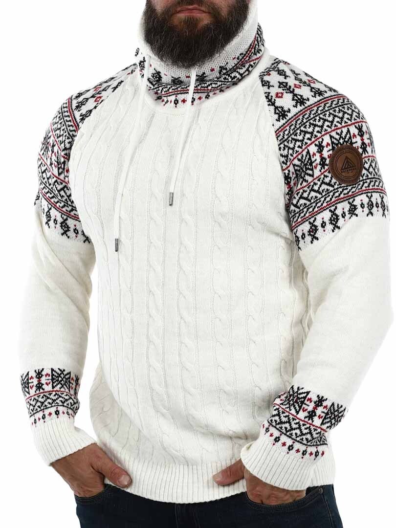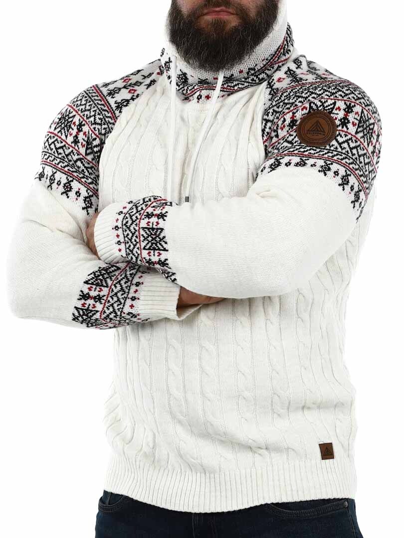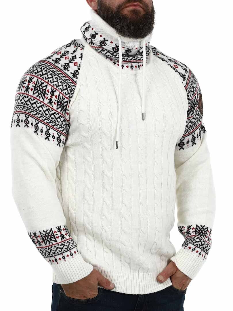 Varustettu korkealla kauluksella, jota voi säätää nauhoilla. Hihoja ja kaula-aukkoa korostavat tyylikkäät kontrastiväriset kuviot. Tämä villapusero on valmistettu varta vasten asiakkaillemme ja saatavilla vain RockDenimiltä!