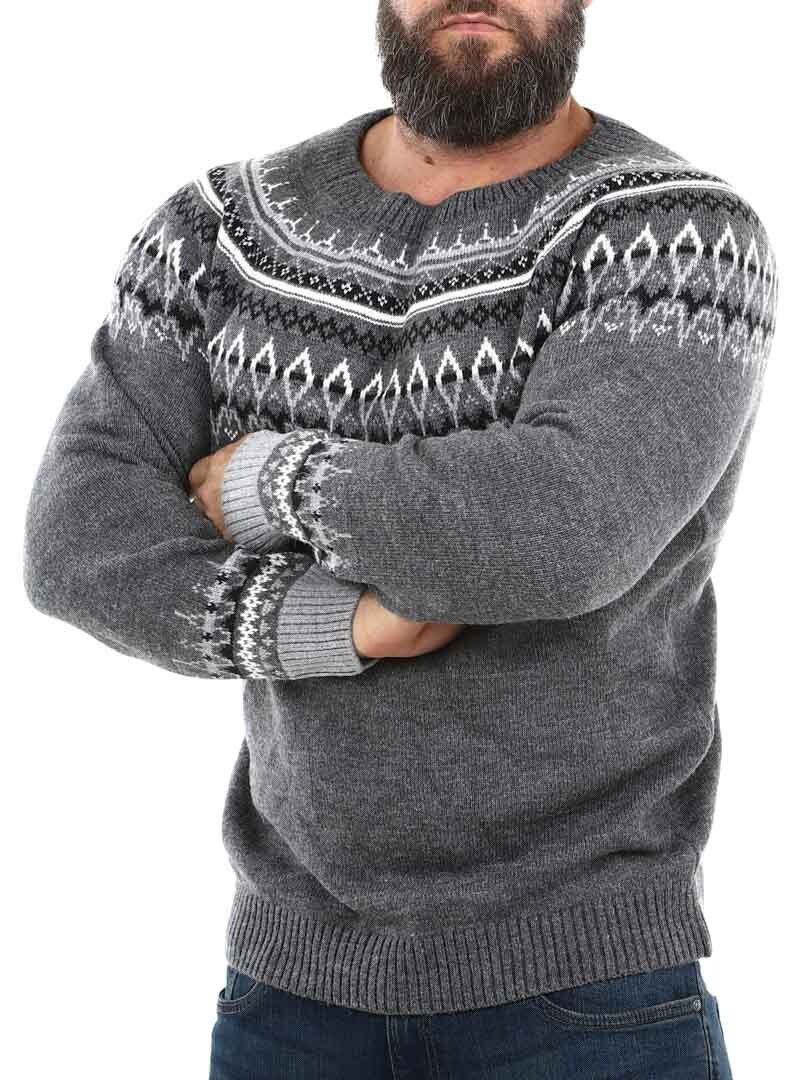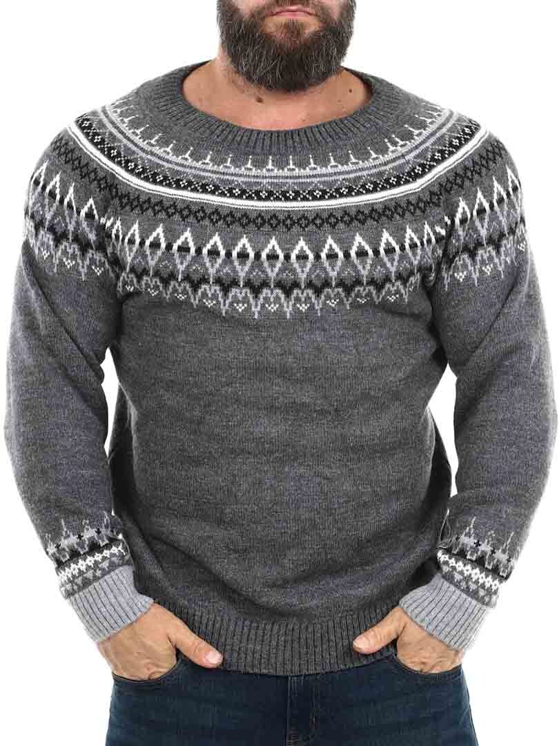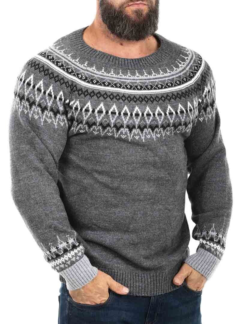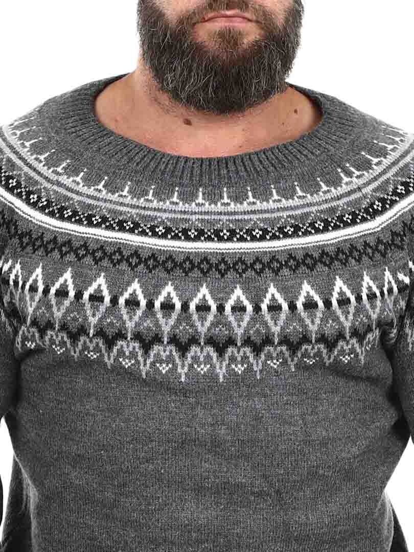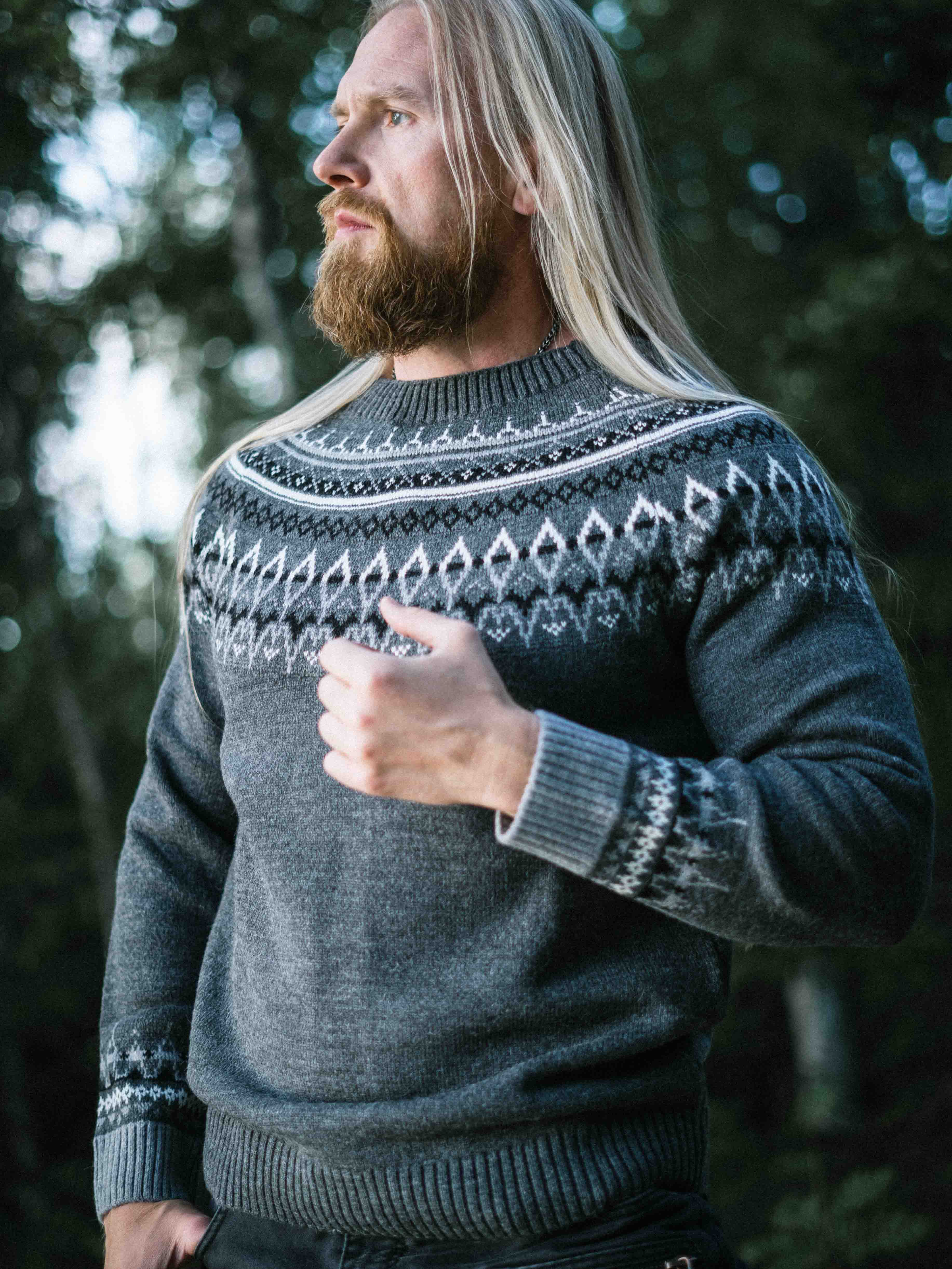Omaksu aito pohjoismainen perintö tällä klassisen tyylikkäällä neuleella, joka on saanut inspiraationsa viikinkisymboleista ja skandinaavisista kuvioista. Paksu, villaa muistuttava materiaali tarjoaa lämpöä ja kestävyyttä, kun taas yksityiskohtainen kuvio rinnan ja hartioiden alueella luo ajattoman ja maskuliinisen ilmeen. Täydellinen kylmiin päiviin – niin ulkoiluun kuin arkeen.