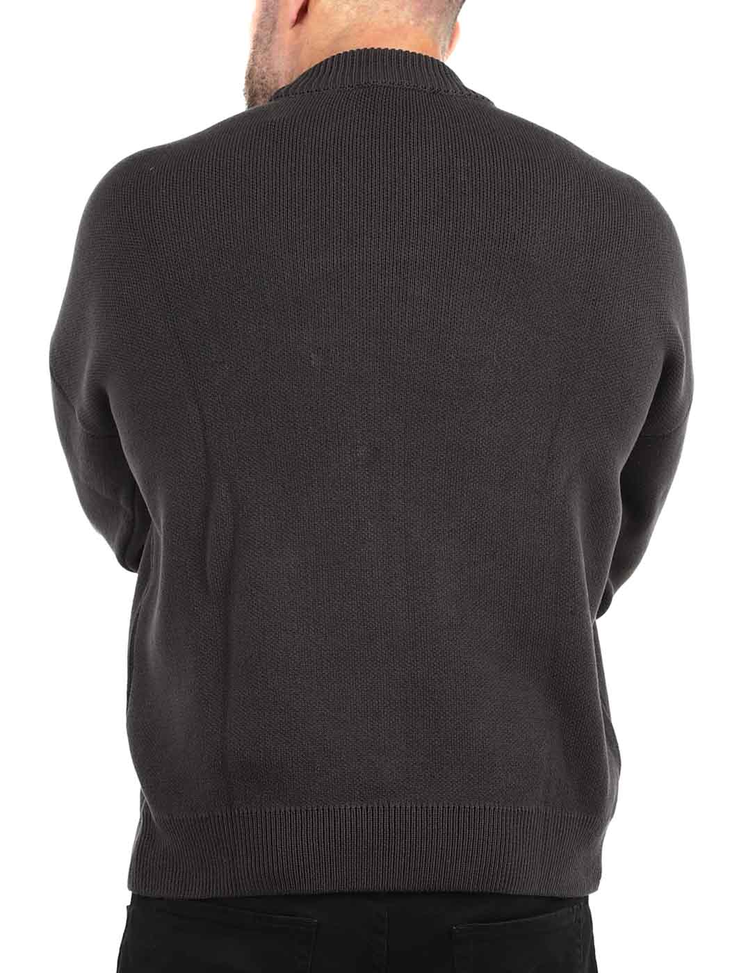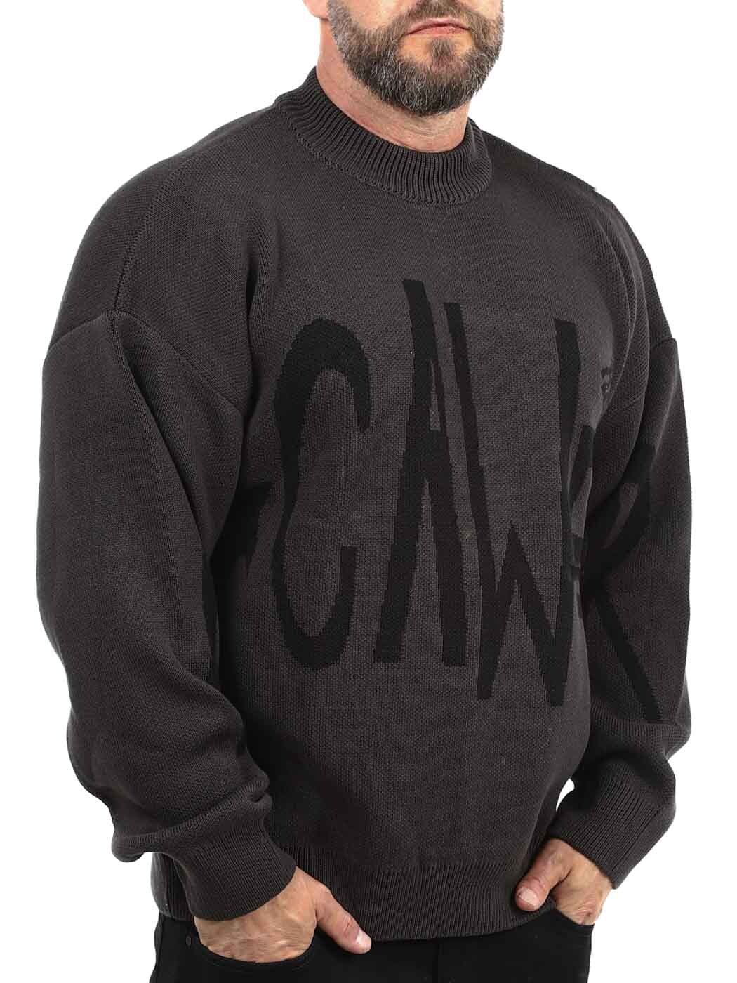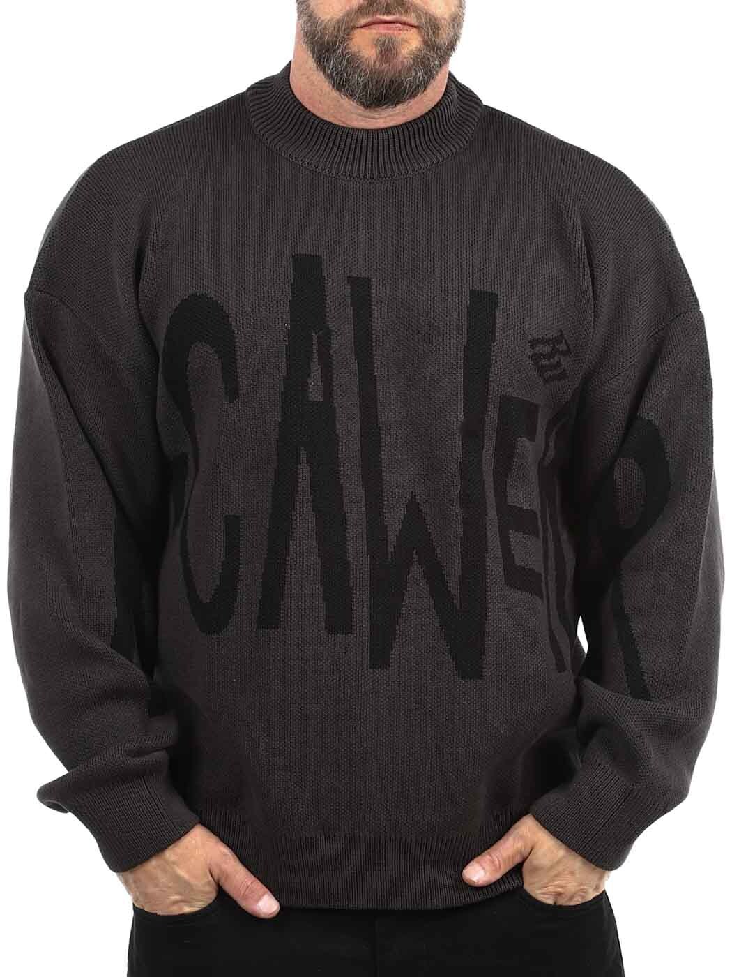 Paksu neule, joka on valmistettu kestävästä harmaasta materiaalista, joka tuntuu yhtä jämäkältä kuin miltä se näyttää. Etupuolella on suurikokoinen musta logo ja reunoissa ribbiä. Sopii täydellisesti viileisiin päiviin tai silloin, kun haluat vain paksumpaa ylle.