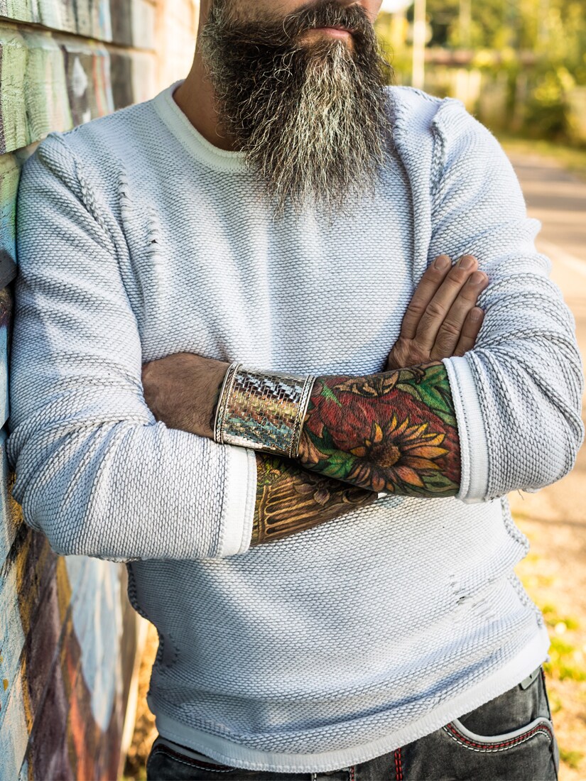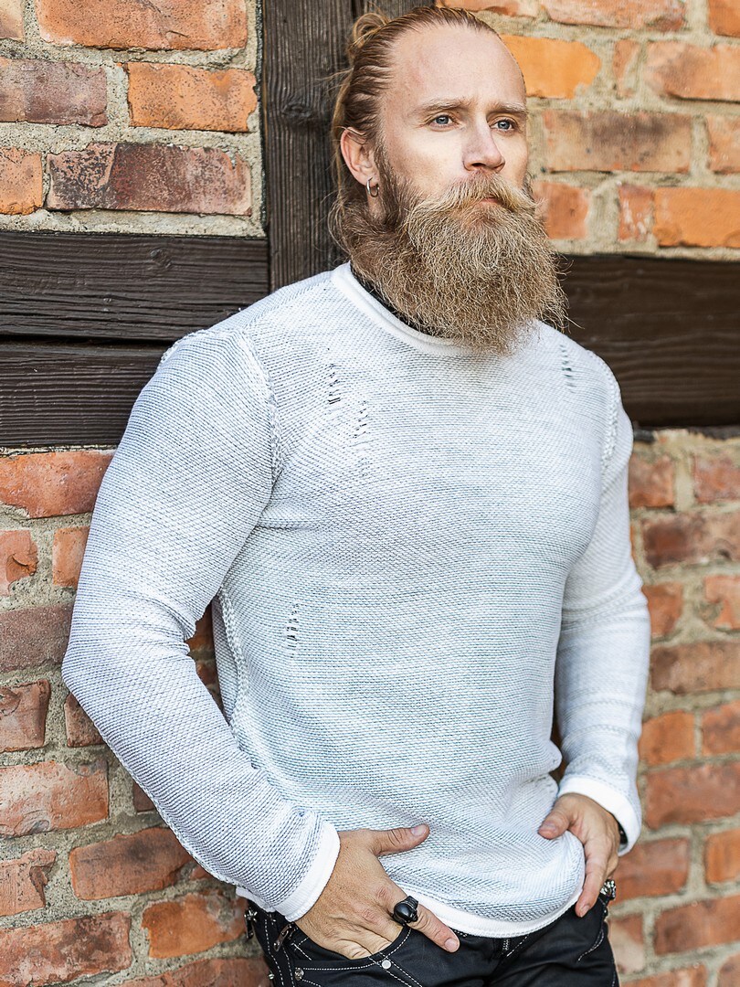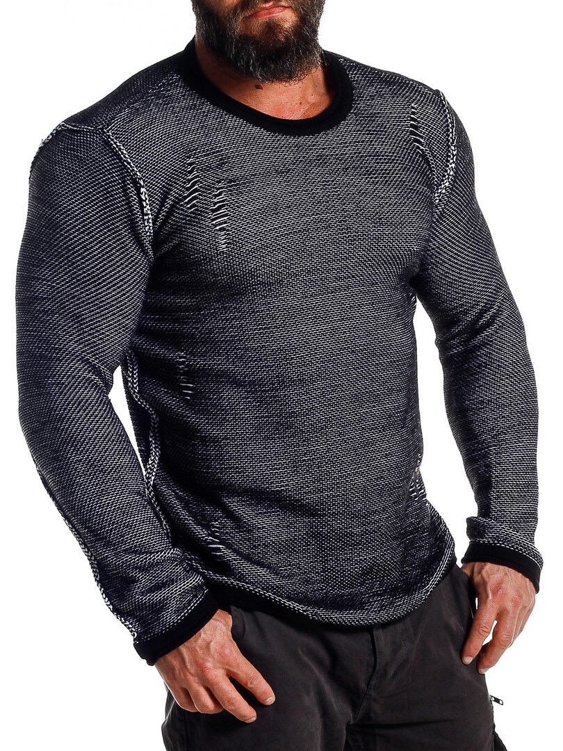 Maskuliininen paita, joka yhdistää pelkistetyn designin ja rouhean asenteen. Neulottu rakenne yhdessä kulutettujen yksityiskohtien kanssa olkapäissä, sivuilla ja hihoissa antaa vaatteelle kovan ja modernin ilmeen. Mallissa on pyöreä pääntie ja mukava istuvuus, mikä tekee siitä helpon yhdistää sekä farkkuihin että siistimpiin housuihin. Täydellinen valinta sinulle, joka haluat paidan vahvalla luonteella ja erottuvilla yksityiskohdilla!