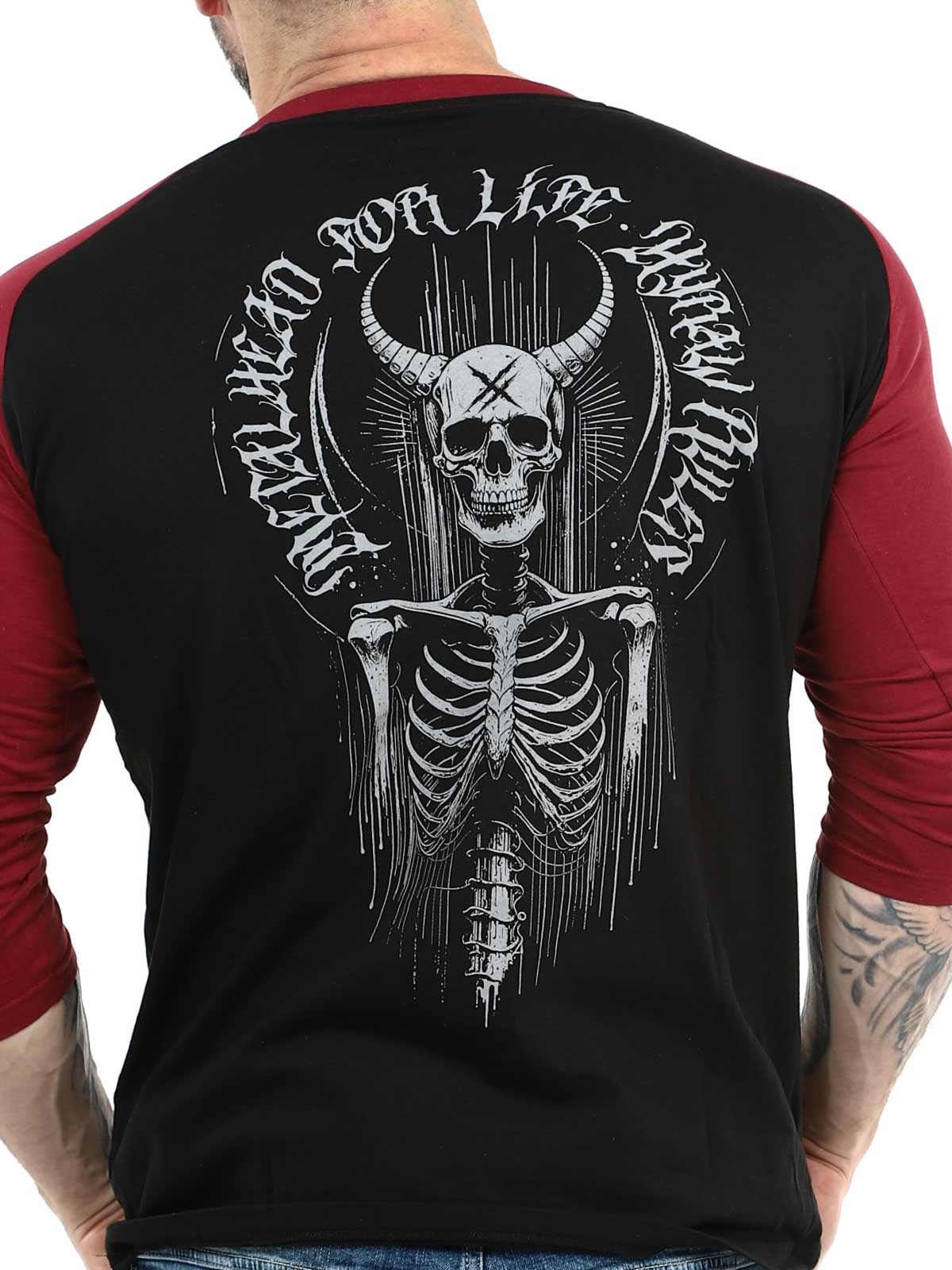 Anna vaatekaapillesi rockimpi ilme tällä 3/4-hihaisella raglan-t-paidalla. Paita on suunniteltu kontrastivärisillä raglanhihoilla, jotka antavat sille uniikin ilmeen verrattuna tavallisiin t-paitoihin. Selässä on suuri harmaa painatus ja edessä rinnassa pienempi painatus.