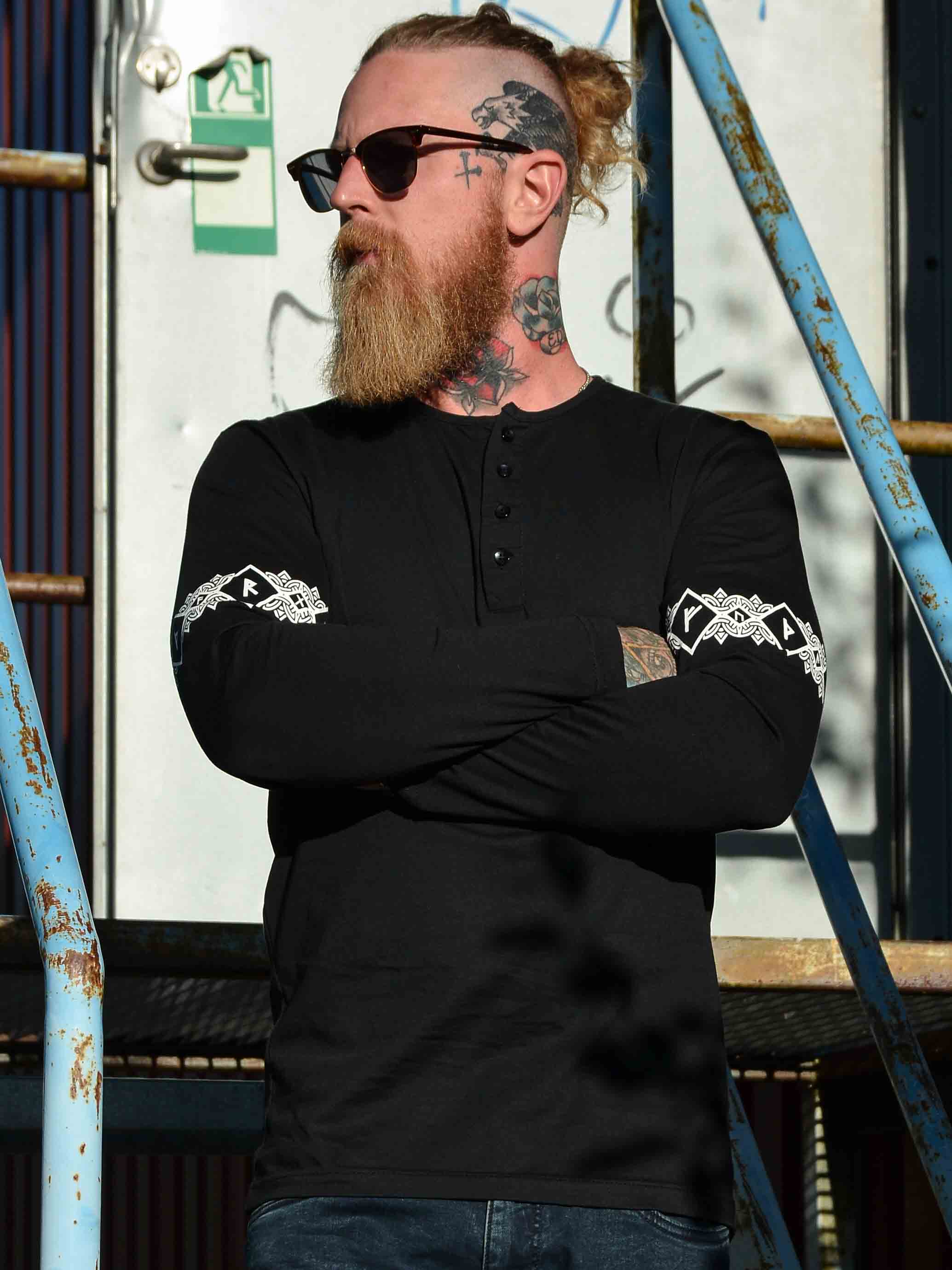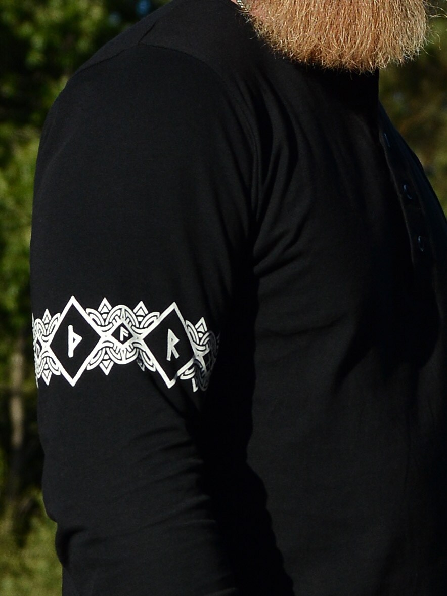 Musta pitkähihainen viikinkihenkisellä printillä – RD Ancestors Viking Collection