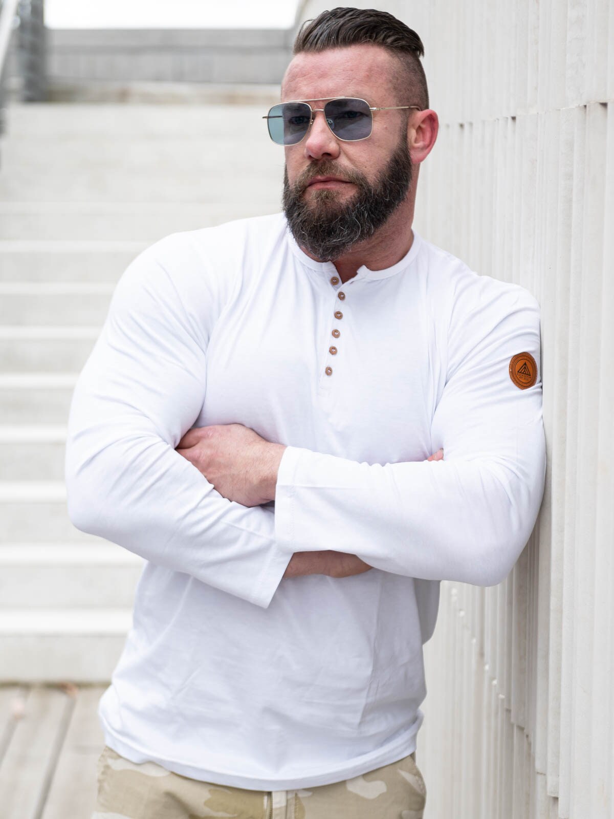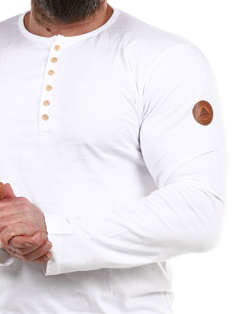 Oman tuotantomme pitkähihainen on valmistettu 100 % puuvillasta. Se on malliltaan klassinen ja siinä on napitettava etupuoli. Keinonahkainen logomerkki vasemmassa hihassa.