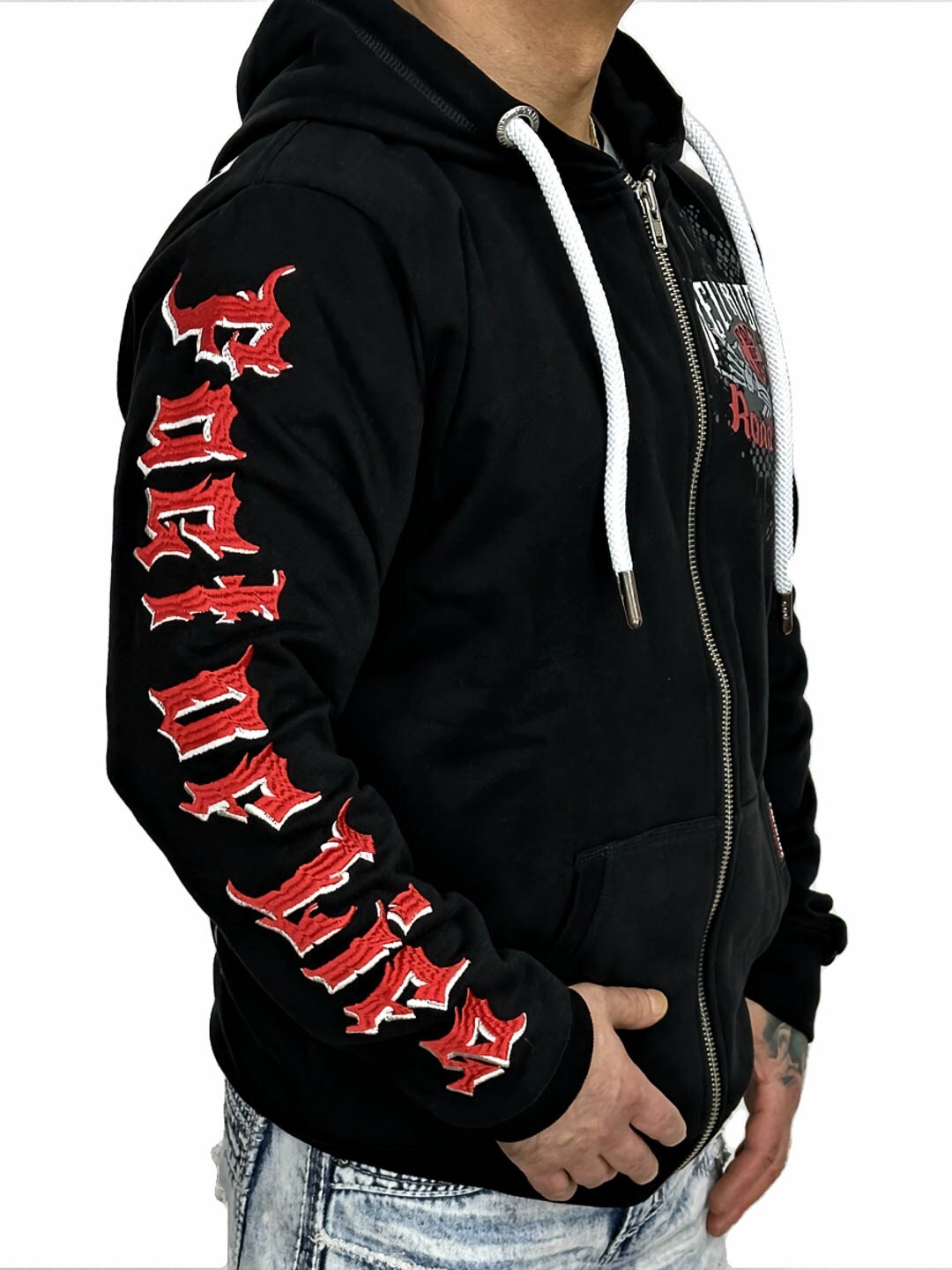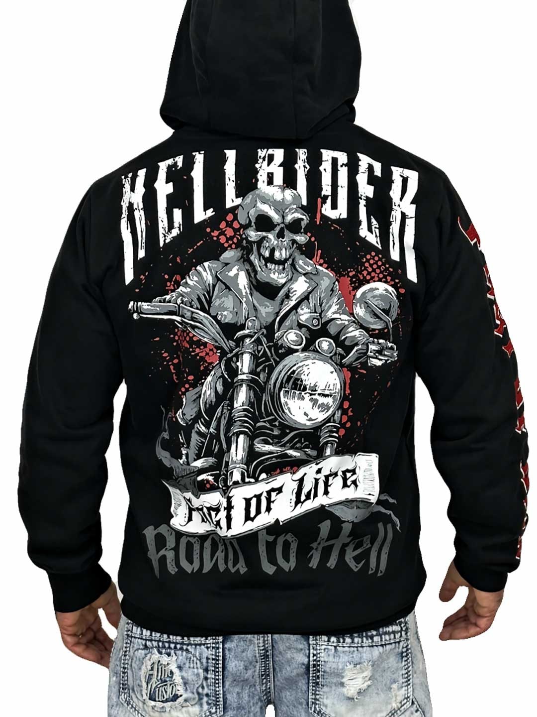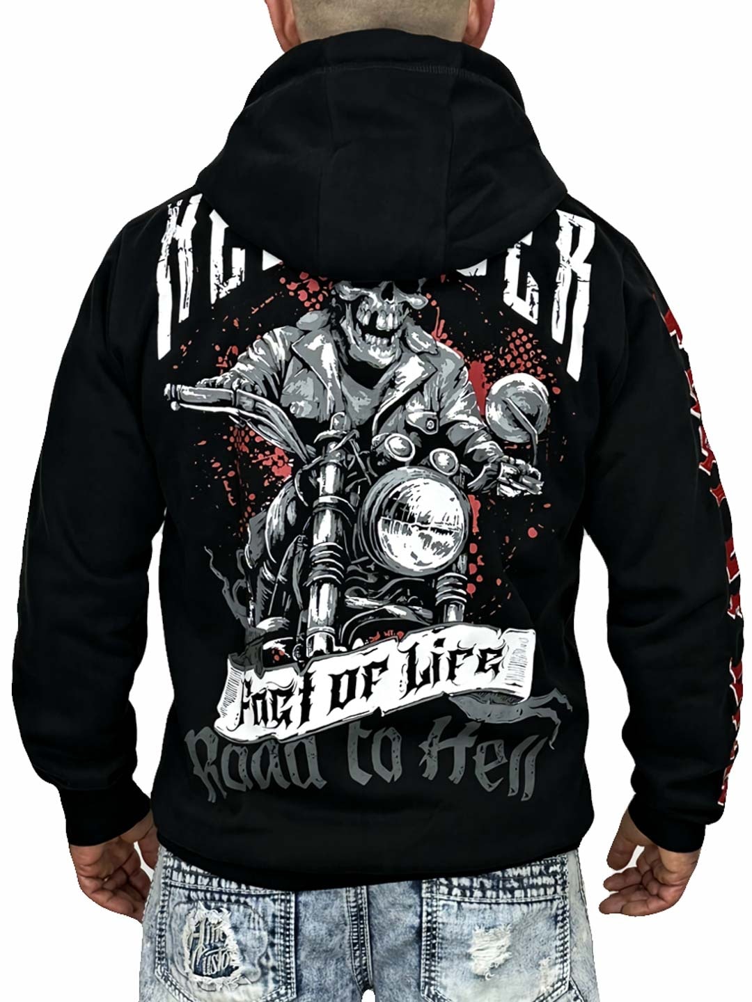 Räväkkä huppari selkeällä asenteella ja suurilla graafisilla painatuksilla, jotka luovat voimakkaan biker-henkisen ilmeen. Mallissa on vetoketju edessä, huppu kontrastivärisillä kiristysnyöreillä sekä klassiset kengurutaskut, jotka tekevät siitä sekä mukavan että käytännöllisen. Täydellinen valinta sinulle, joka haluat hupparin rock-henkisellä fiiliksellä ja näyttävällä kuosilla!
