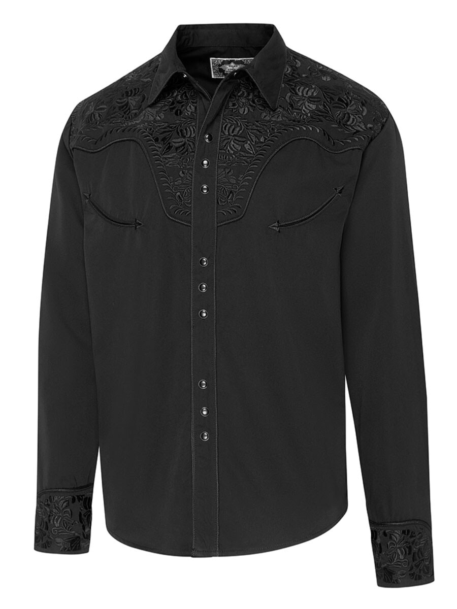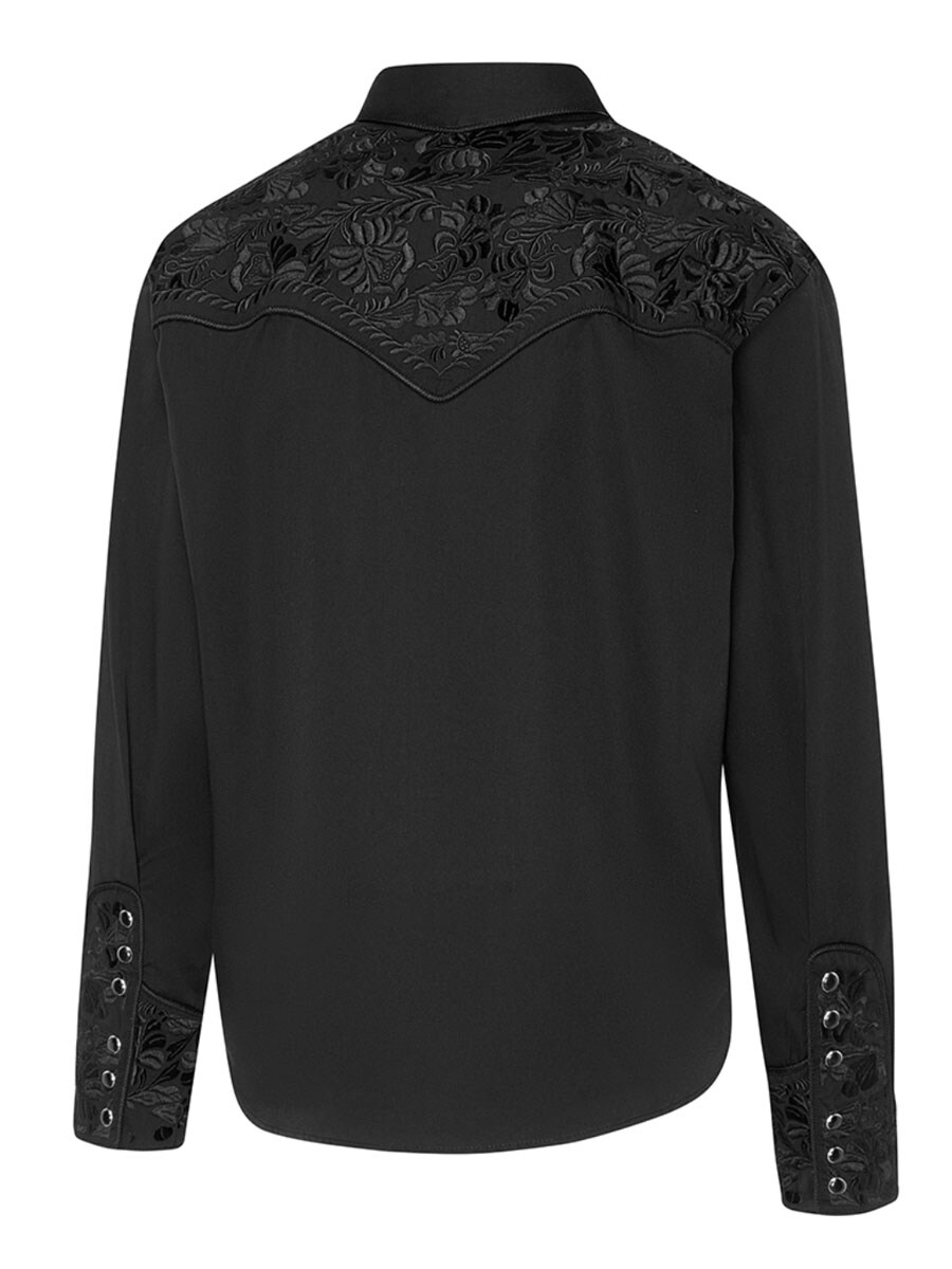 Tyylikäs westernpaita klassisilla yksityiskohdilla ja aidolla cowboy-ilmeellä. Mustassa paidassa on perinteinen westernok ja koristeellinen kirjailu sekä rinnassa että selässä, mikä antaa vaatteelle tunnistettavan ja näyttävän ilmeen. Korkeat hihansuut kuudella napilla antavat paidalle erottuvan tyylin ja vahvistavat klassista western-lookia. Polyesterin ja viskoosin sekoitus tekee paidasta sekä mukavan että kestävän.