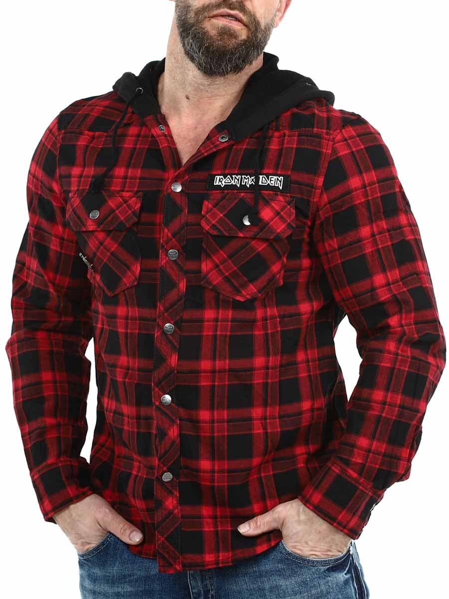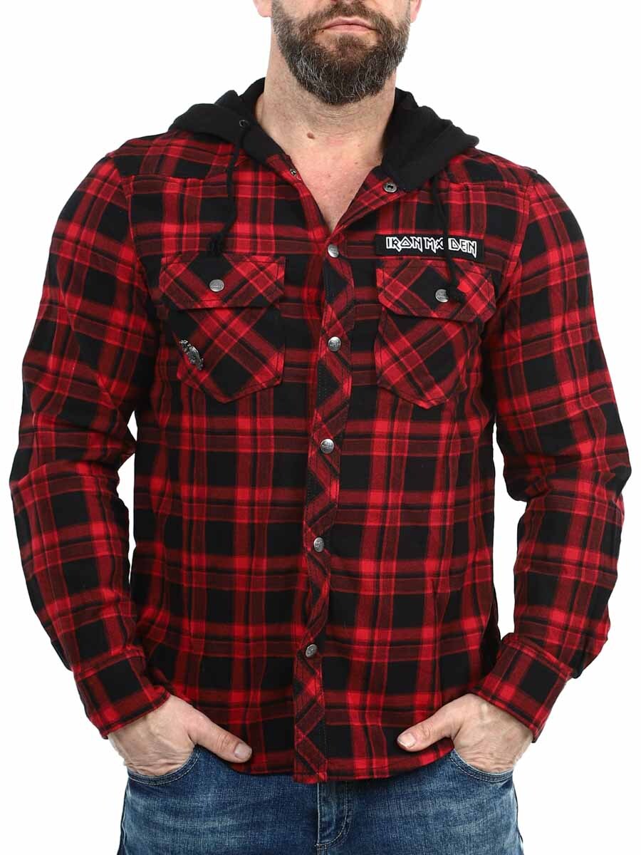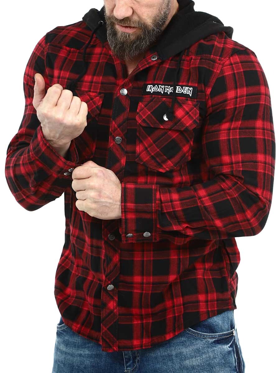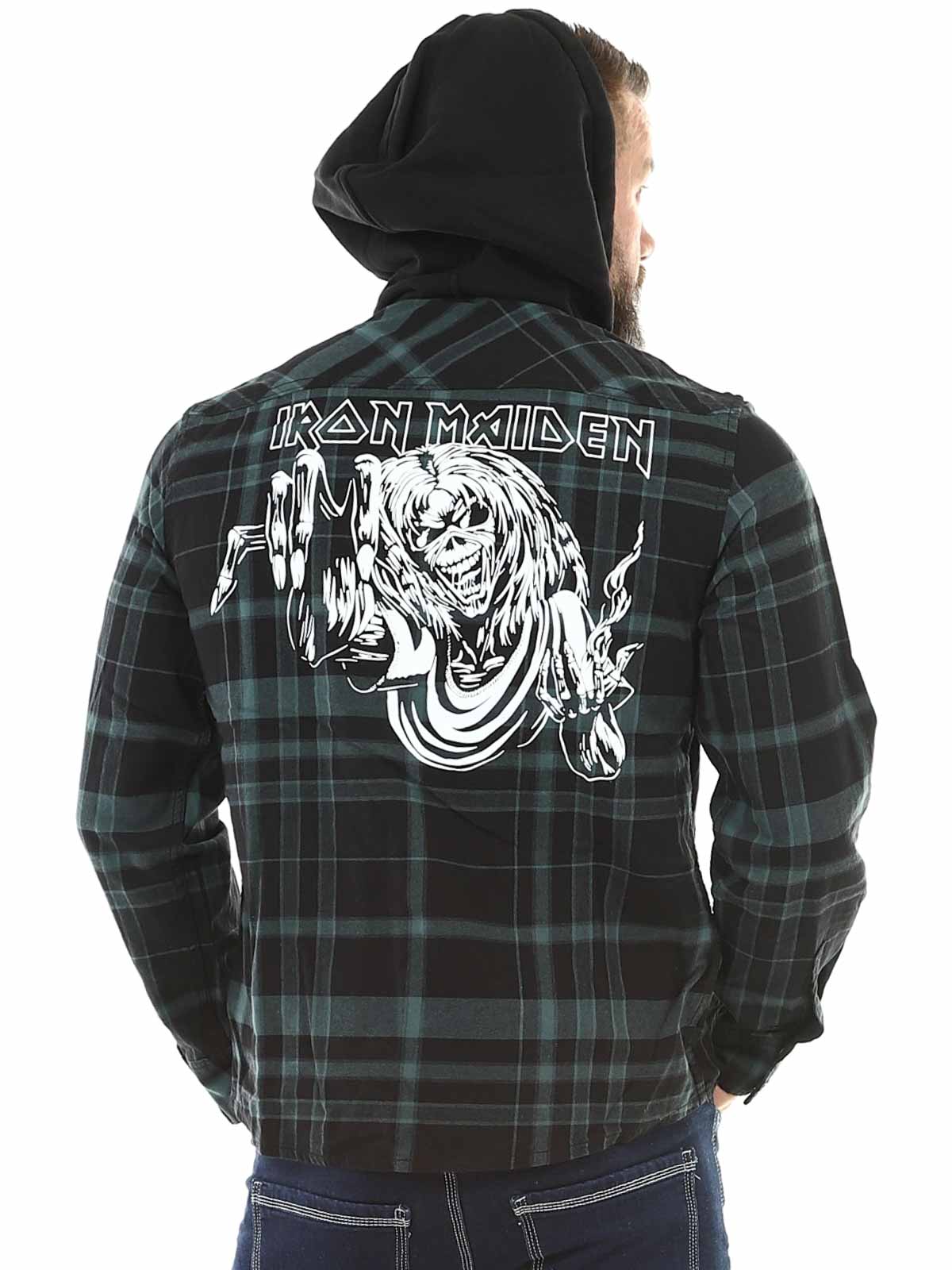 Yhdistelmä klassista overshirt-paitaa ja hupparia antaa ainutlaatuisen ja rockhenkisen ilmeen. Varustettu logonapeilla, Iron Maiden -patchilla edessä, suurella Iron Maiden -printillä selässä ja irrotettavalla metallipinillä. Hupussa on reilusti tilaa, hihansuut säädettävissä ja napitus edessä.