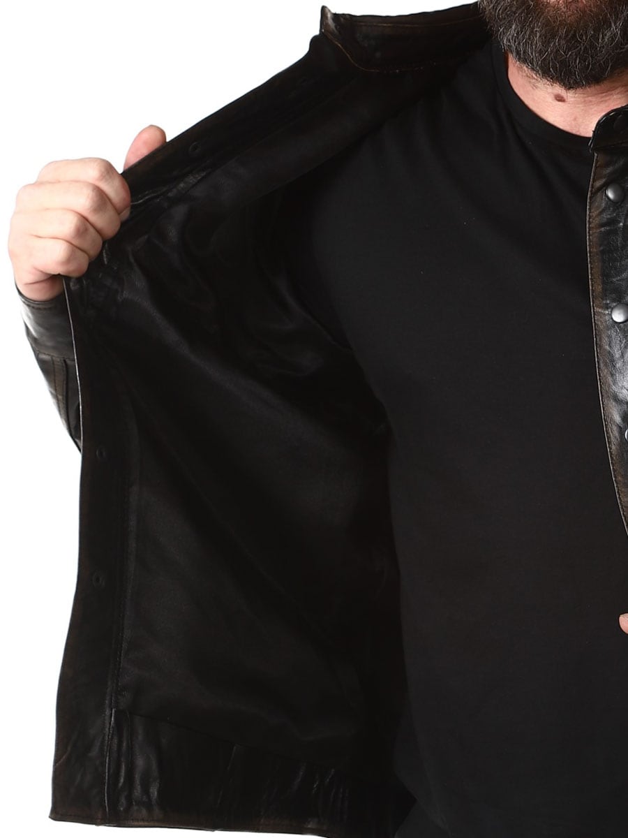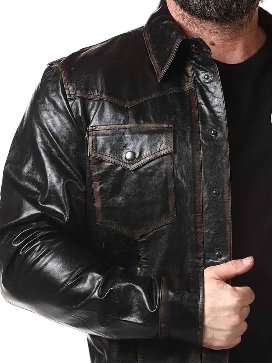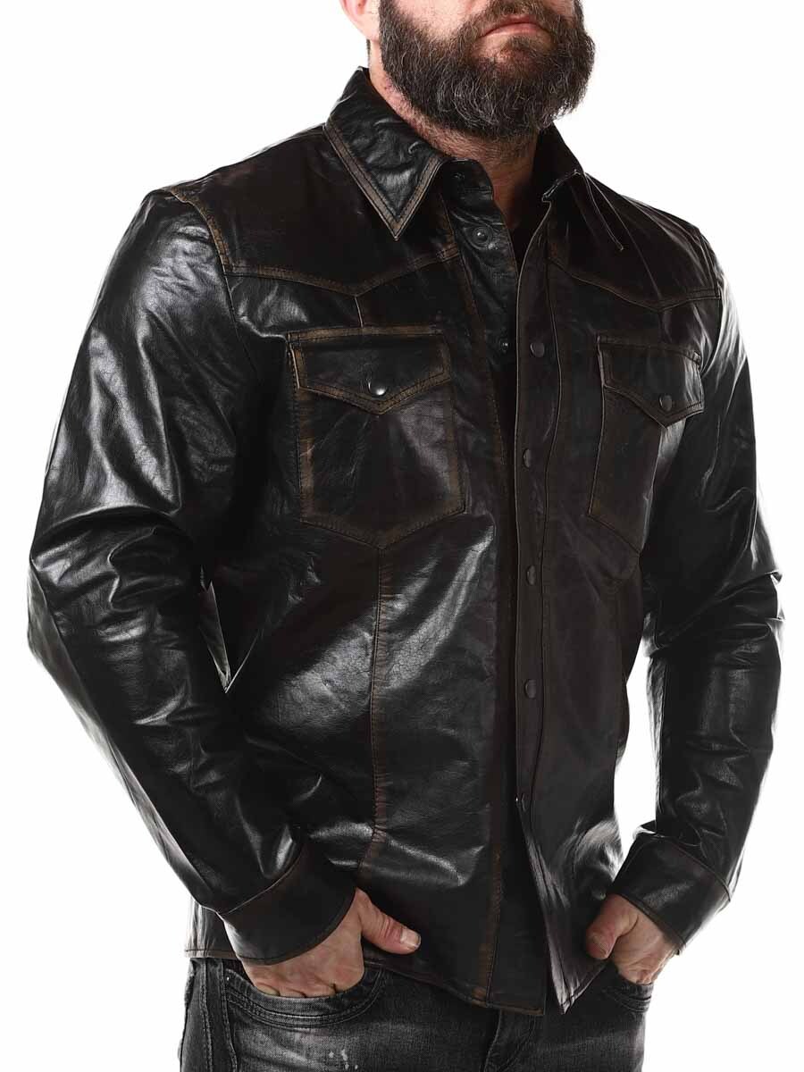 100 % puhvelinnahkainen paita, joka on suunniteltu vintage-tyyliin antamaan autenttista ilmettä. Varustettu neppareilla, kahdella rintataskulla ja kahdella sisätaskulla. Tätä tyylikästä yläosaa voi käyttää sekä paitana että takkina!