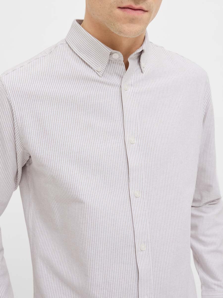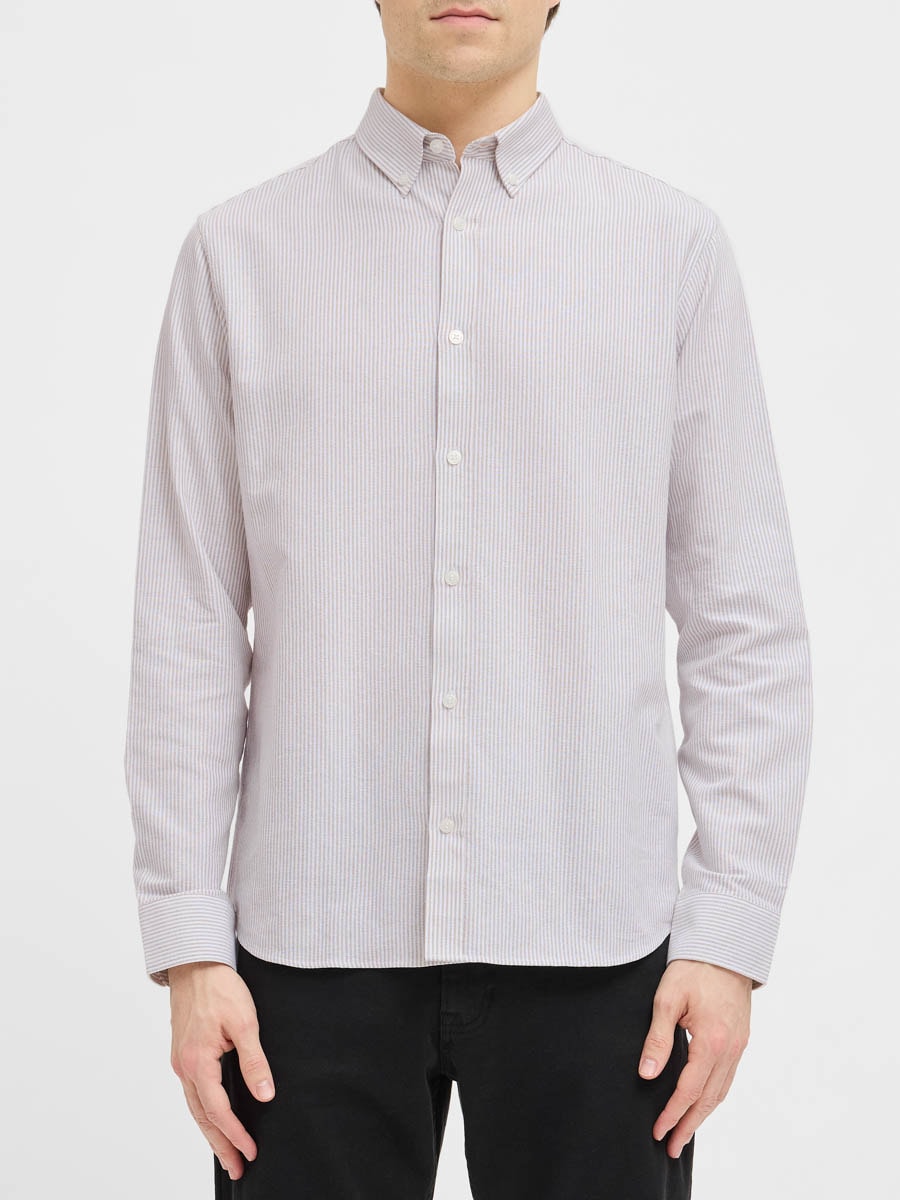 Tämä pitkähihainen regular fit -paita on monipuolinen vaatekappale, joka sopii sekä toimistoon että vapaa-aikaan. Paidan suora malli luo rennon mutta huolitellun siluetin, ja ajaton väri tekee siitä helpon yhdistää niin farkkuihin kuin pukuhousuihin.