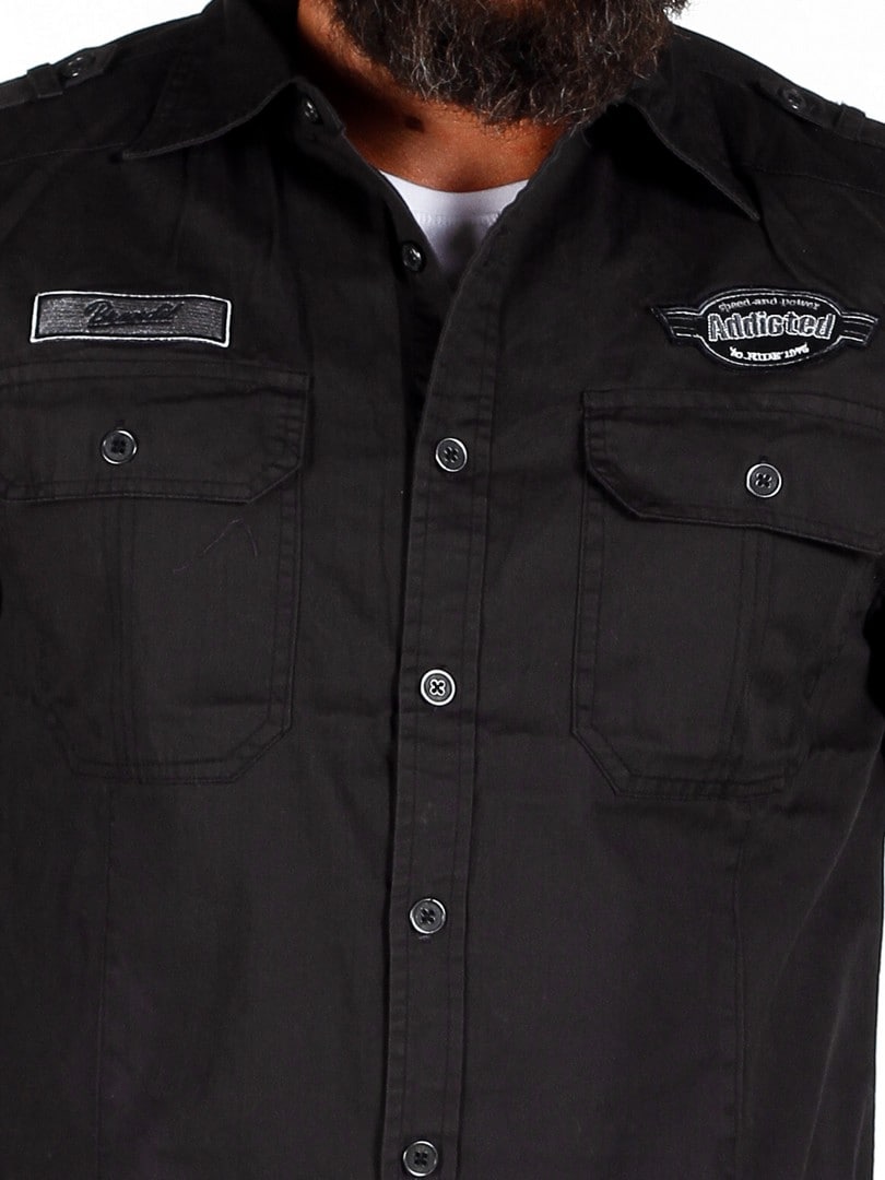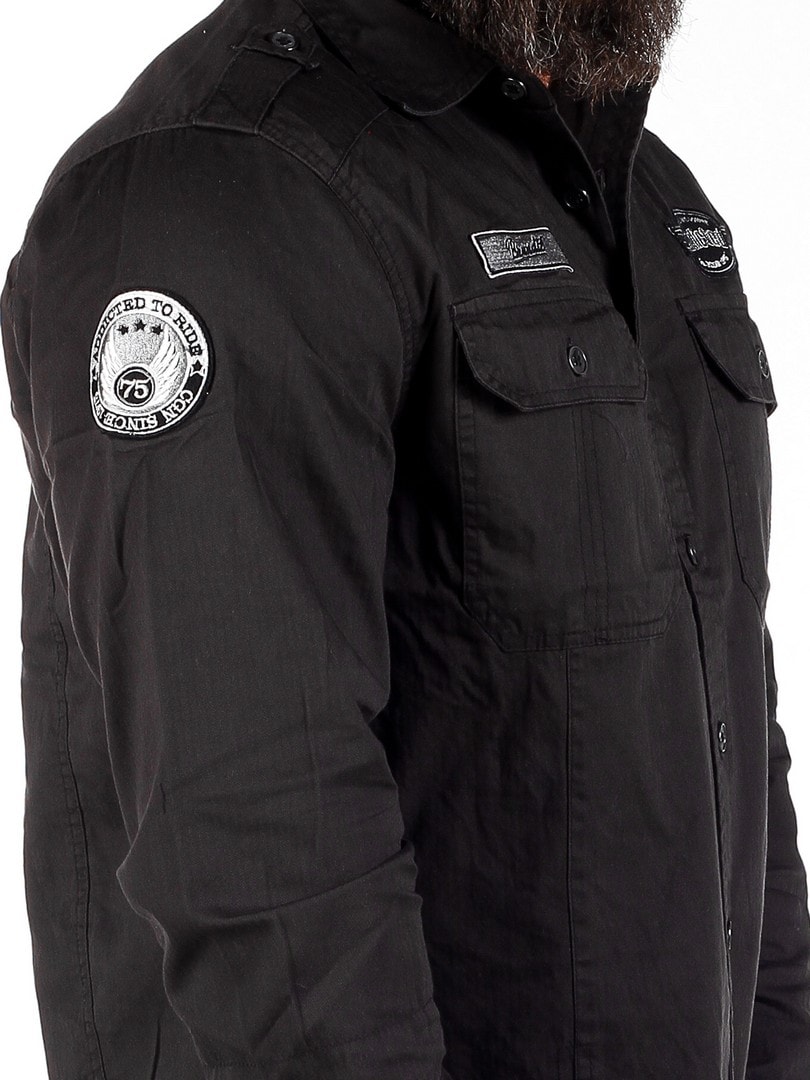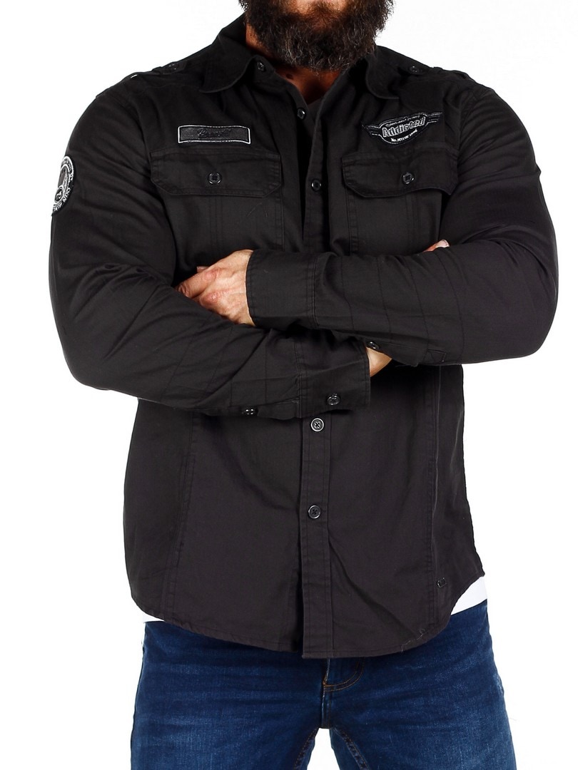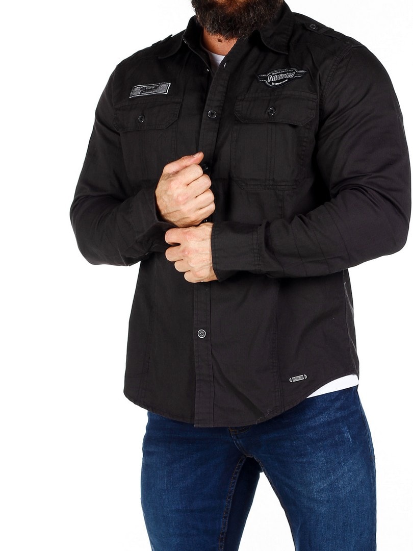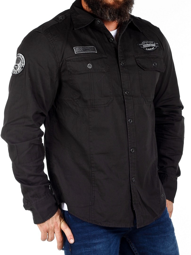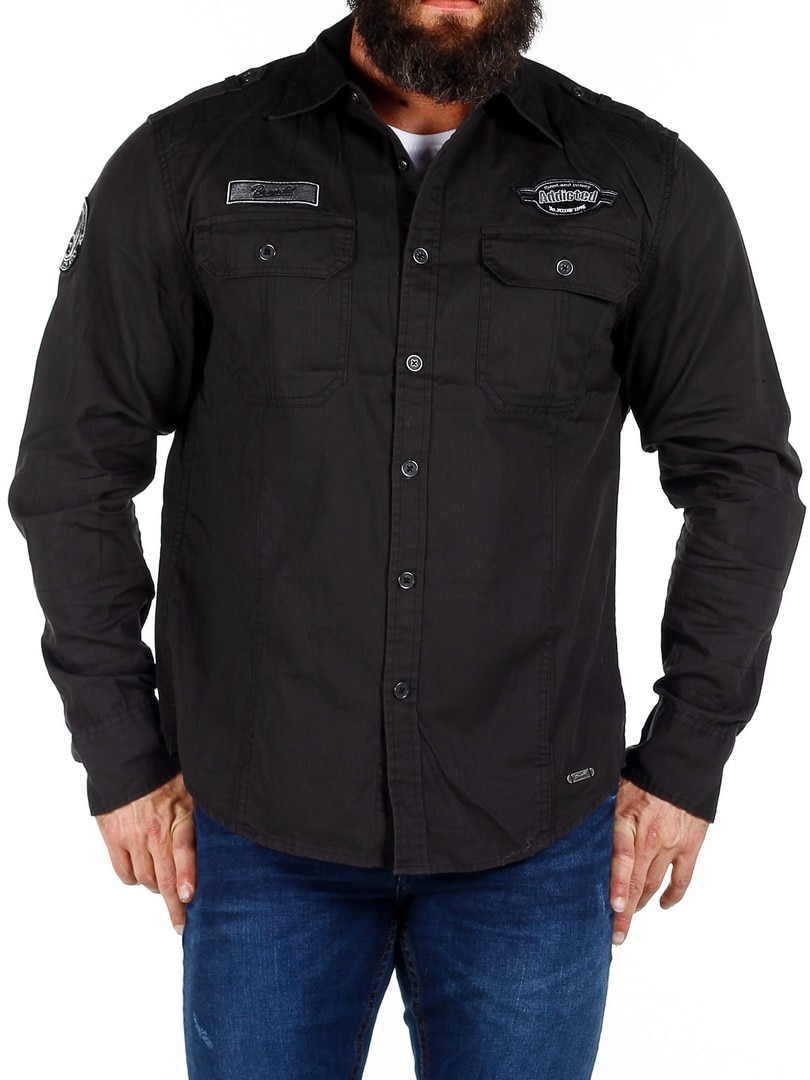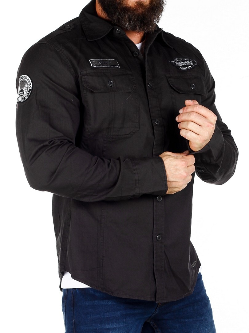 Retrohenkinen, malliltaan suora paita, jossa on kaksi napeilla suljettavaa rintataskua. Yksityiskohtana kangasmerkit hihassa ja rinnuksessa. Paidassa on pyöristetty helma.