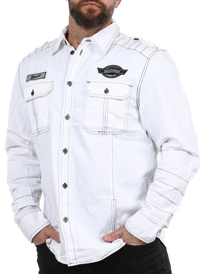 Retrohenkinen, malliltaan suora paita, jossa on kaksi napeilla suljettavaa rintataskua. Yksityiskohtana kangasmerkit hihassa ja rinnuksessa. Paidassa on pyöristetty helma.