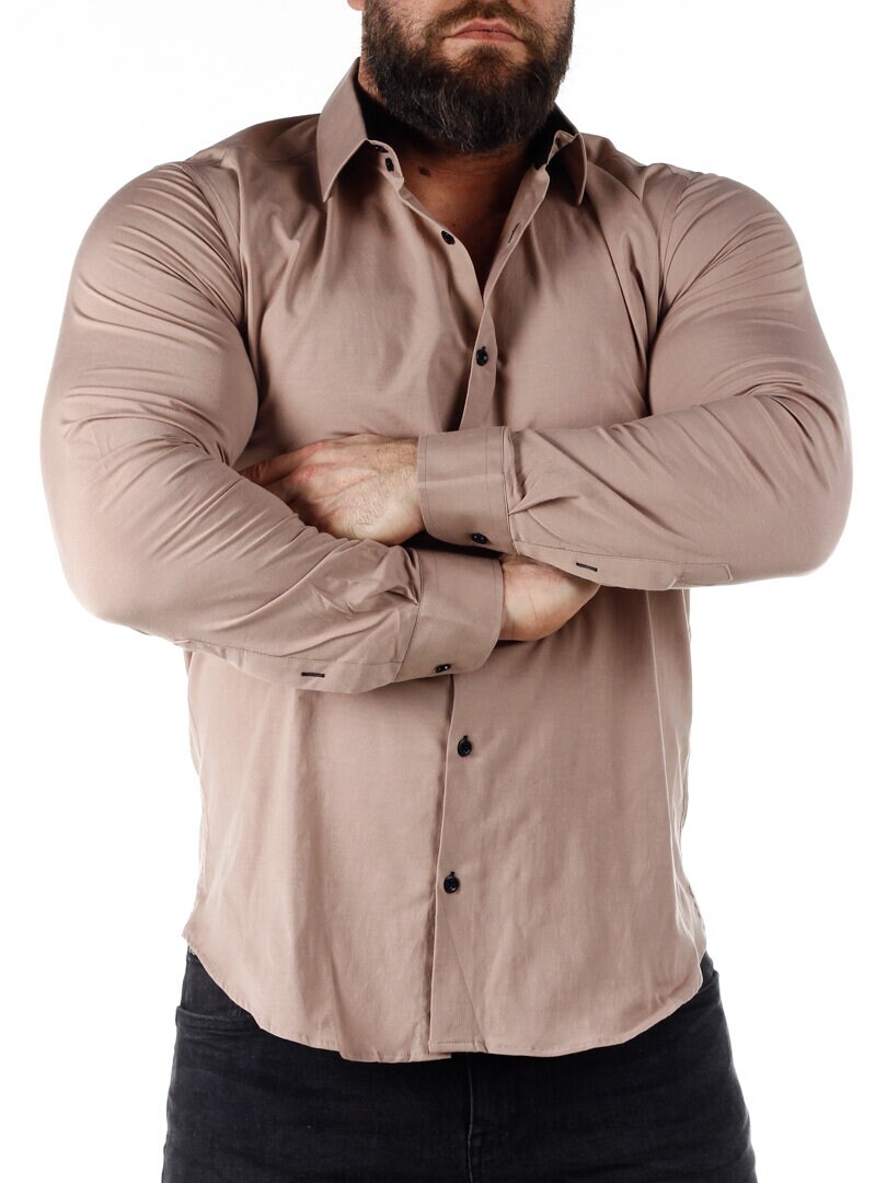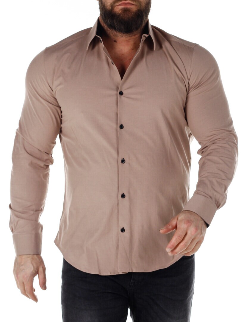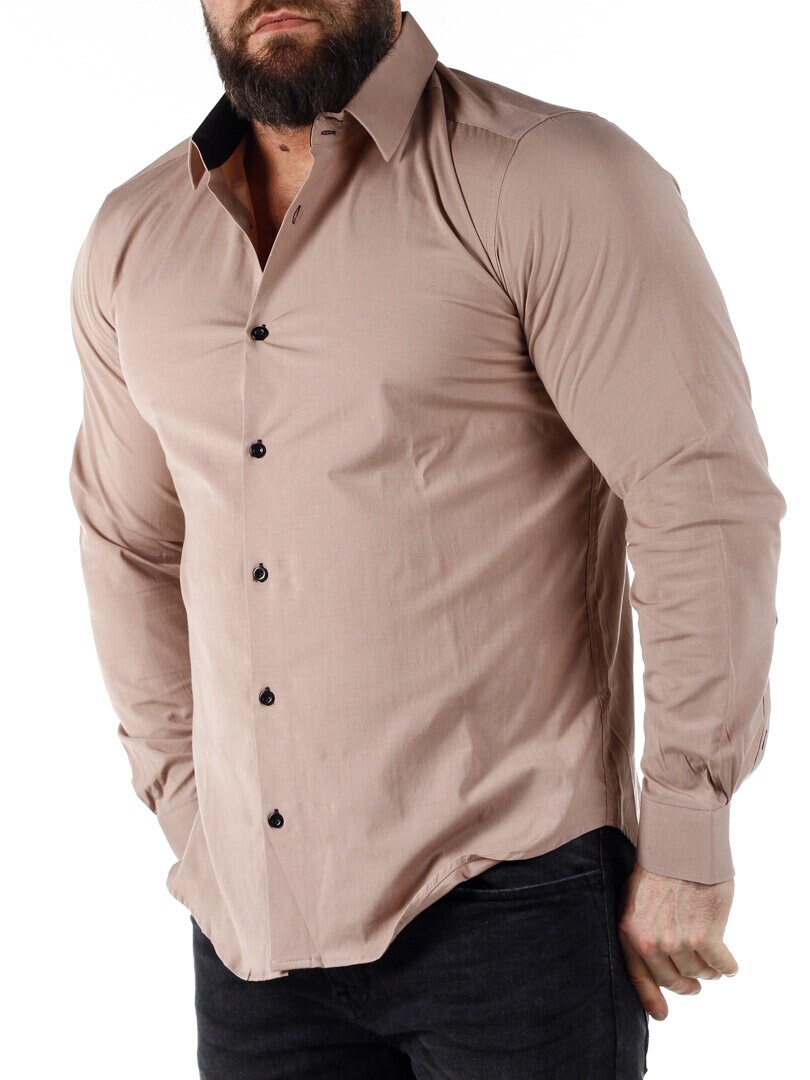 Puuvillapaita on malliltaan mukava ja siinä on hiukan joustavuutta. Beige pohjaväri, mutta napit, kauluksen sisäpuoli ja hihansuut kontrastivärissä. Kapeampi malli, jossa on pyöristetty helman alareuna ja vahvistettu kaulus, joka pitää muotonsa. Saatavilla useissa eri väreissä!