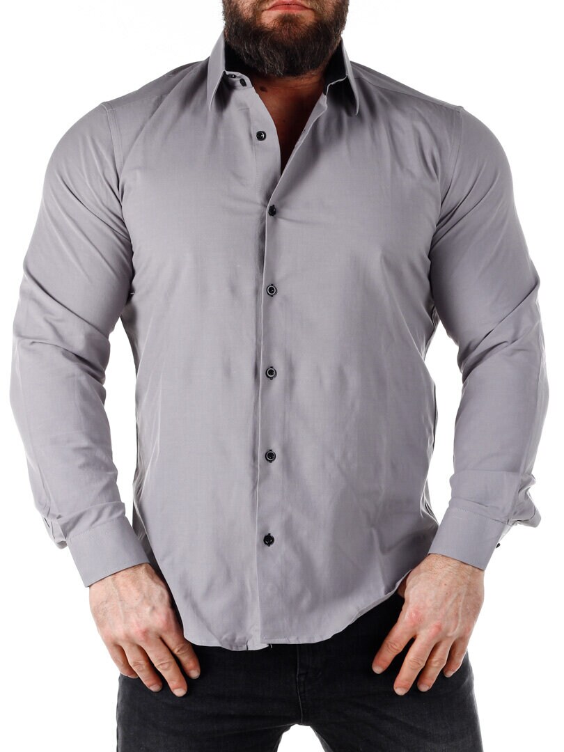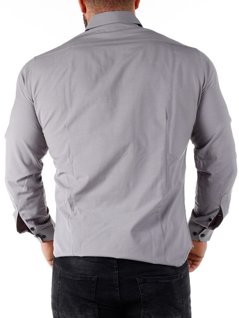 Puuvillapaita on malliltaan mukava ja siinä on hiukan joustavuutta. Harmaa pohjaväri, mutta napit, kauluksen sisäpuoli ja hihansuut kontrastivärissä. Kapeampi malli, jossa on pyöristetty helman alareuna ja vahvistettu kaulus, joka pitää muotonsa. Saatavilla useissa eri väreissä!