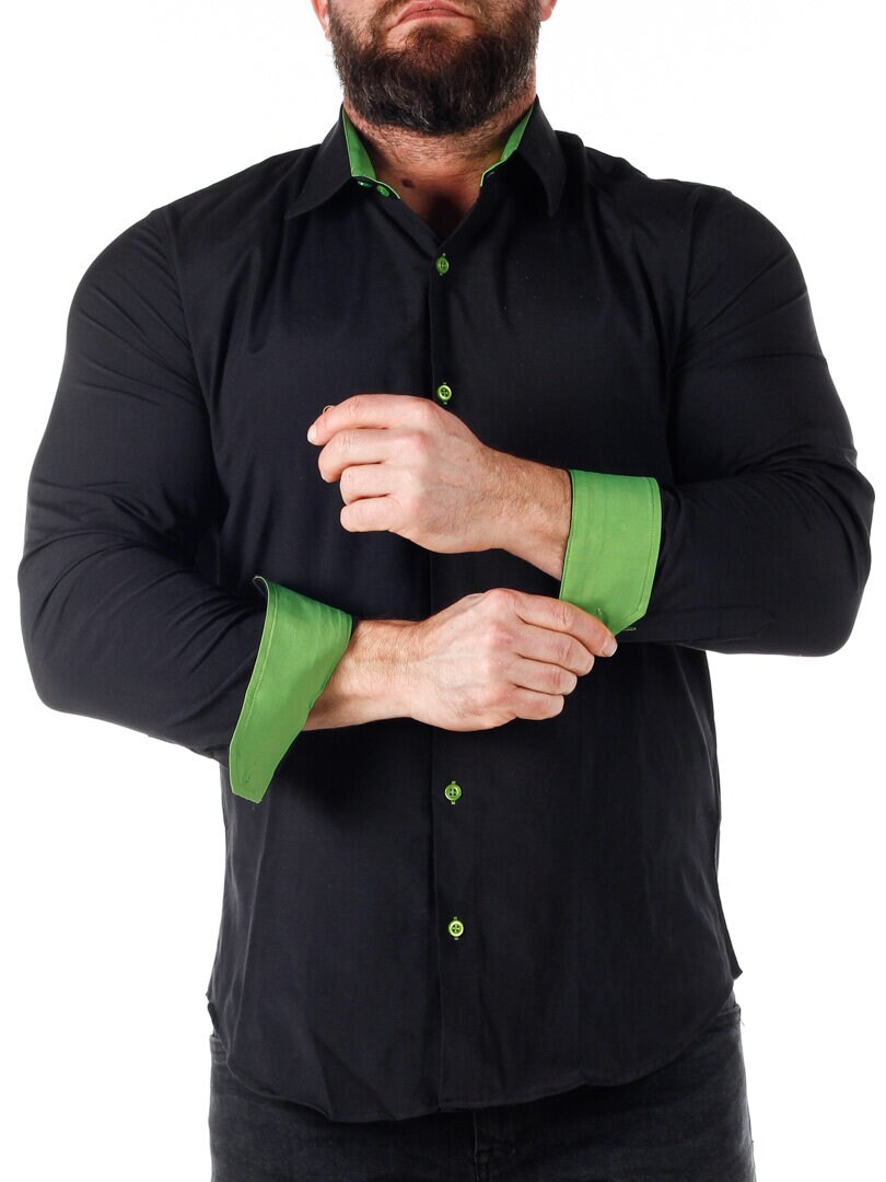 Puuvillapaita on malliltaan mukava ja siinä on hiukan joustavuutta. Musta pohjaväri, mutta napit, kauluksen sisäpuoli ja hihansuut kontrastivärissä. Kapeampi malli, jossa on pyöristetty helman alareuna ja vahvistettu kaulus, joka pitää muotonsa. Saatavilla useissa eri väreissä!