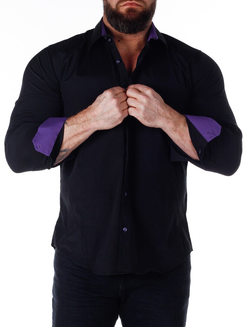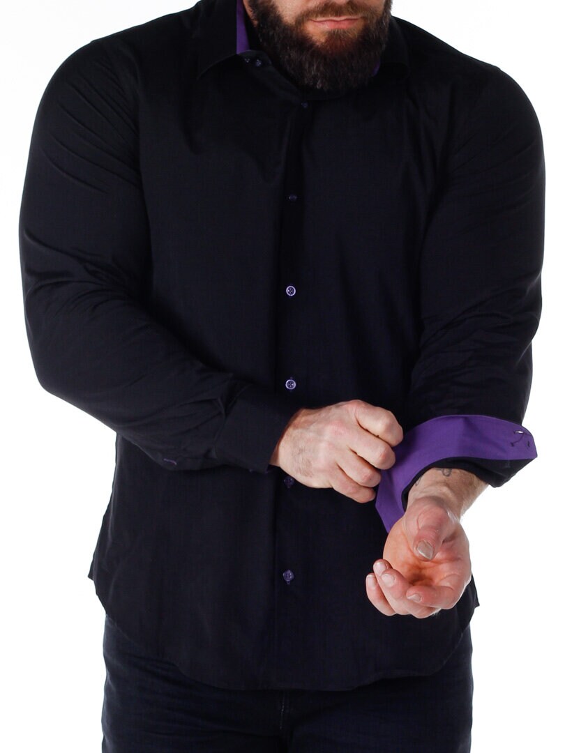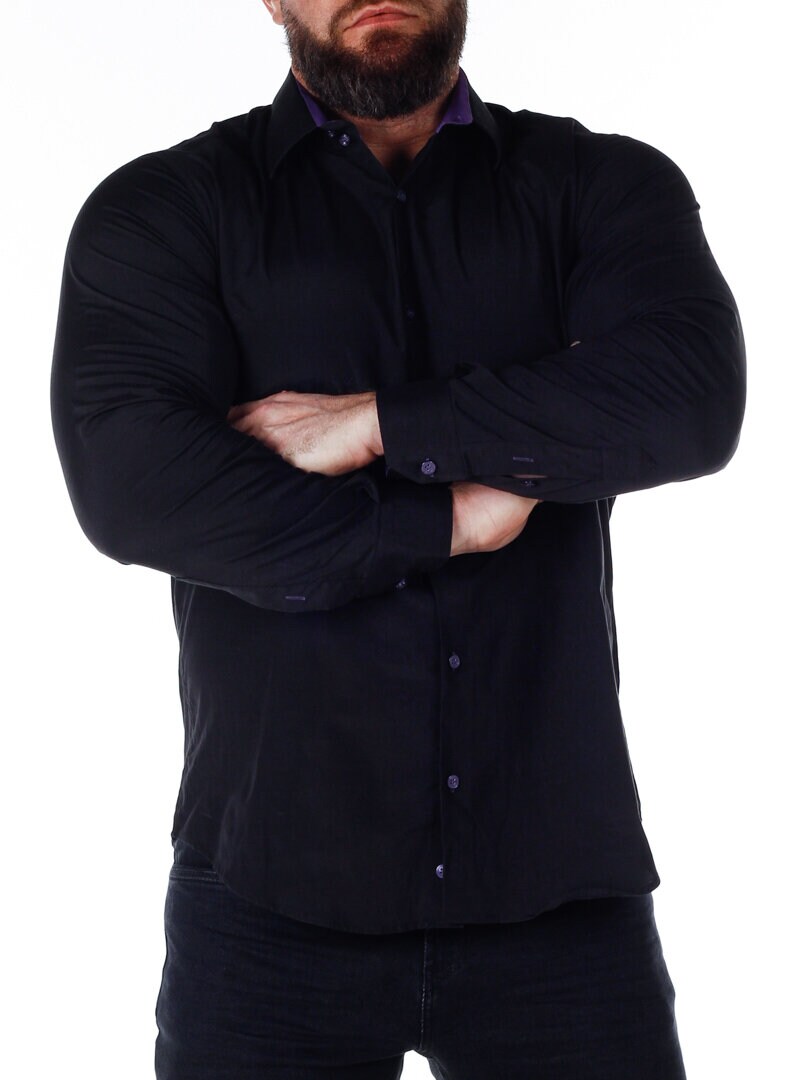Puuvillapaita on malliltaan mukava ja siinä on hiukan joustavuutta. Musta pohjaväri, mutta napit, kauluksen sisäpuoli ja hihansuut kontrastivärissä. Kapeampi malli, jossa on pyöristetty helman alareuna ja vahvistettu kaulus, joka pitää muotonsa. Saatavilla useissa eri väreissä!