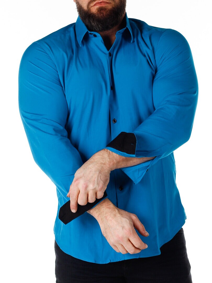 Puuvillapaita on malliltaan mukava ja siinä on hiukan joustavuutta. Petrol pohjaväri, mutta napit, kauluksen sisäpuoli ja hihansuut kontrastivärissä. Kapeampi malli, jossa on pyöristetty helman alareuna ja vahvistettu kaulus, joka pitää muotonsa. Saatavilla useissa eri väreissä!