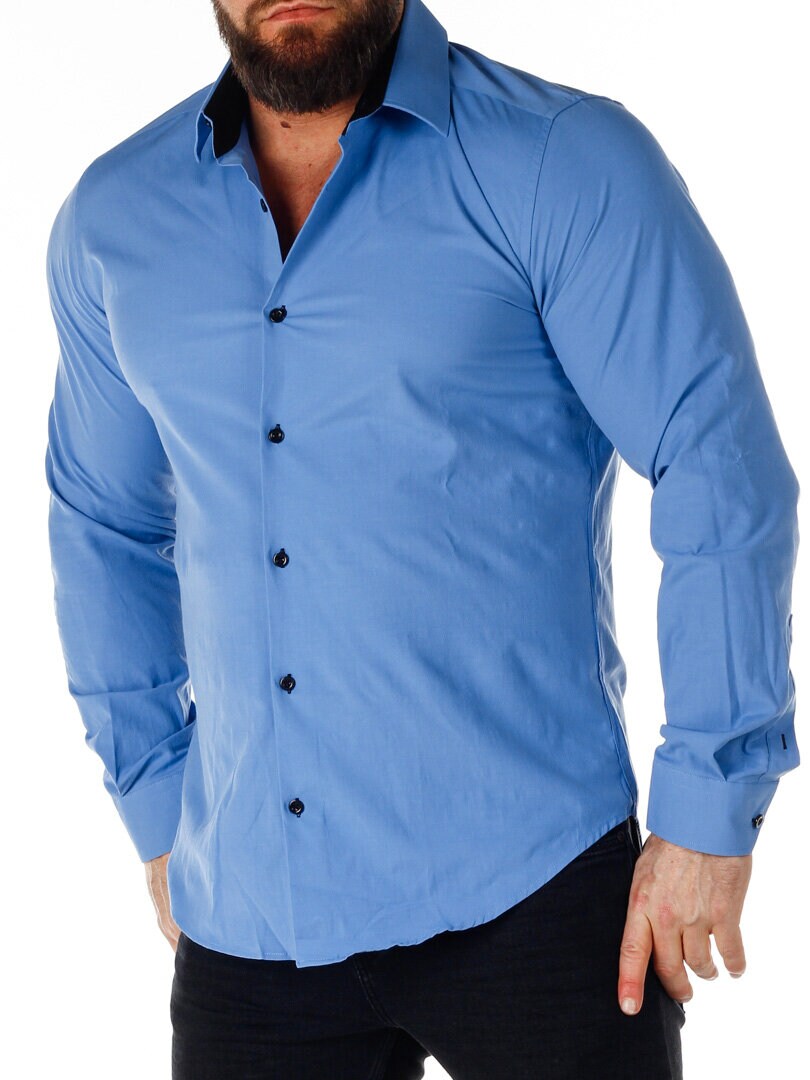 Puuvillapaita on malliltaan mukava ja siinä on hiukan joustavuutta. Sininen pohjaväri, mutta napit, kauluksen sisäpuoli ja hihansuut kontrastivärissä. Kapeampi malli, jossa on pyöristetty helman alareuna ja vahvistettu kaulus, joka pitää muotonsa. Saatavilla useissa eri väreissä!