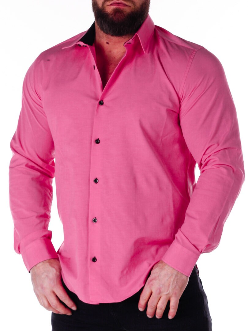 Puuvillapaita on malliltaan mukava ja siinä on hiukan joustavuutta. Vaaleanpunainen pohjaväri, mutta napit, kauluksen sisäpuoli ja hihansuut kontrastivärissä. Kapeampi malli, jossa on pyöristetty helman alareuna ja vahvistettu kaulus, joka pitää muotonsa. Saatavilla useissa eri väreissä!