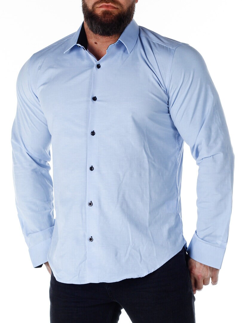 Puuvillapaita on malliltaan mukava ja siinä on hiukan joustavuutta. Tummansininen pohjaväri, mutta napit, kauluksen sisäpuoli ja hihansuut kontrastivärissä. Kapeampi malli, jossa on pyöristetty helman alareuna ja vahvistettu kaulus, joka pitää muotonsa. Saatavilla useissa eri väreissä!